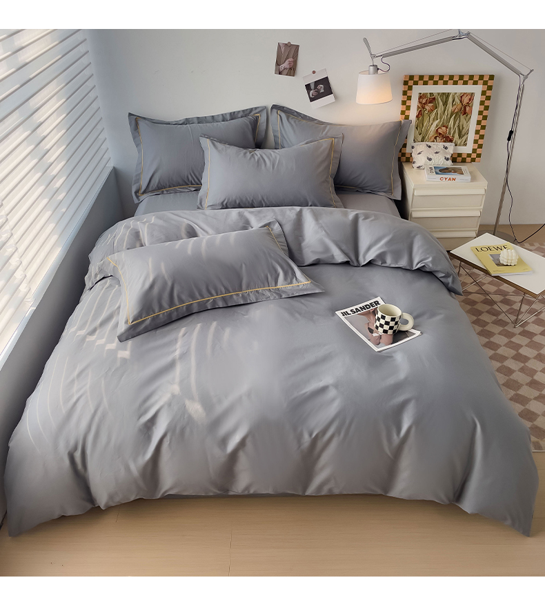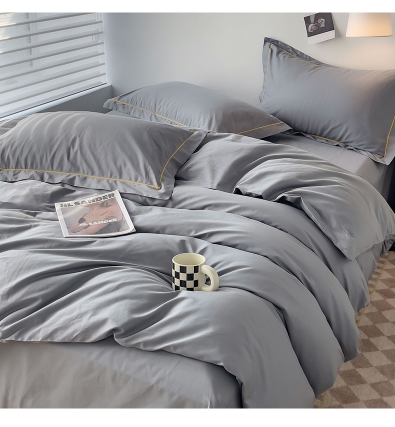 当前位置: 91家纺网 > 商品网购 > 床品套件 > 四件套 > 全棉普通四件套 > 锦彩家居 2026新款40支正宗13372双拼纯色全棉四件套酒店宾馆民宿学生三件套(可定制)标准号的床单是圆角吊边;小号和加大的床单都是直角 初黄-浅豆沙