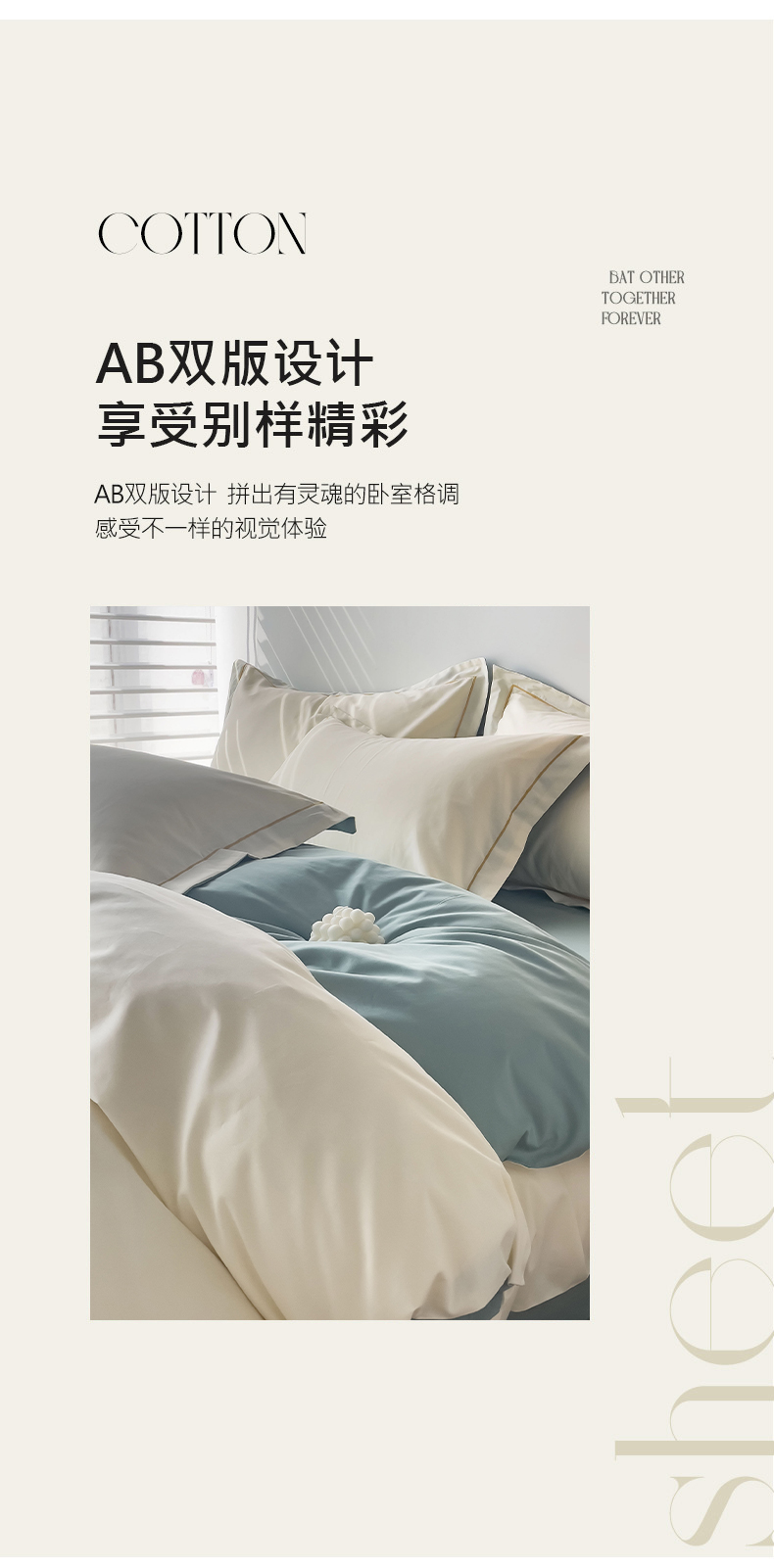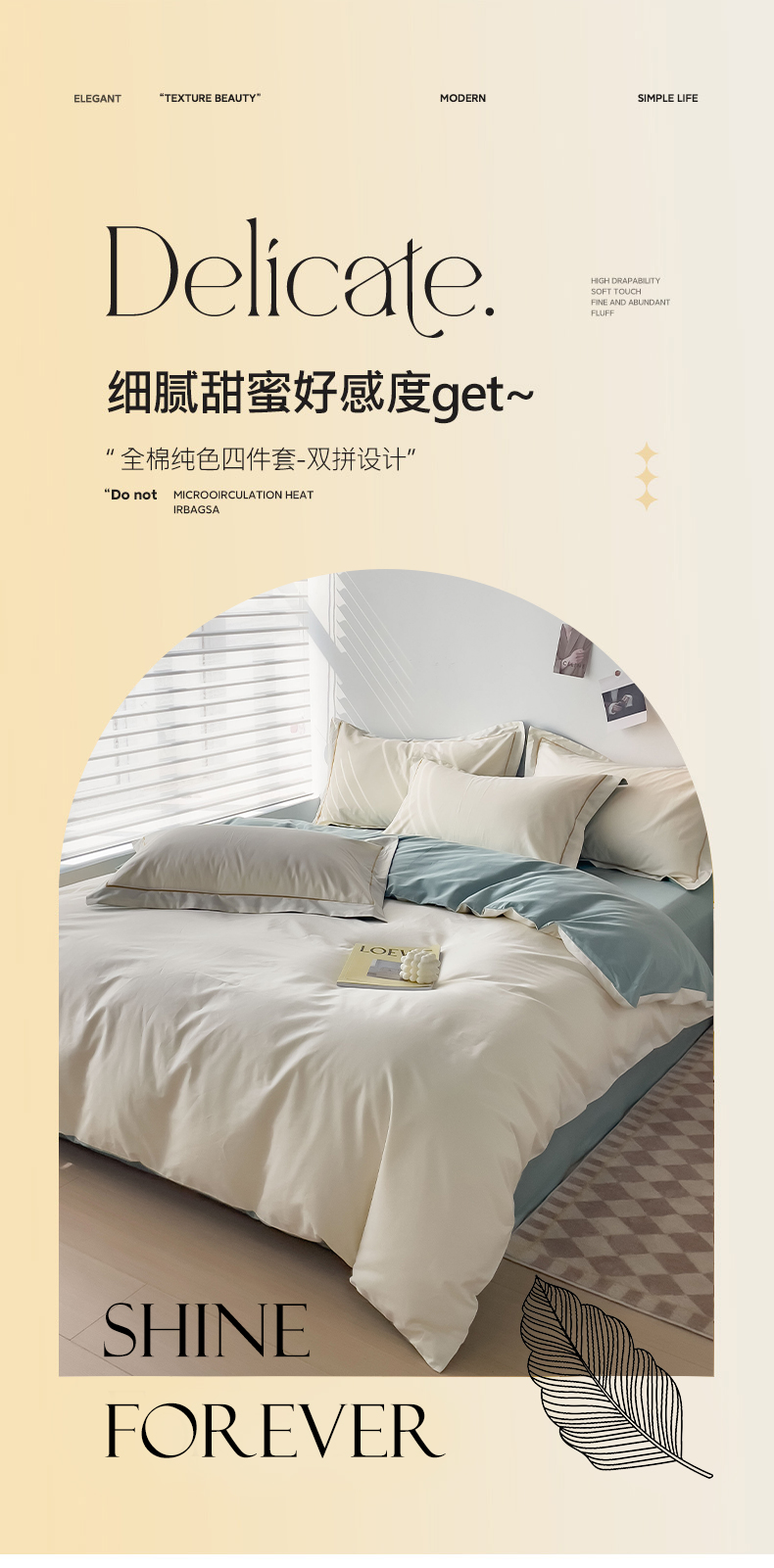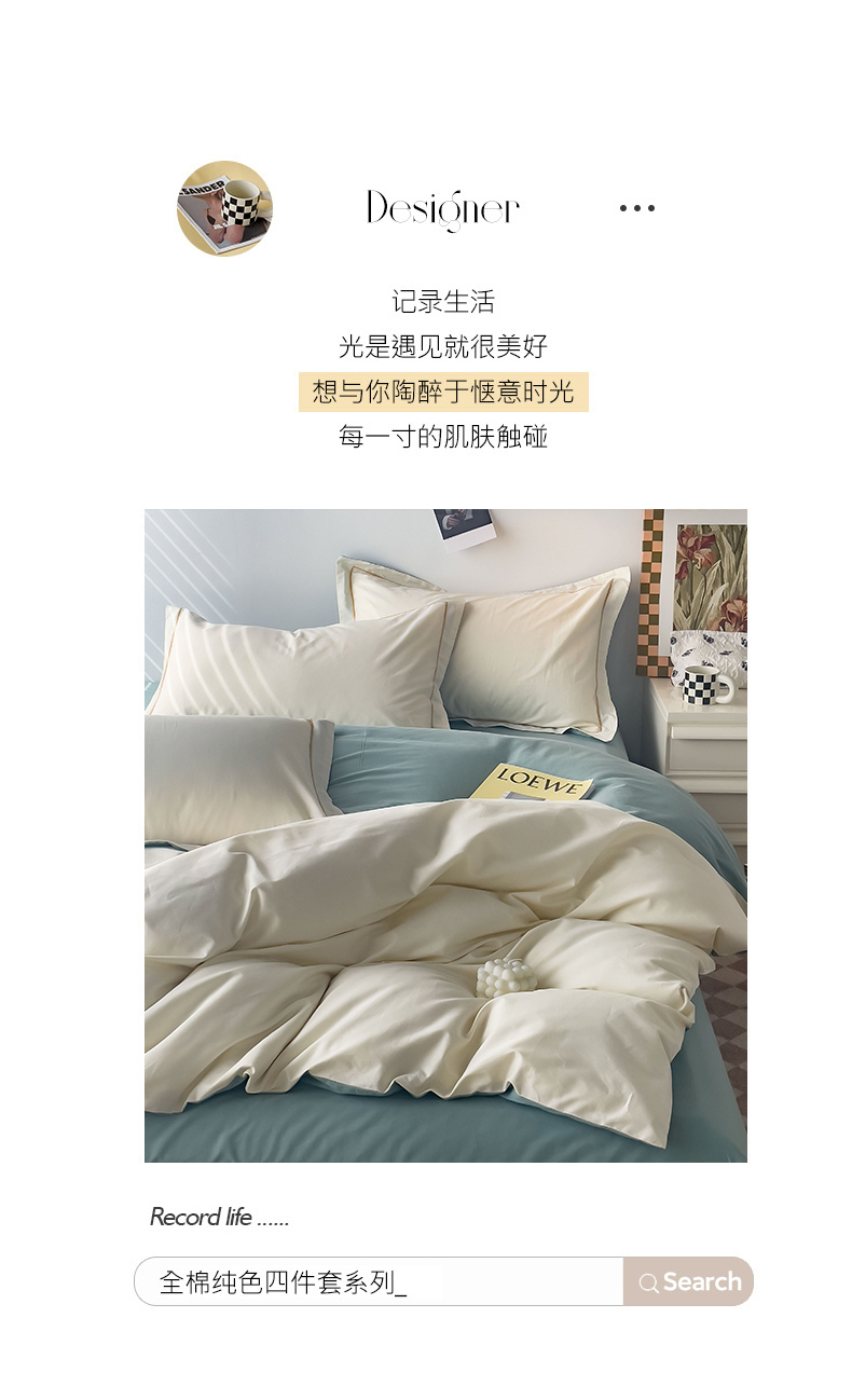 当前位置: 91家纺网 > 商品网购 > 床品套件 > 四件套 > 全棉普通四件套 > 锦彩家居 2026新款40支正宗13372双拼纯色全棉四件套酒店宾馆民宿学生三件套(可定制)标准号的床单是圆角吊边;小号和加大的床单都是直角 奶昔白-豆绿