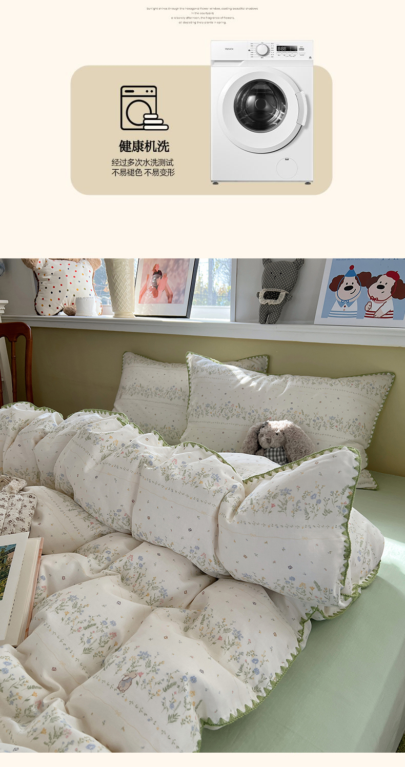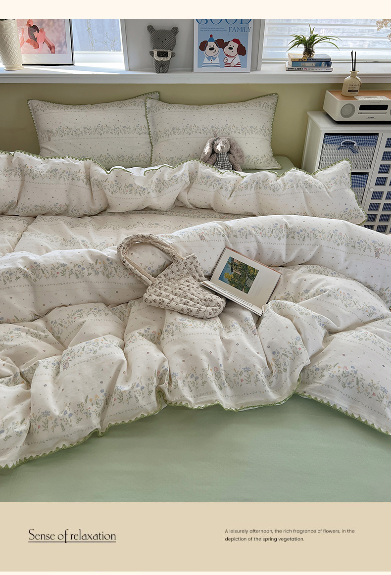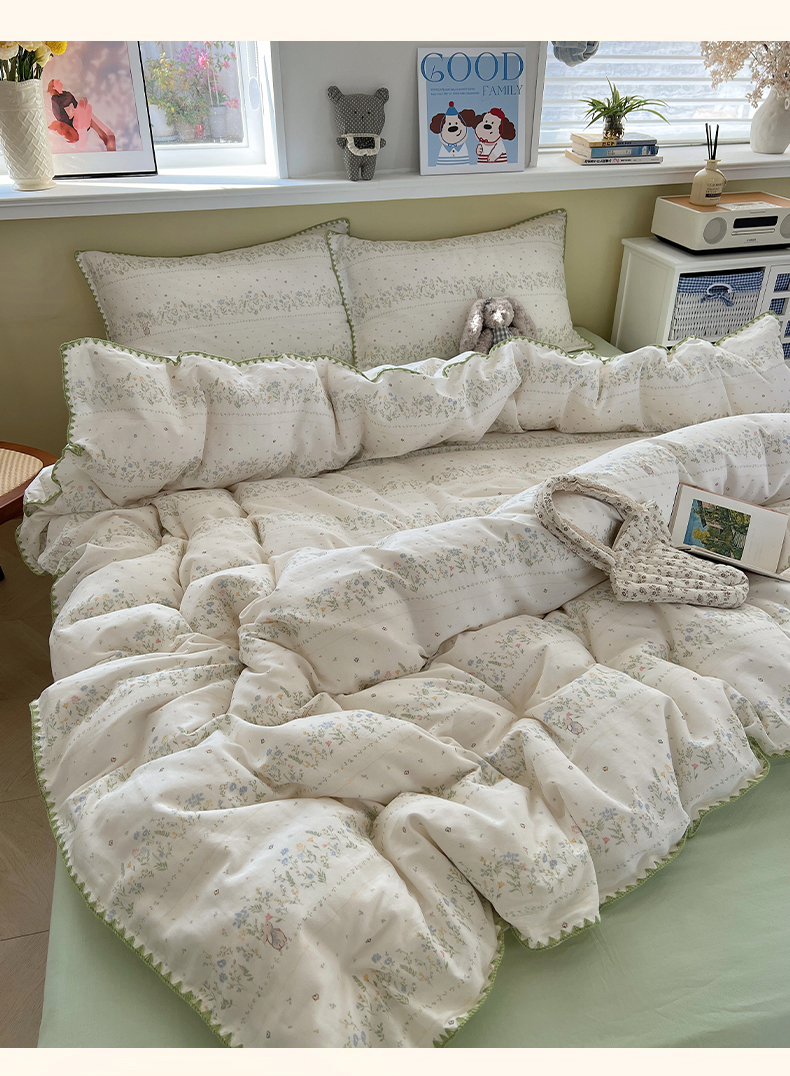 商品名称:典曼家纺 2026新款全棉纯棉有氧双层纱贝壳边四件套 贝壳边陌上花开