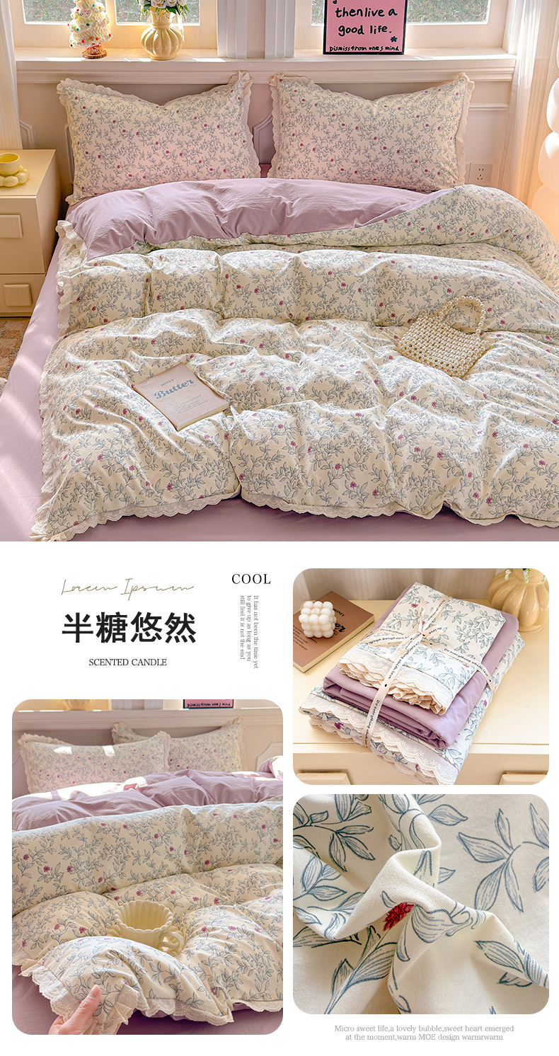 (总)芯贝儿 2026新款古法小清新全棉花边仿棉水洗棉法式四件套件被套床单,陌言,草莓熊,浪漫樱桃,卡吉米,班尼狗,花絮,花田故事,半糖悠然,漫步花从,午后花园,夏日初恋,小伙伴,小木马,星宝,郁金香,云瑶,KT猫