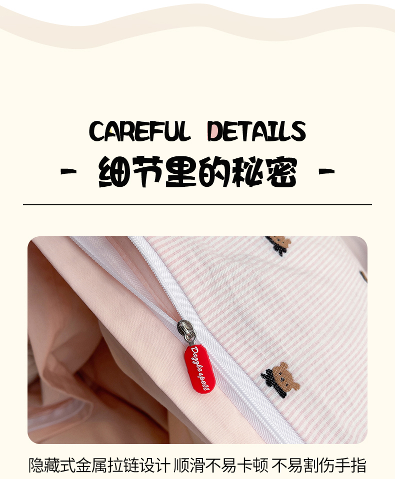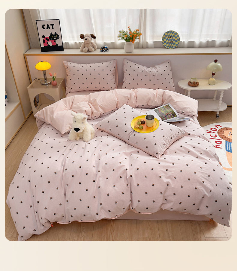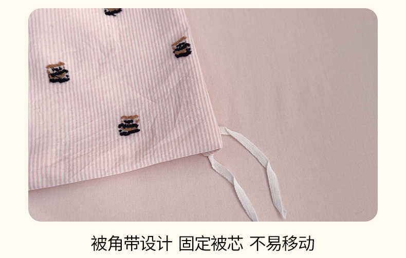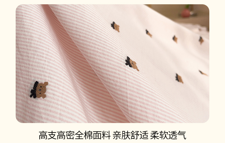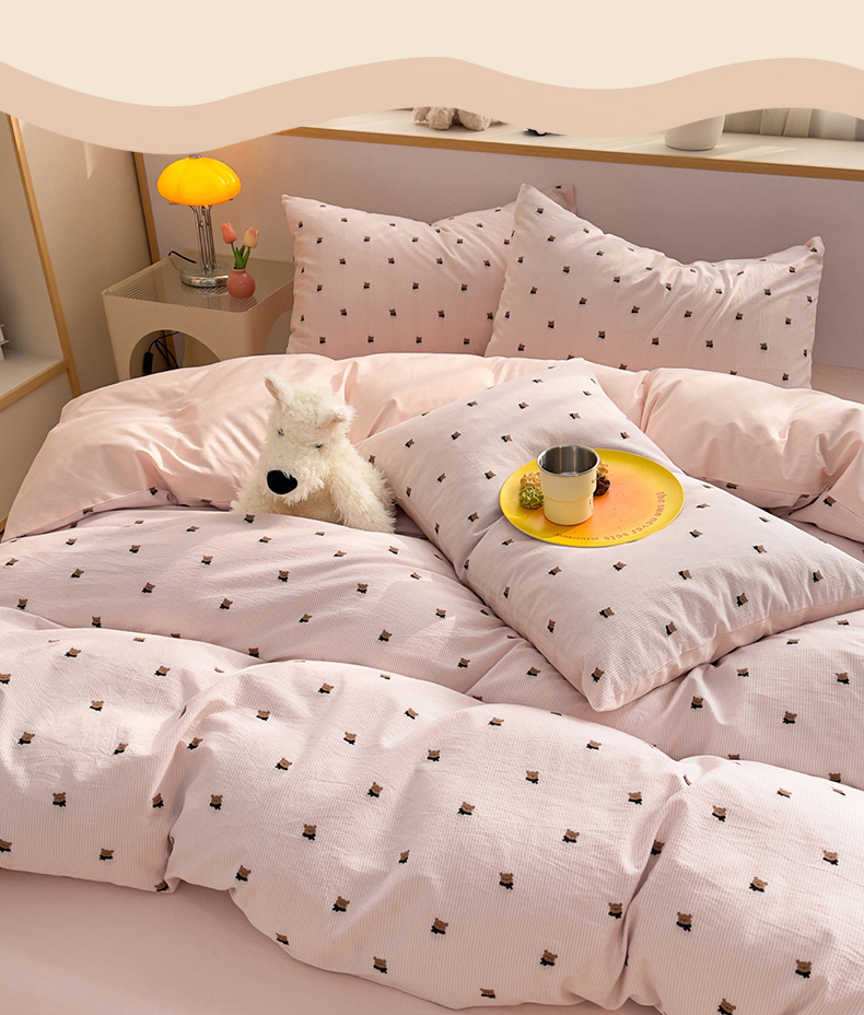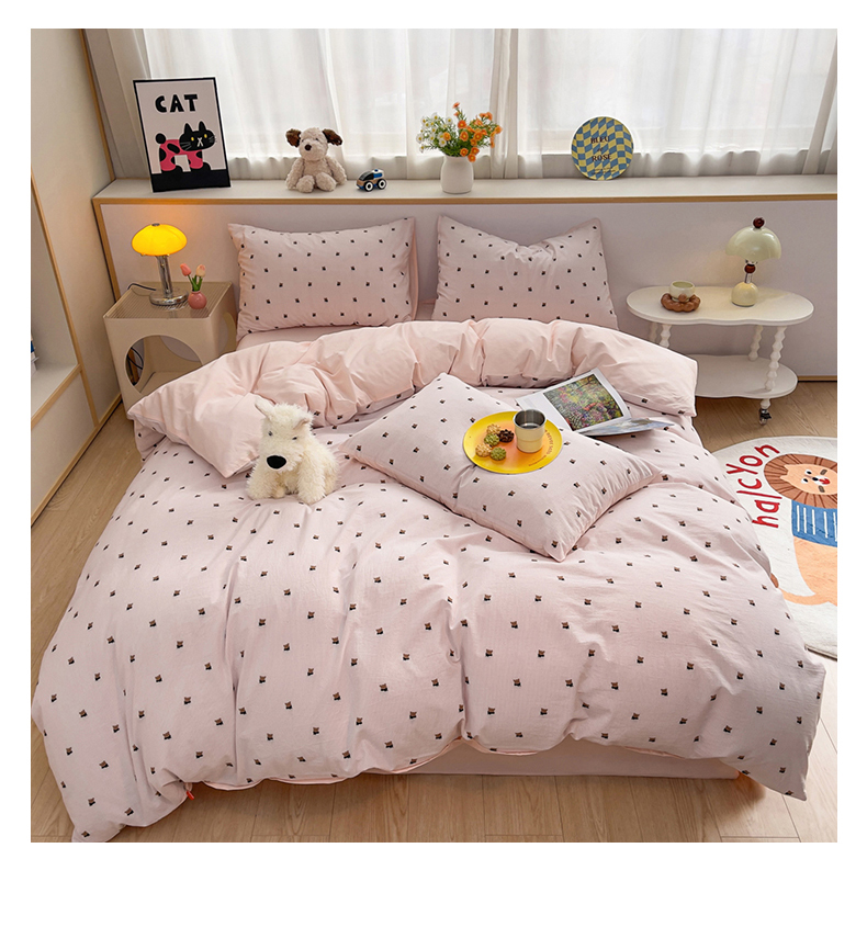 商品名称:炫拼家纺 2026新款A类全棉60支色织提花剪花B版40支水洗棉四件套-米熊系列 米熊-樱花粉