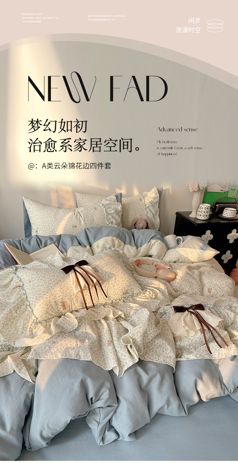(总)娜娜 2026新款A类云朵锦花边四件套