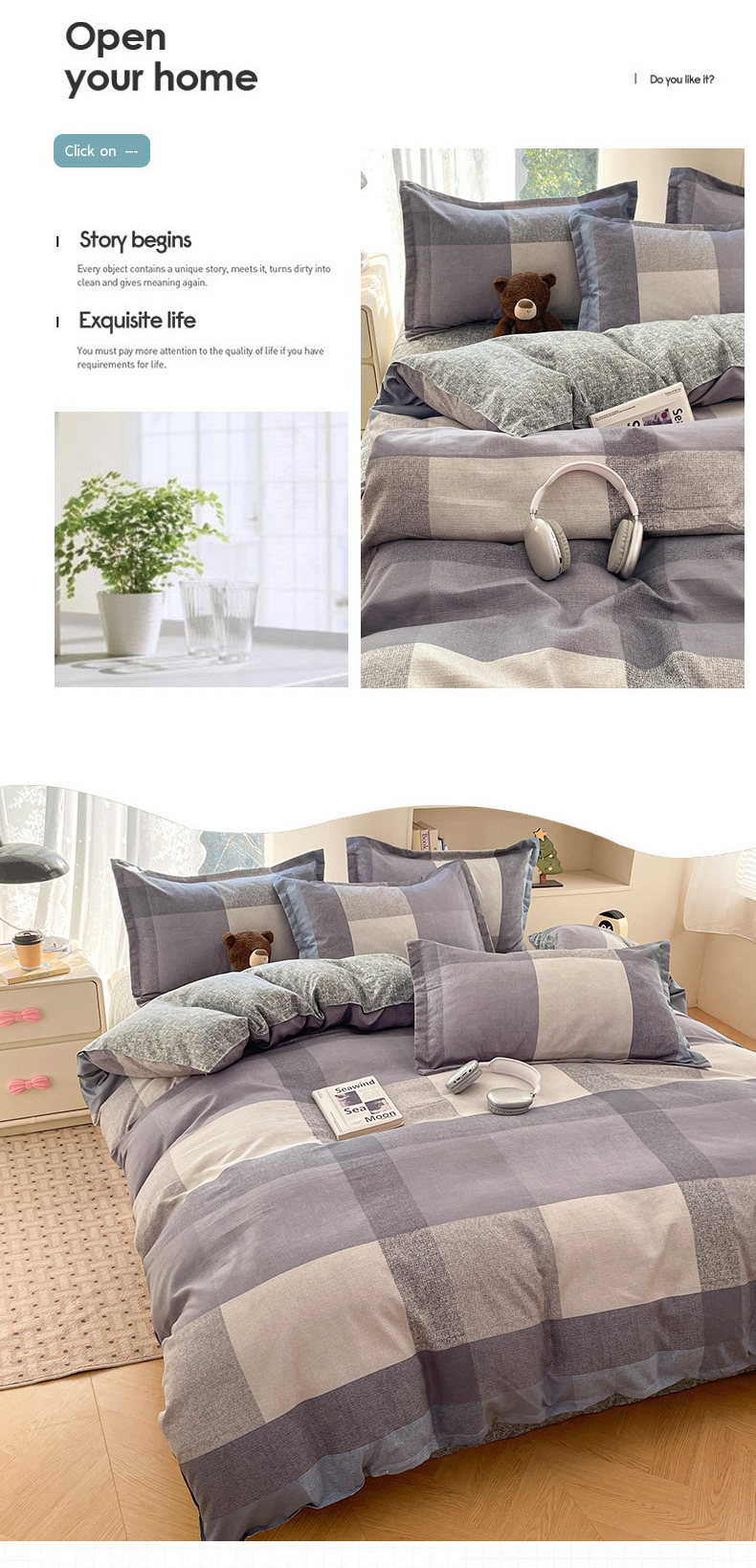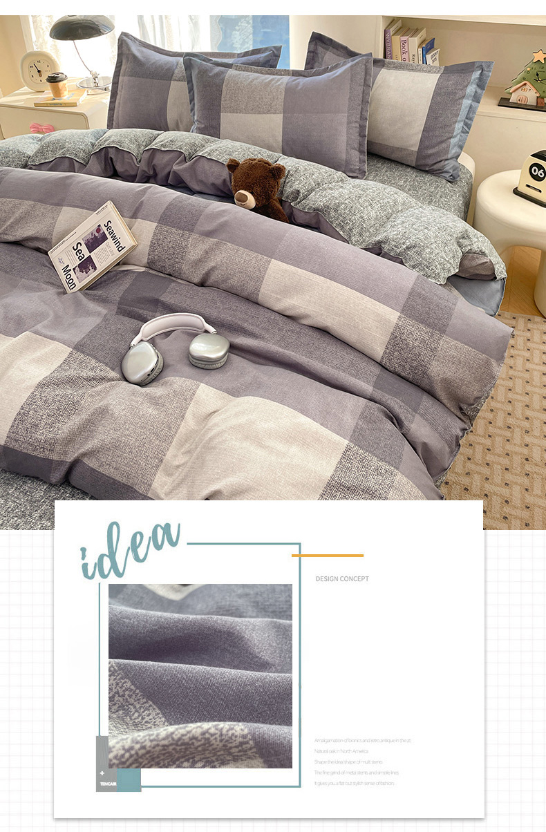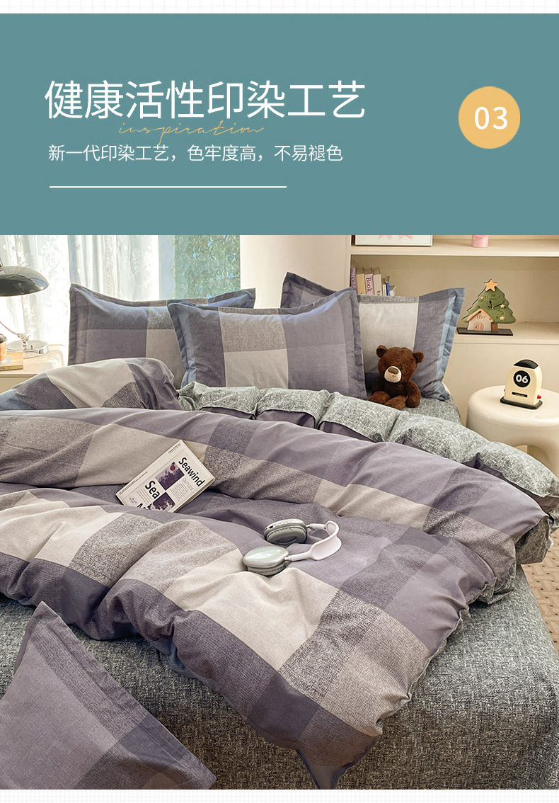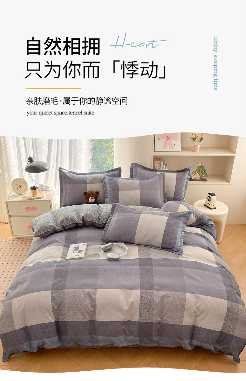 (总)世爵 2026新款10A抗菌亲肤水洗棉双拼四件套,卡其蓝,绿浅灰,墨松灰,暖驼,浅灰,深灰,深灰绿,深蓝灰,天空蓝浅灰,远山绿,远天蓝