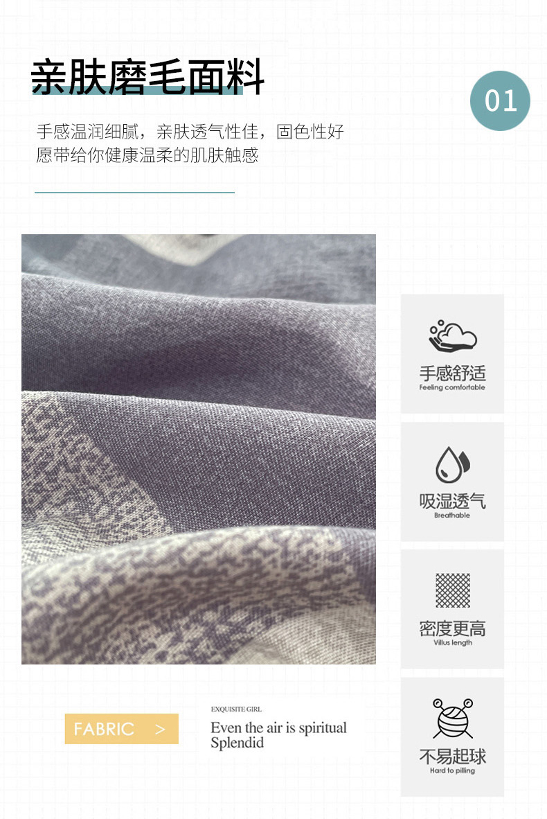 商品名称:世爵 2026新款亲肤磨毛印花四件套 文森格