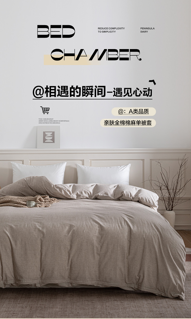 • 91家纺网 家纺一手货源 找家纺 锦罗绣 2026新款纯棉棉麻四件套-单被套 棉麻-浅咖