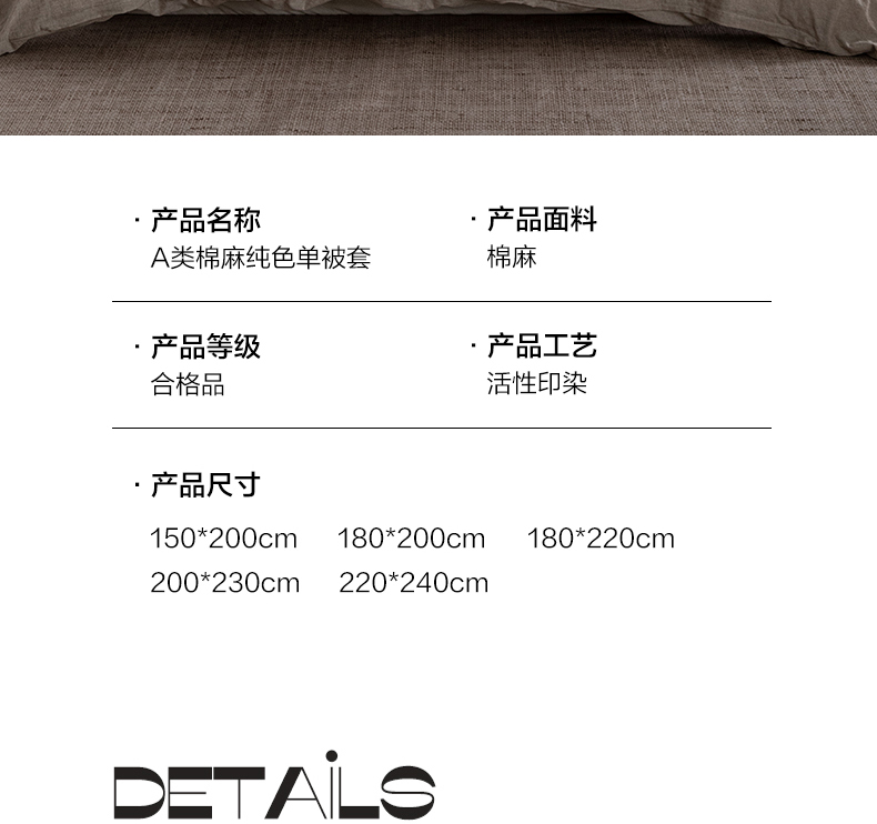 锦罗绣 2026新款纯棉棉麻四件套-单被套 棉麻-浅咖