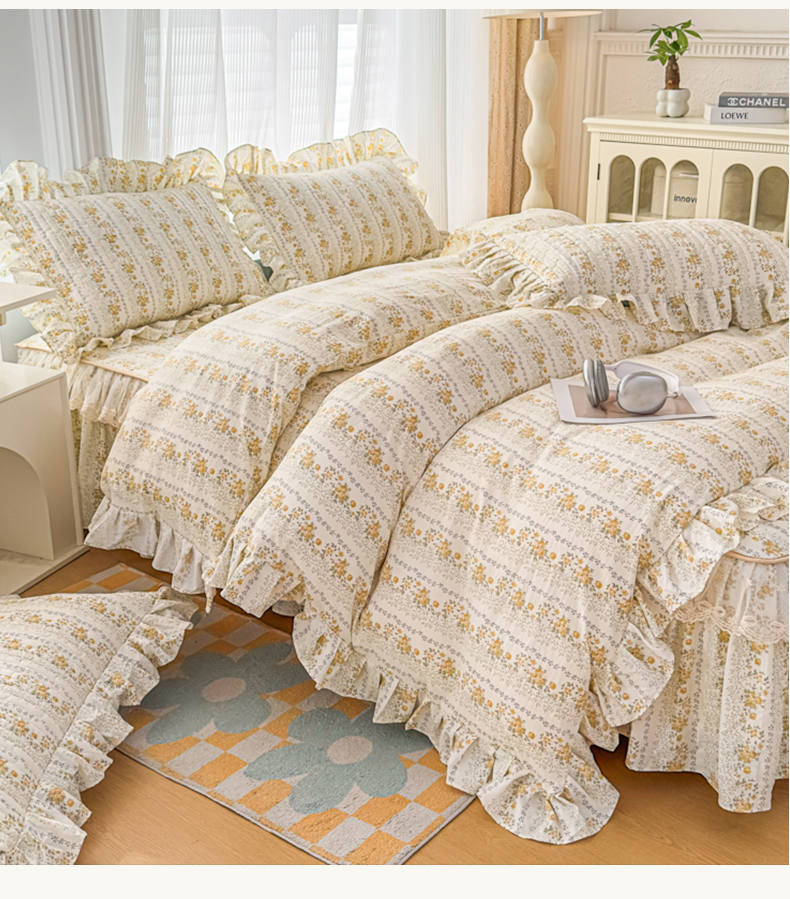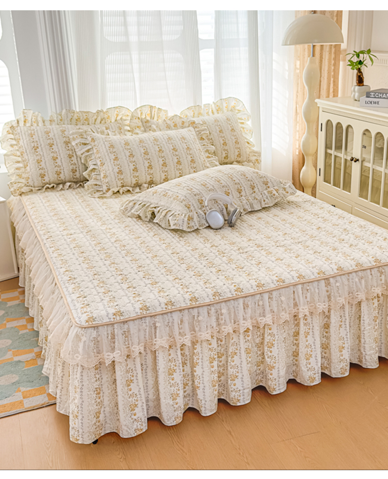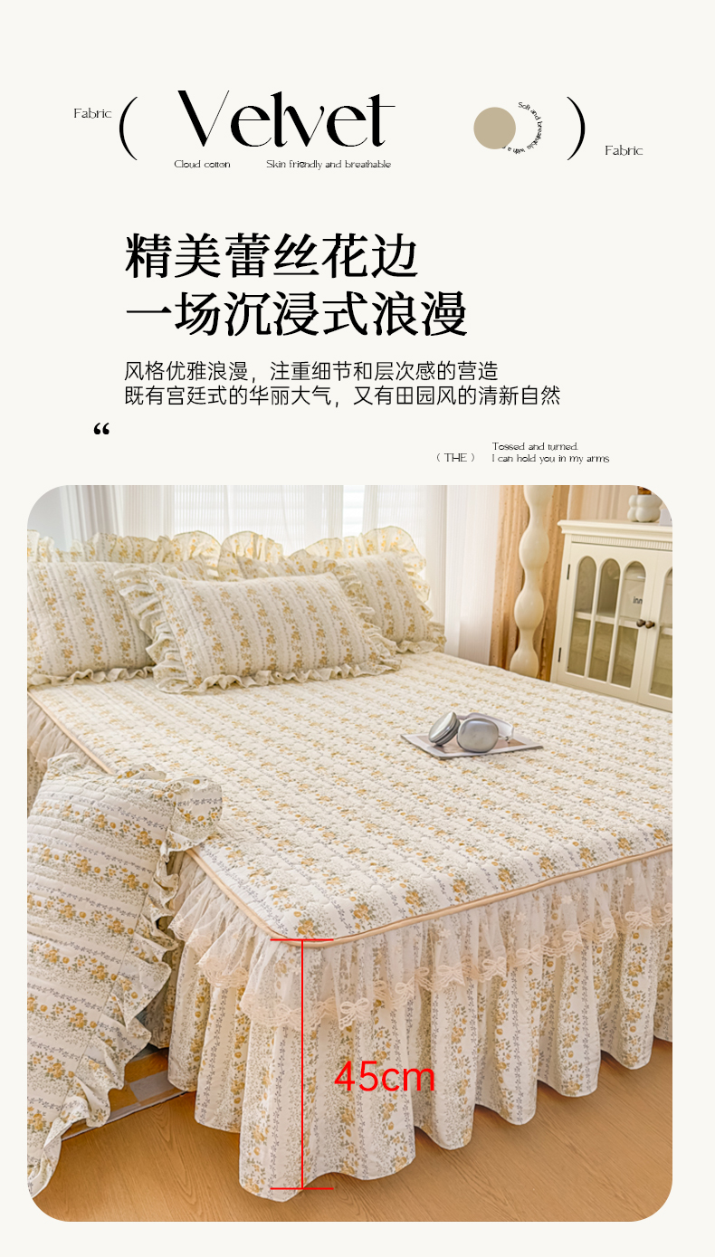 当前位置: 91家纺网 > 商品网购 > 床品套件 > 三件套 > 家之硕家纺 2026新款精仿棉夹棉床裙三件套 彩韵