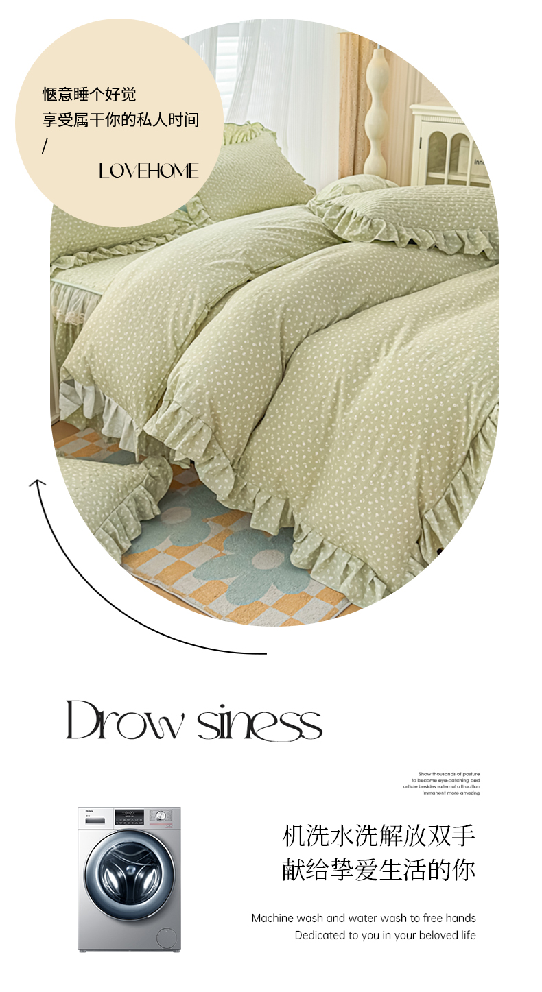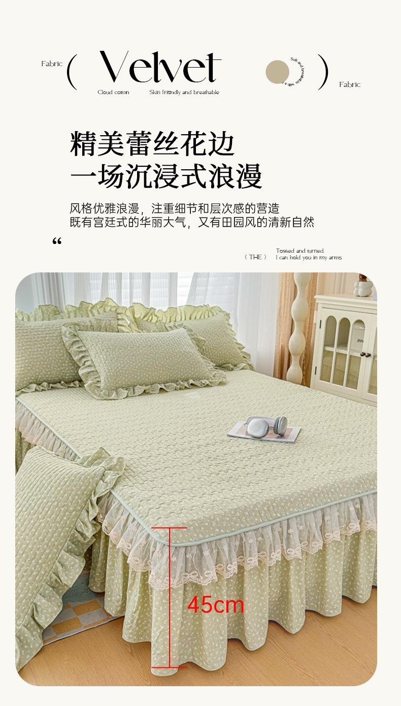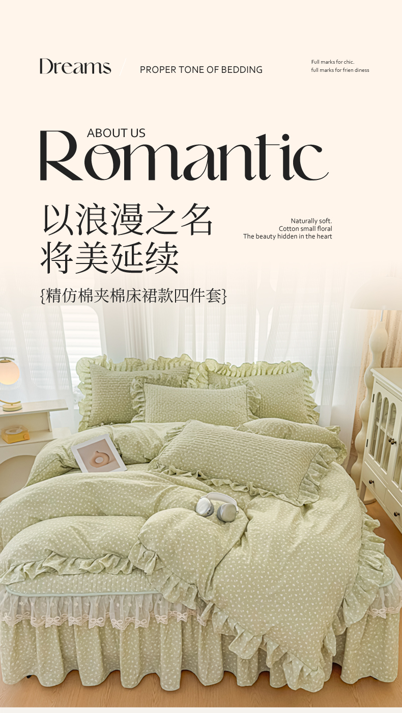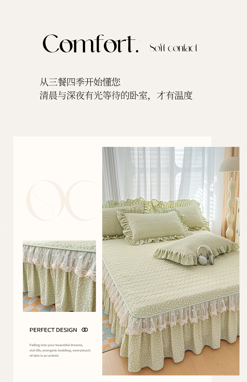 当前位置: 91家纺网 > 商品网购 > 床品套件 > 四件套 > 其它四件套 > 家之硕家纺 2026新款精仿棉夹棉床裙四件套 春芽