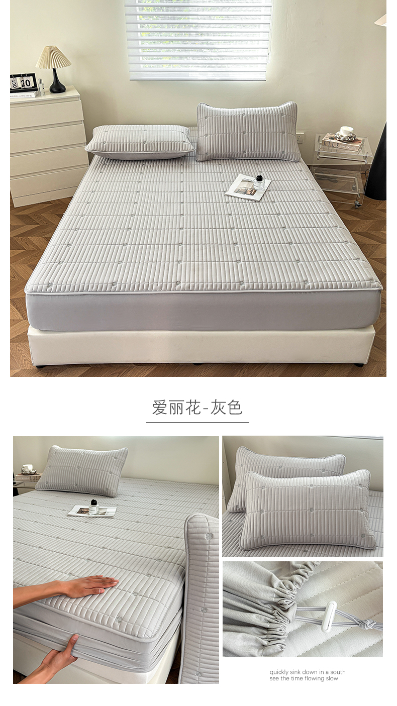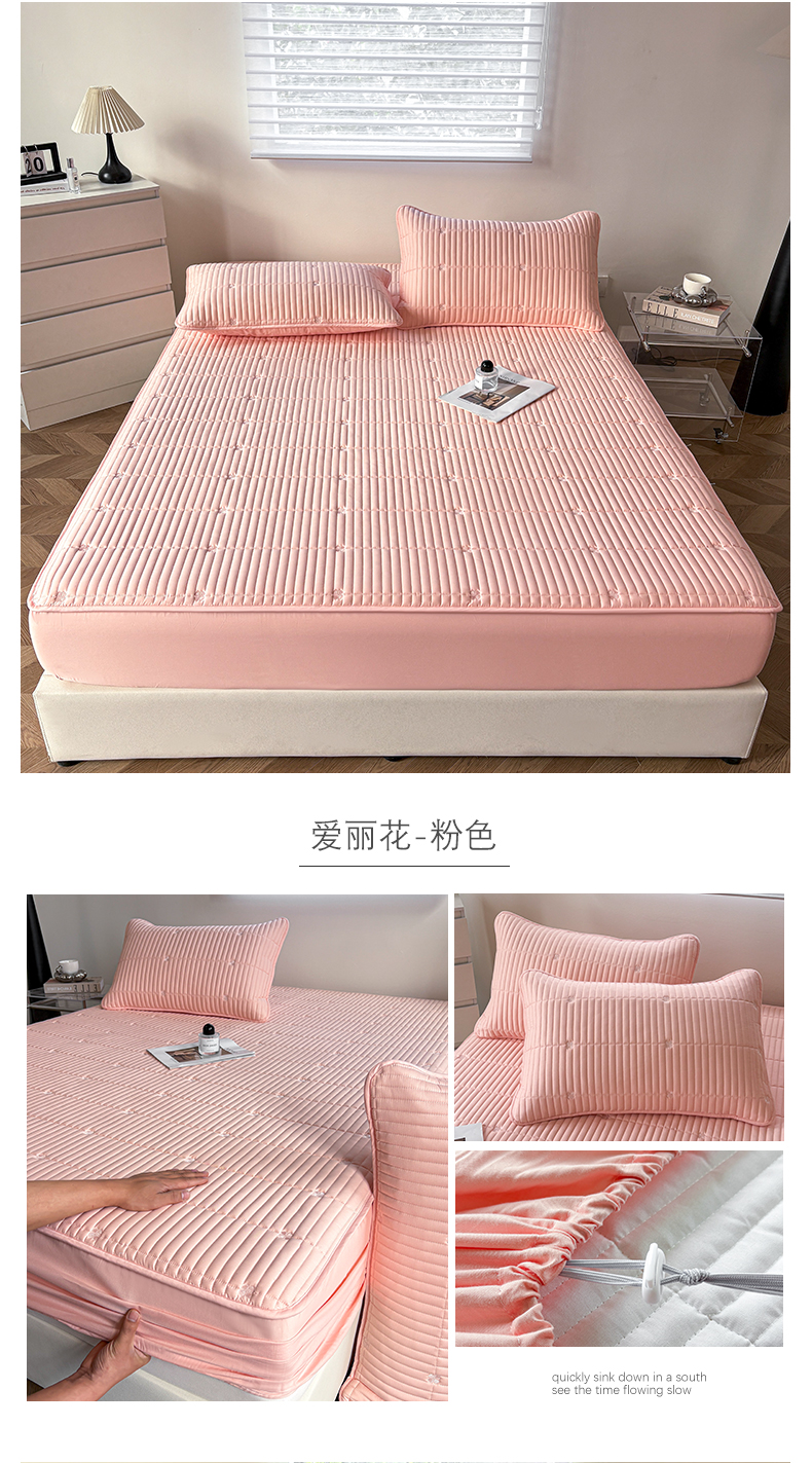 居眠 2026新款全棉133-72爱丽花夹棉棉花刺绣床笠 爱丽花-卡其色