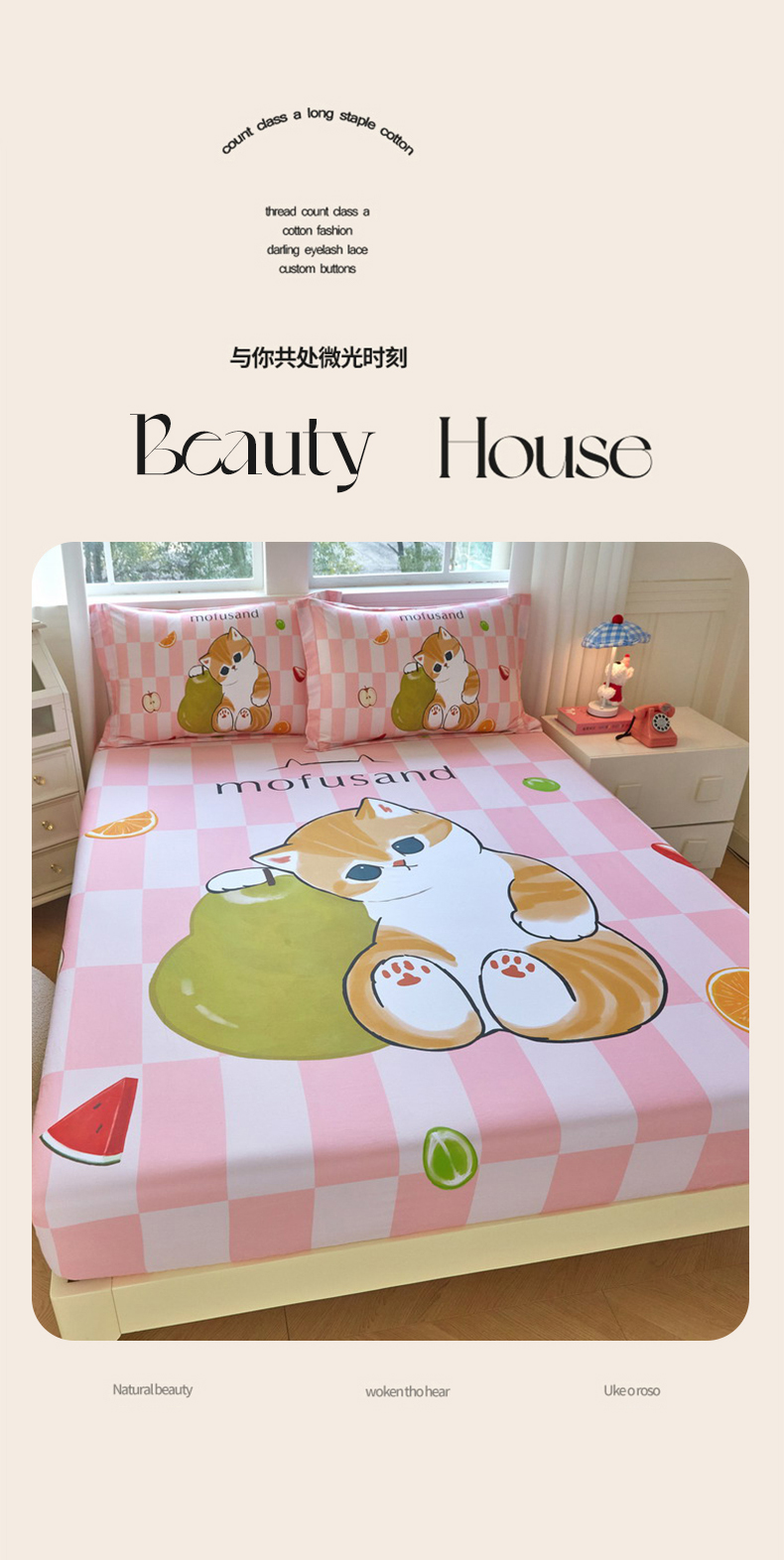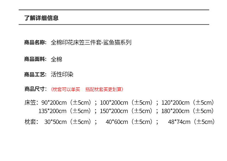 商品名称:蘭菲家纺 2026新款全棉大版鲨鱼猫套件-猫福系列单床笠 水果珊迪