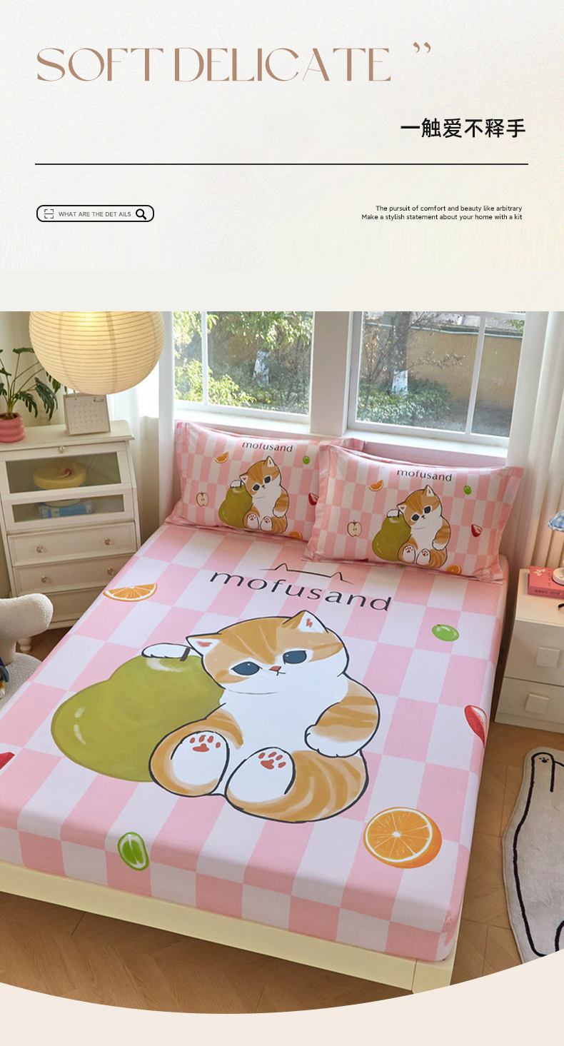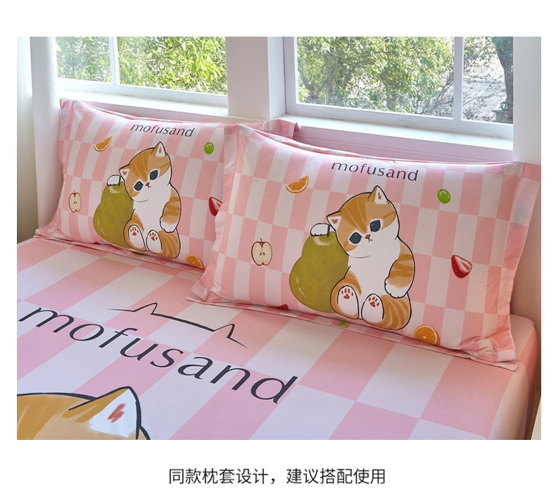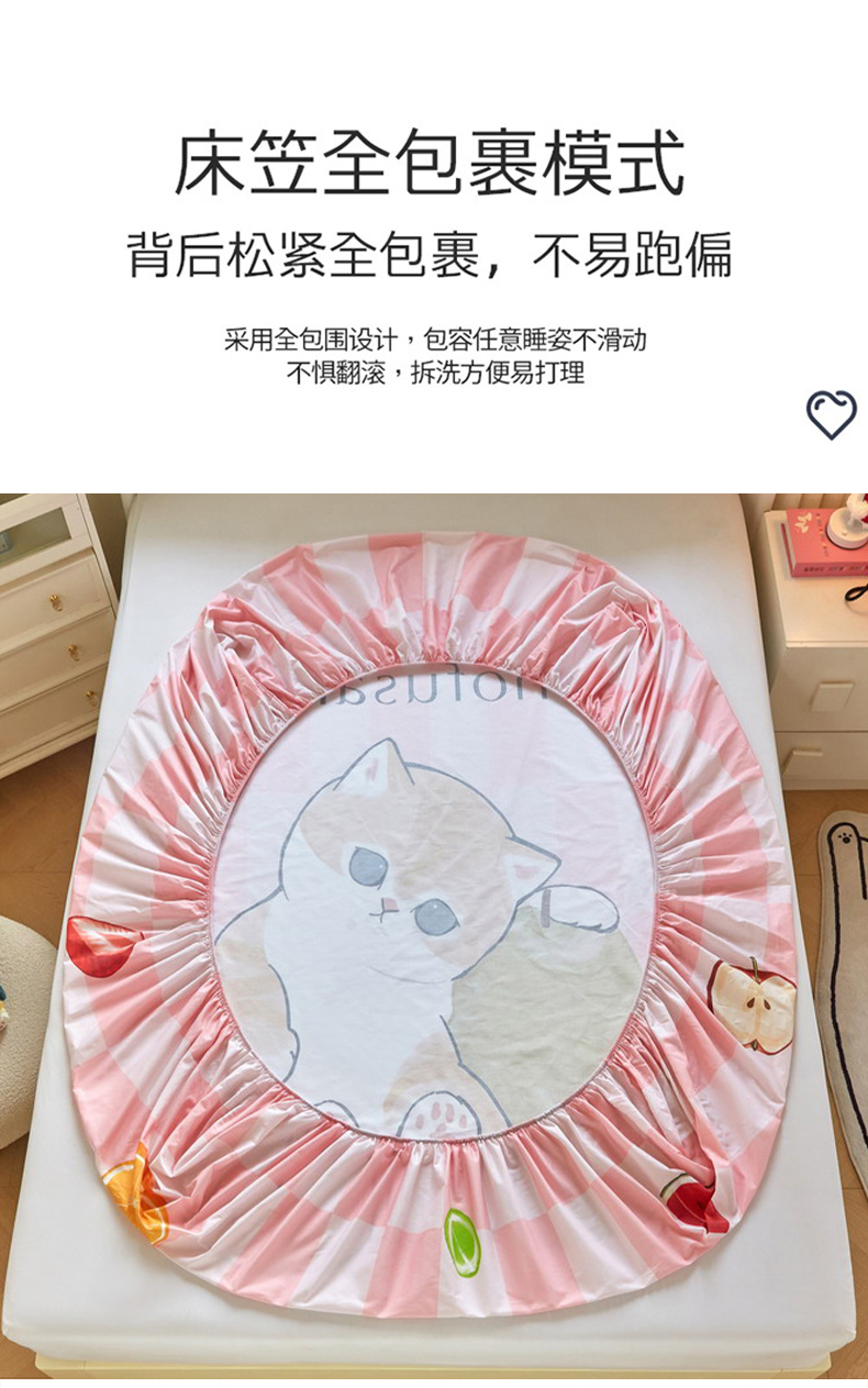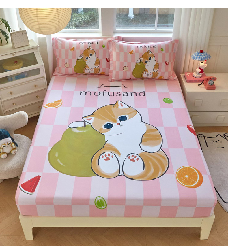 蘭菲家纺 2026新款全棉大版鲨鱼猫套件-猫福系列单床笠 水果珊迪