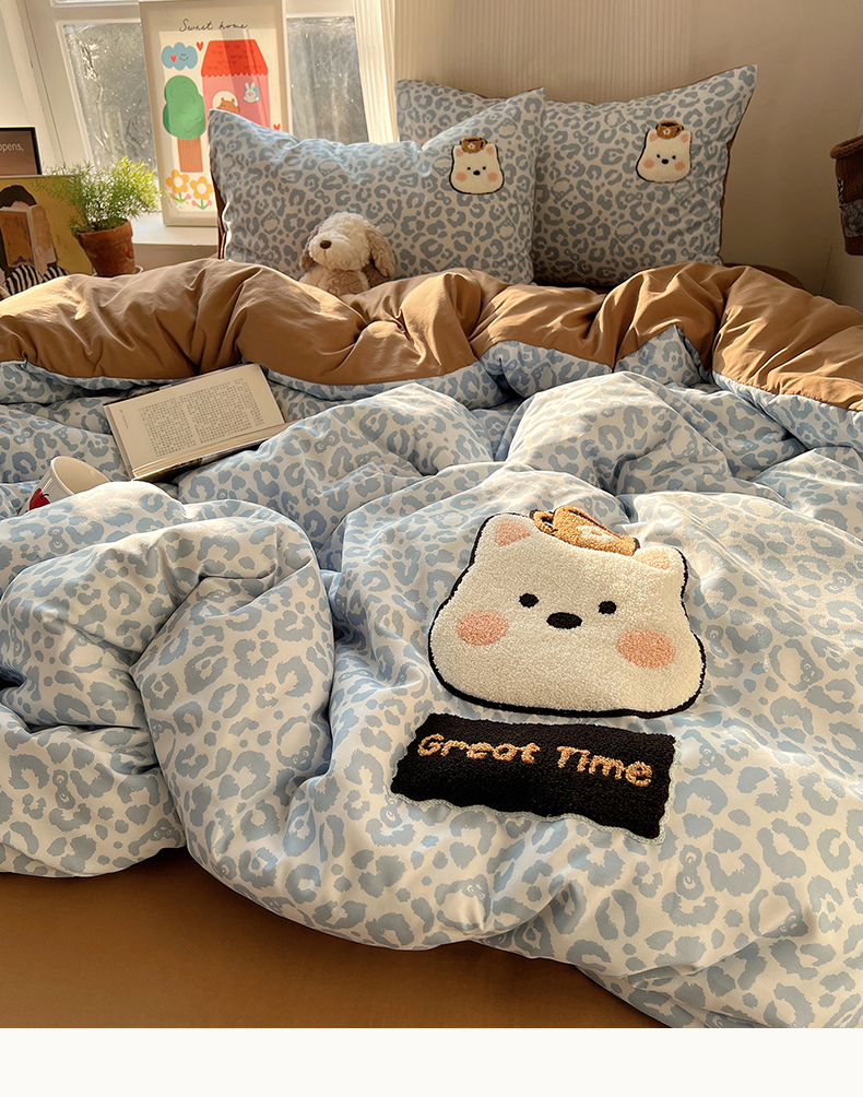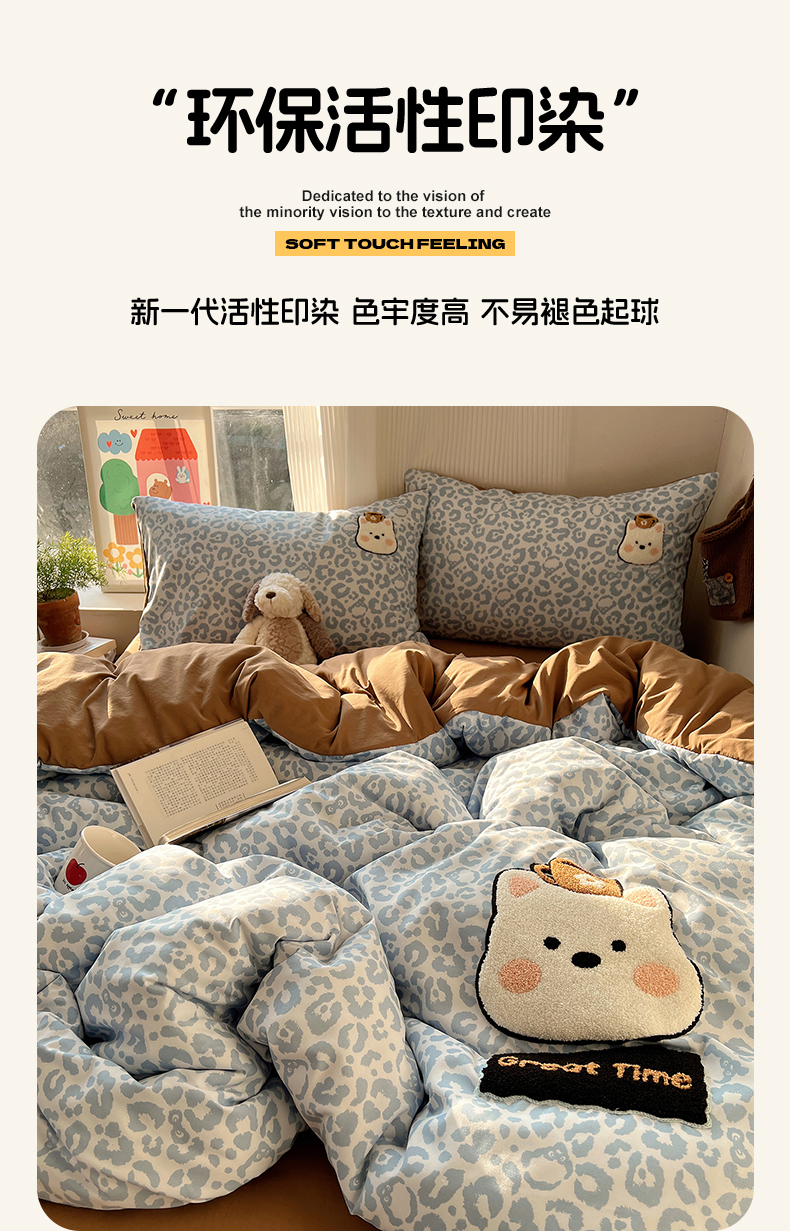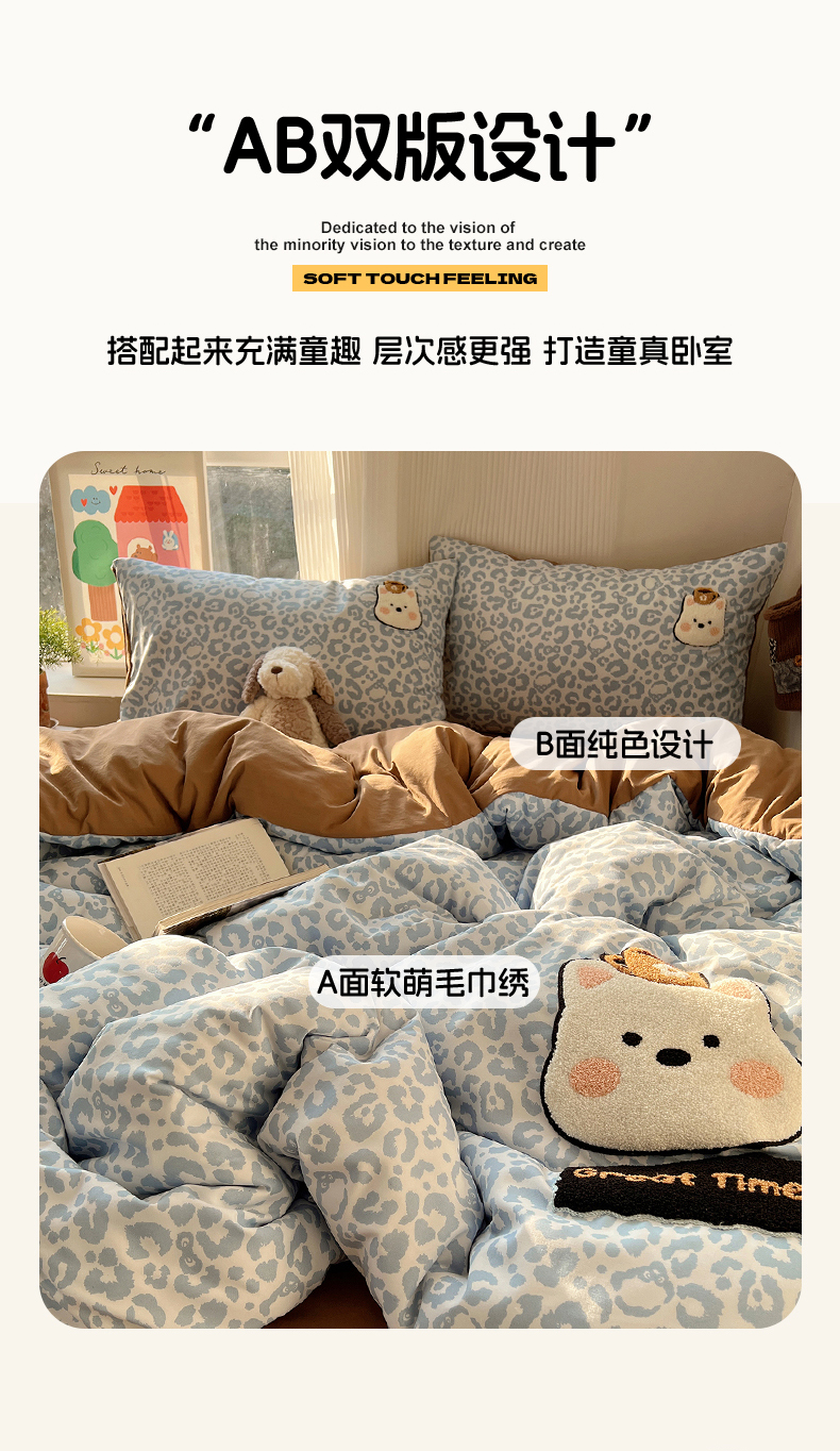 当前位置: 91家纺网 > 商品网购 > 床品套件 > 四件套 > 水洗棉四件套 > 沐芷 2026 【提供买家秀】水洗棉四件套毛巾绣A类仿棉床上用品床单被套三件套可爱小清新 毛巾绣-豹纹咖啡