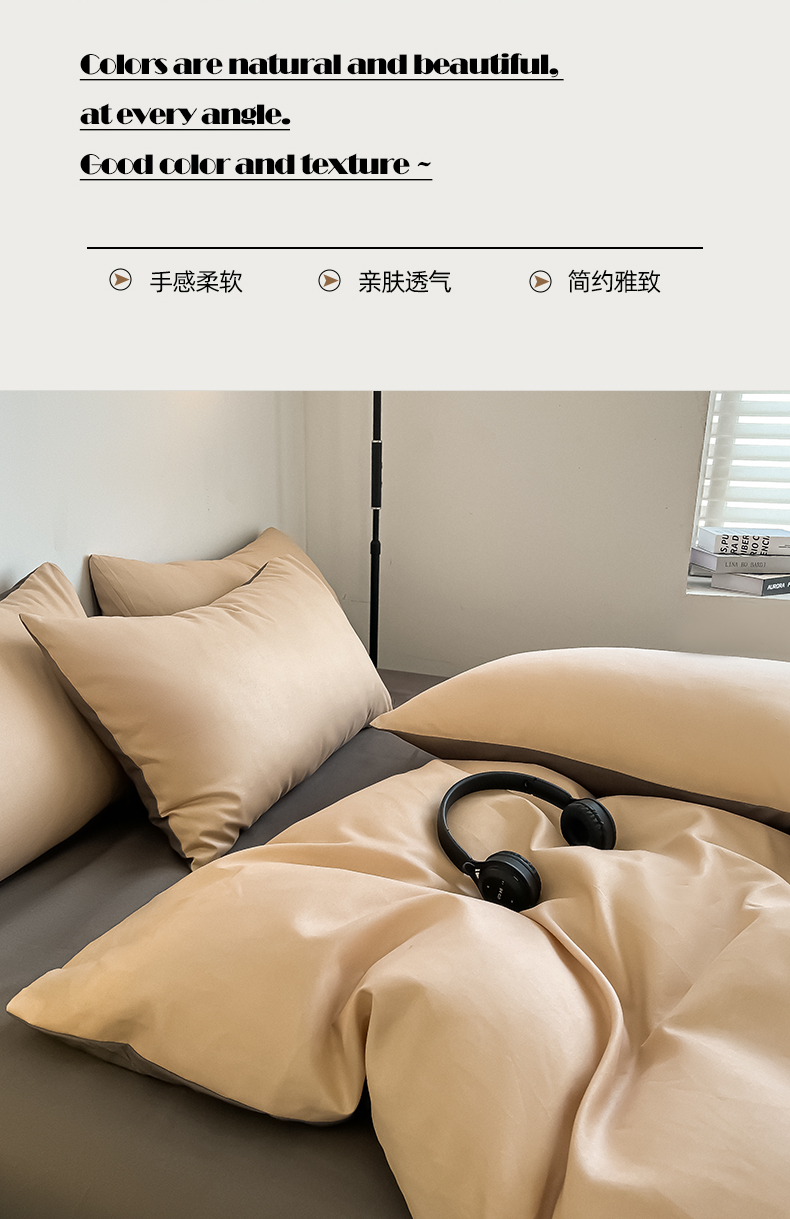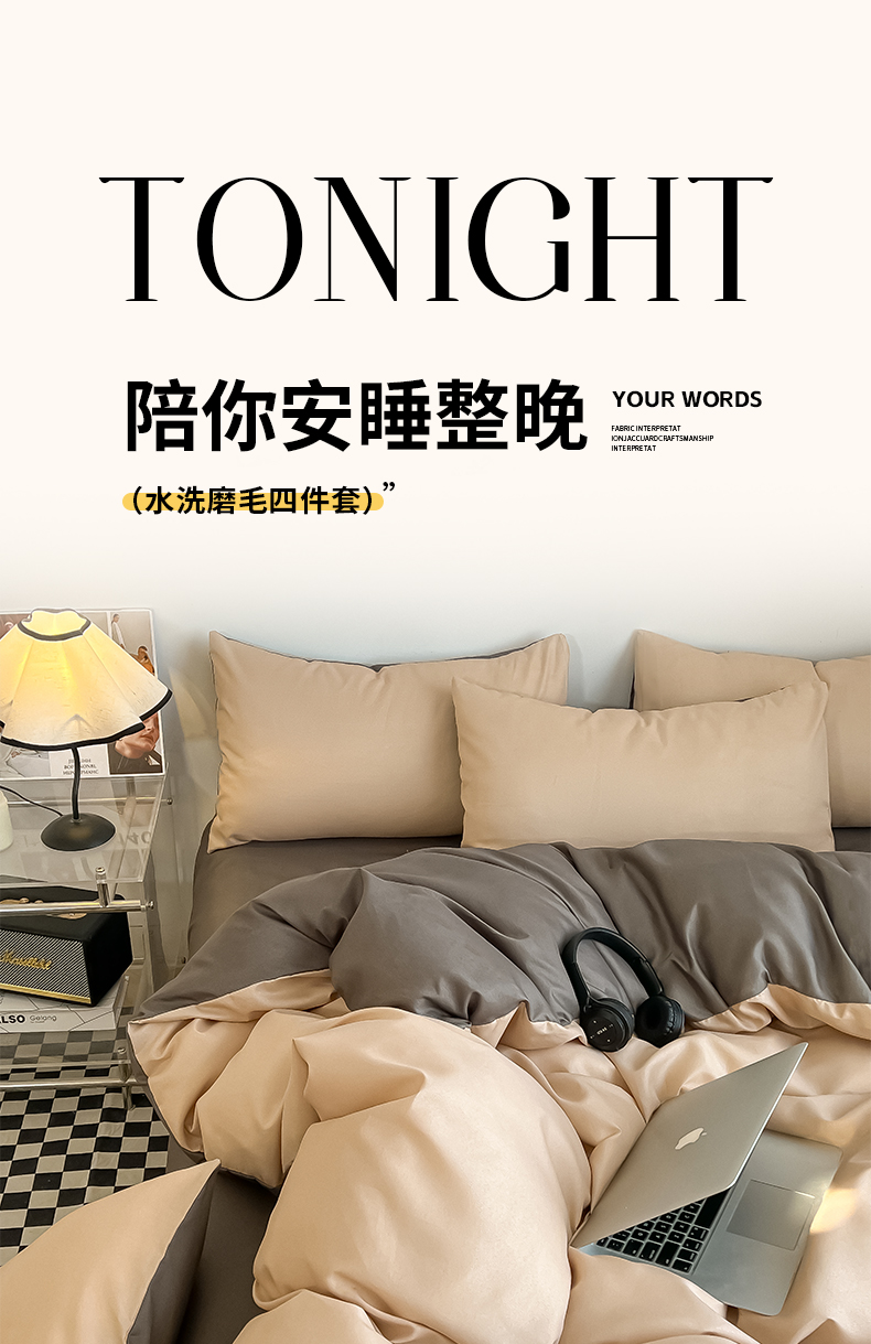 • 91家纺网 家纺一手货源 找家纺 友承家纺 2026新款四件套磨毛床单被套被罩简约纯色学生宿舍水洗棉3三件套床上用品4被套单件四季单独被罩 浅咖