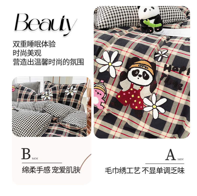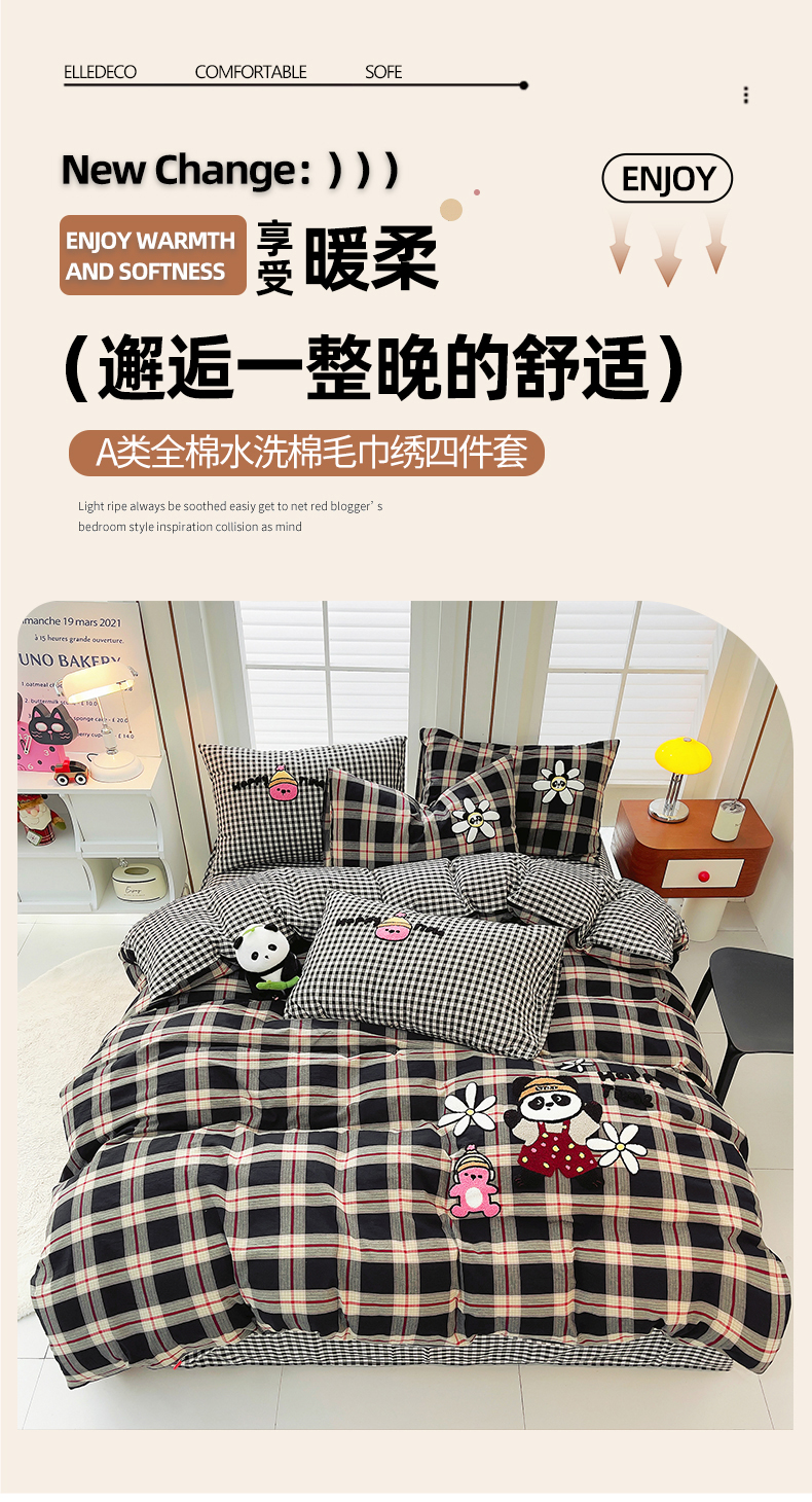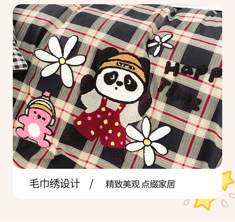 当前位置: 91家纺网 > 商品网购 > 床品套件 > 四件套 > 全棉普通四件套 > 炫拼家纺 2026新款多巴胺系列A类全棉40支水洗棉卡通毛巾绣四件套 多巴胺-快乐时光