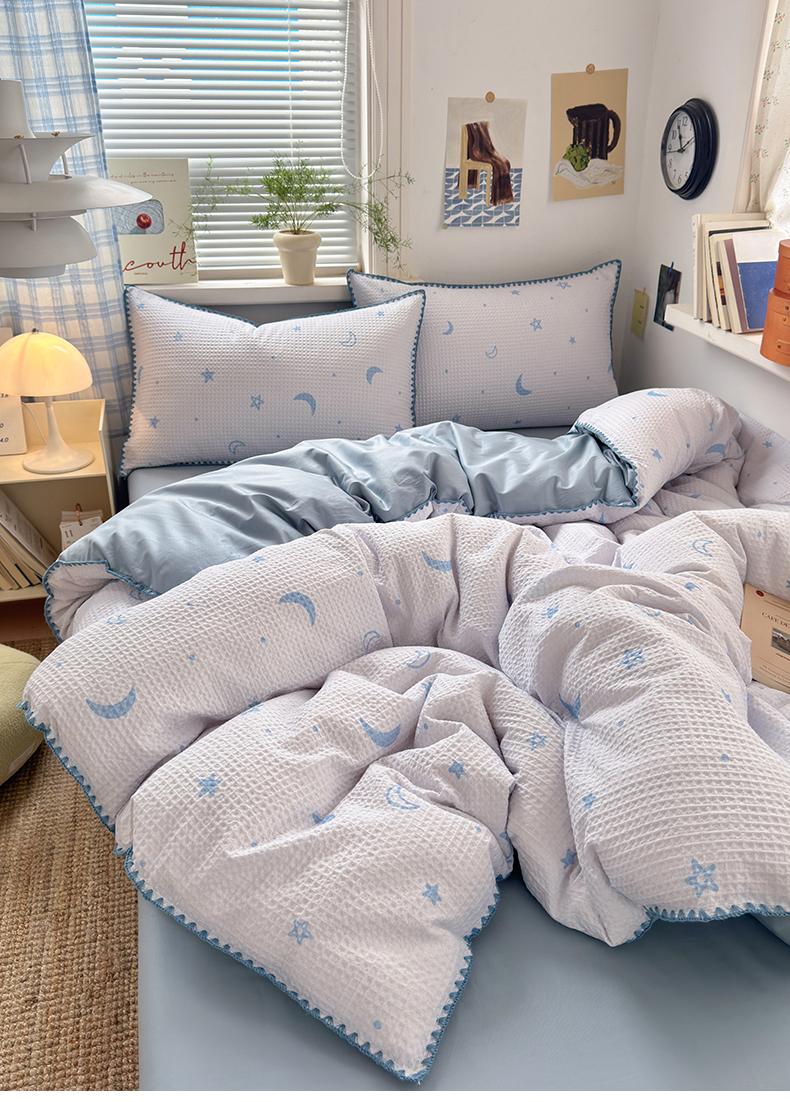 商品名称:典曼家纺 2026新款A类全棉华夫格提花贝壳边四件套 云梦星河-兰