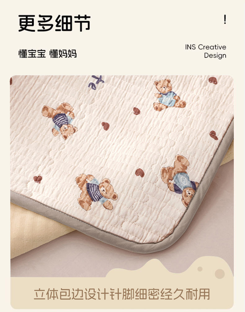 (总)永旺家纺 2025新款防水床笠-小熊系列,灰小熊,黄小熊,绿小熊,蓝小熊,粉小熊