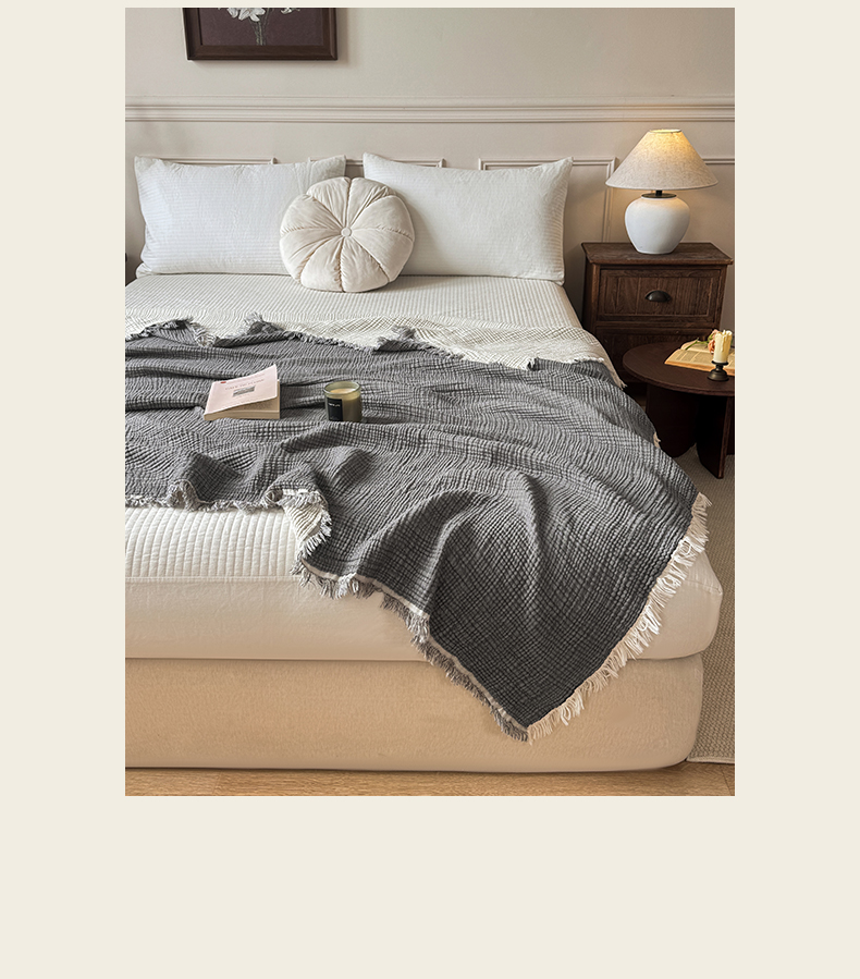 帅露家纺 2026新款全棉四层纱多功能盖毯毛毯 气质灰