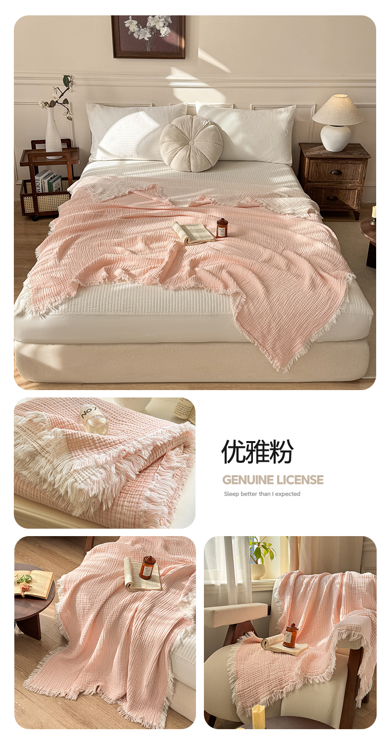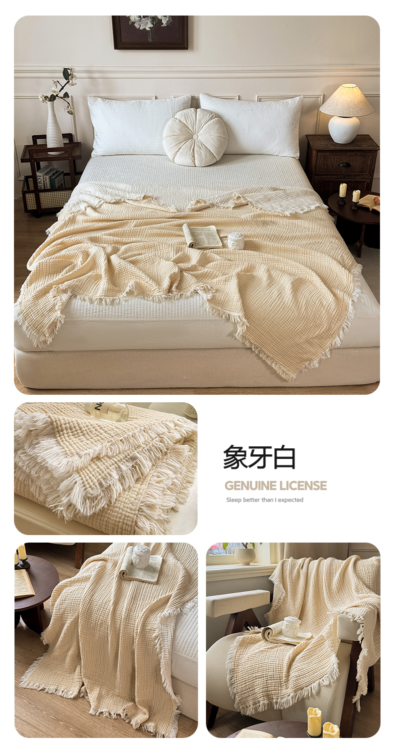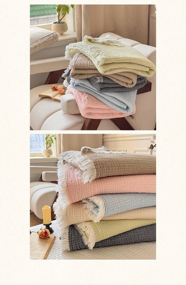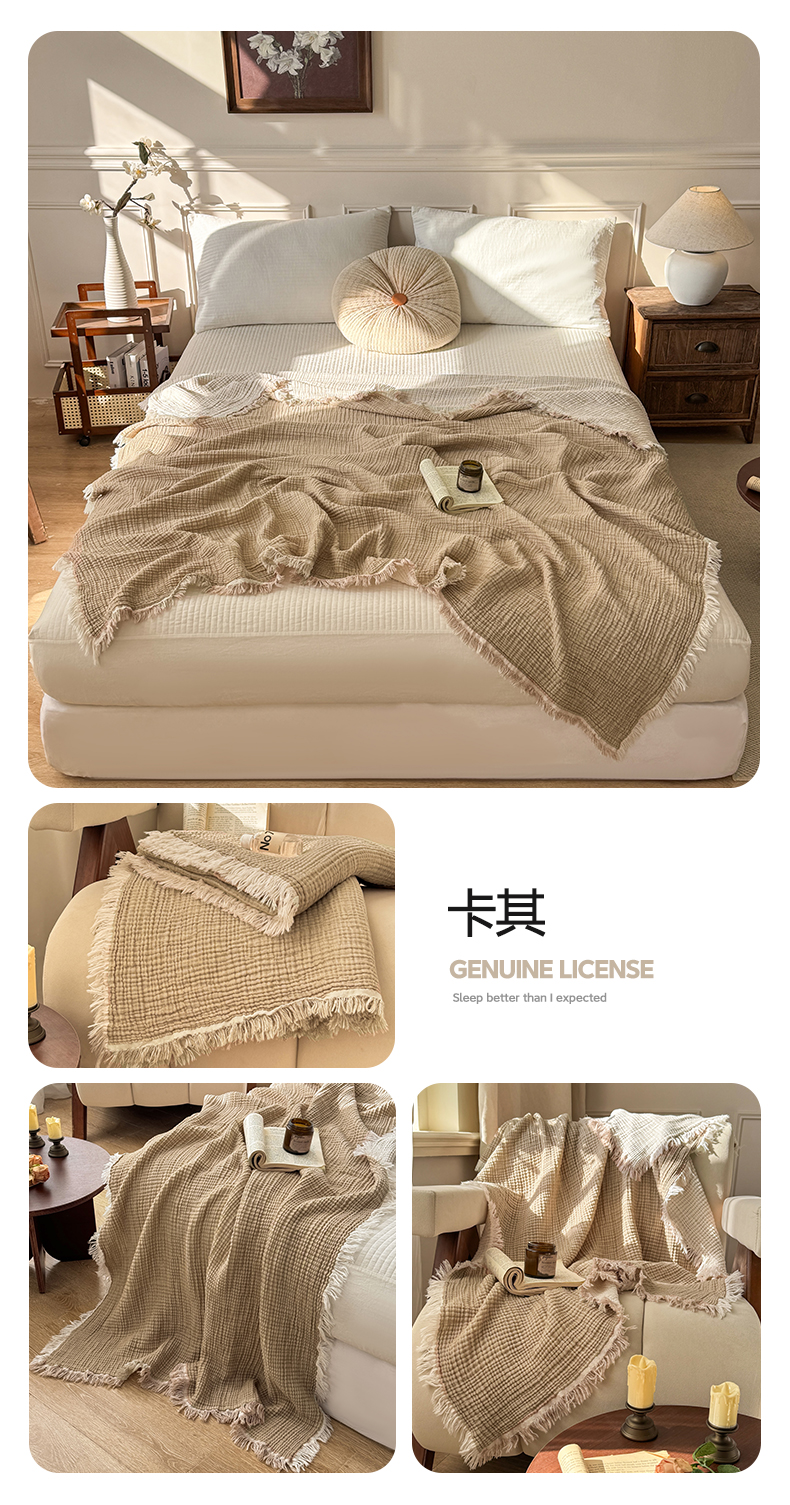 (总)帅露家纺 2026新款全棉四层纱多功能盖毯毛毯,卡其,牛油绿,气质灰,天湖蓝,象牙白,优雅粉