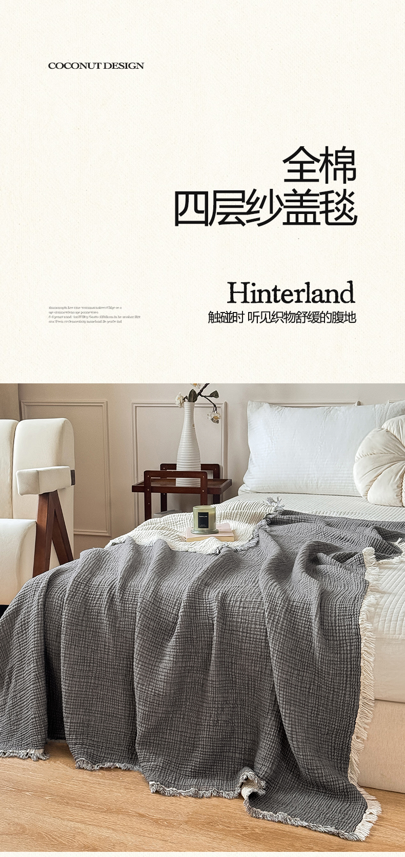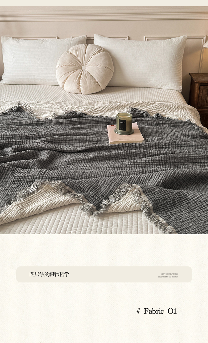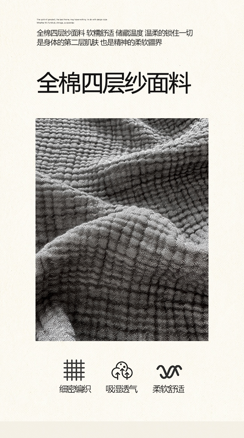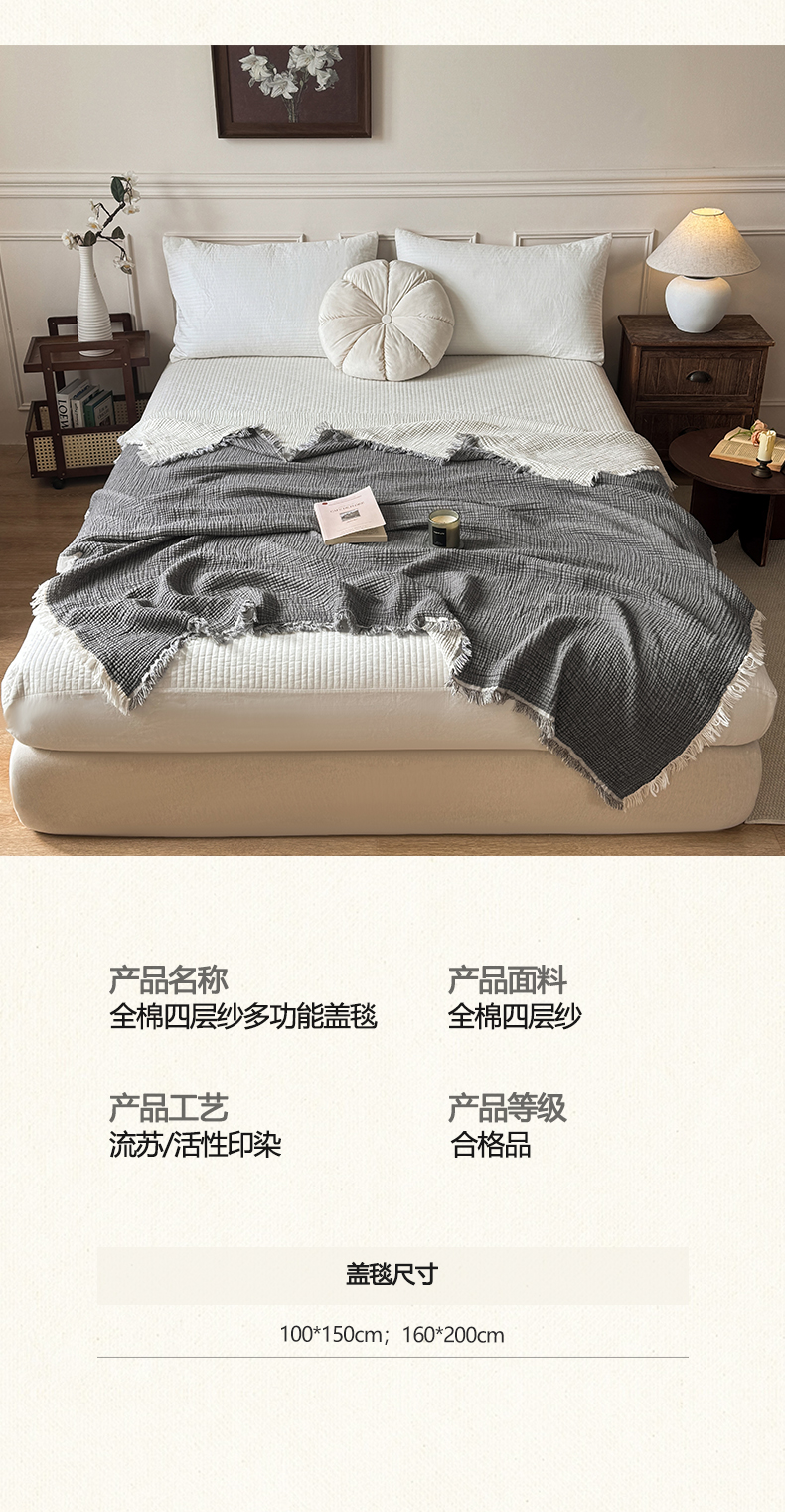 商品名称:帅露家纺 2026新款全棉四层纱多功能盖毯毛毯 气质灰