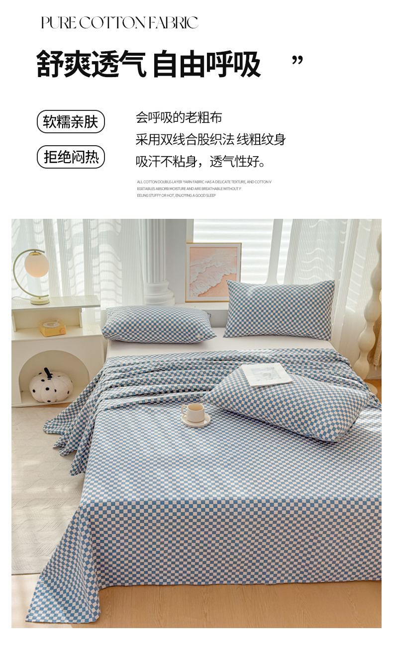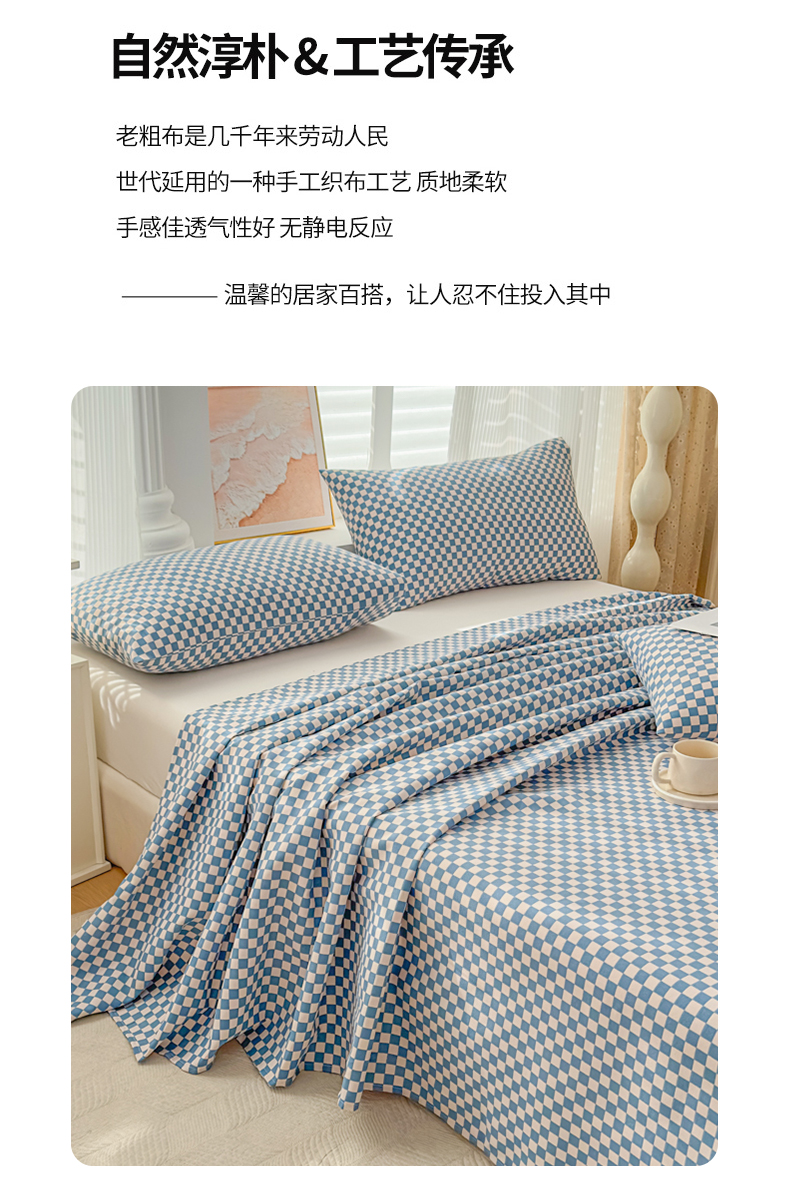 当前位置: 91家纺网 > 商品网购 > 床品套件 > 三件套 > 爱彼家纺 2026新款马上发财新布料细沙三枚缎全新工艺老粗布凉席席子床单三件套-马年系列一 蓝格棋