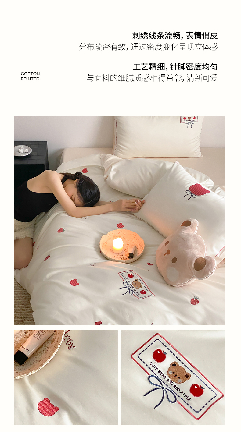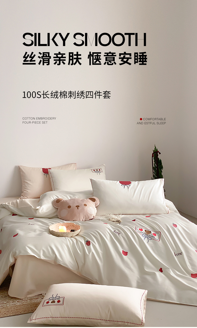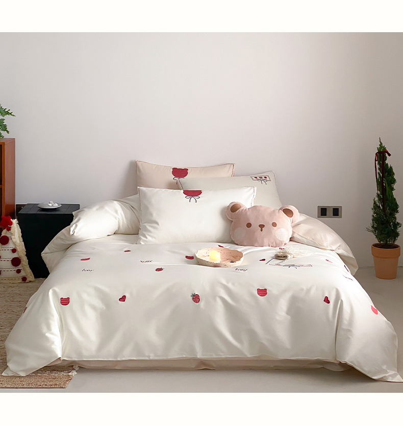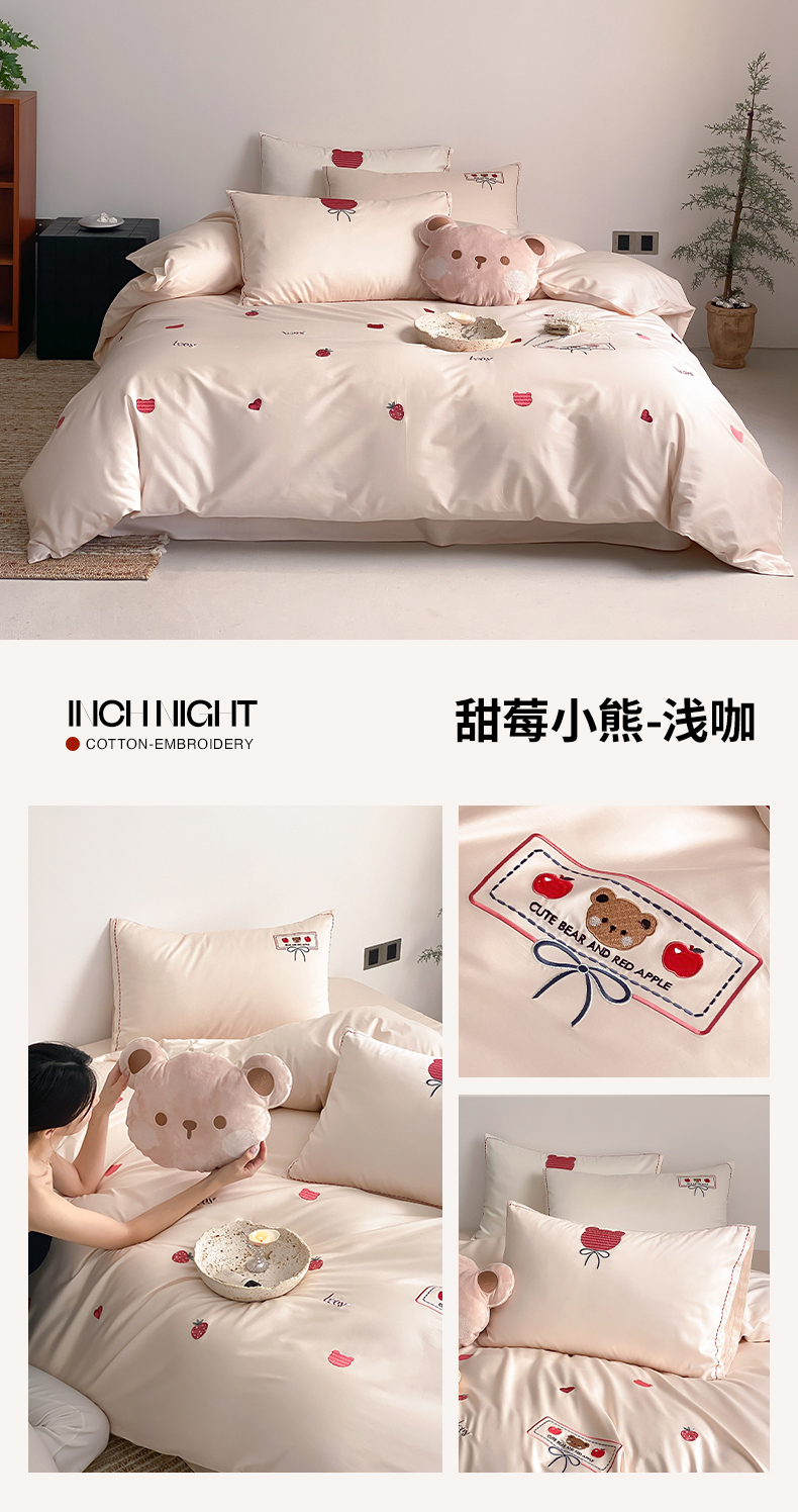 当前位置: 91家纺网 > 商品网购 > 床品套件 > 四件套 > 长绒棉四件套 > (总)极简 2026新款100s长绒棉刺绣四件套-甜莓小熊