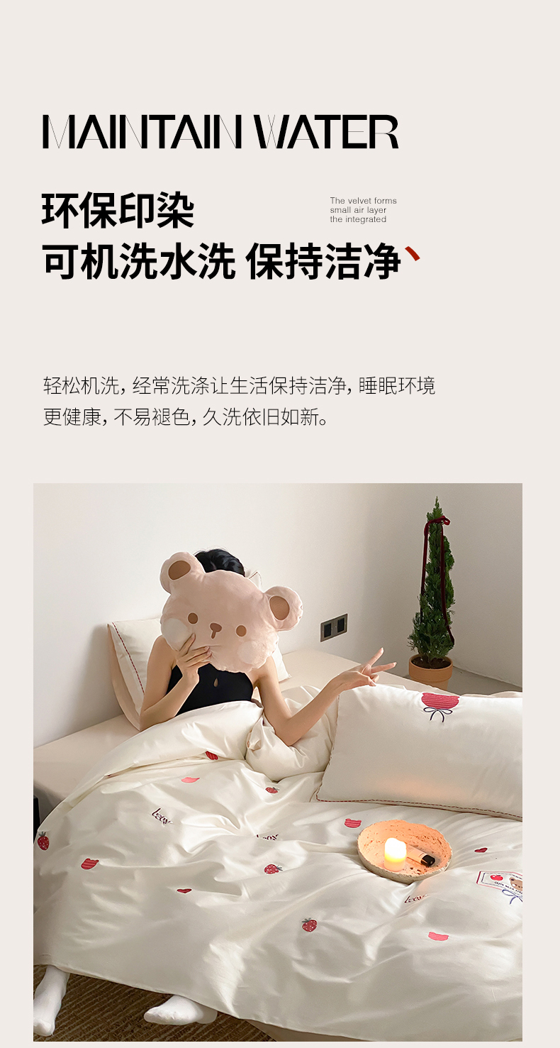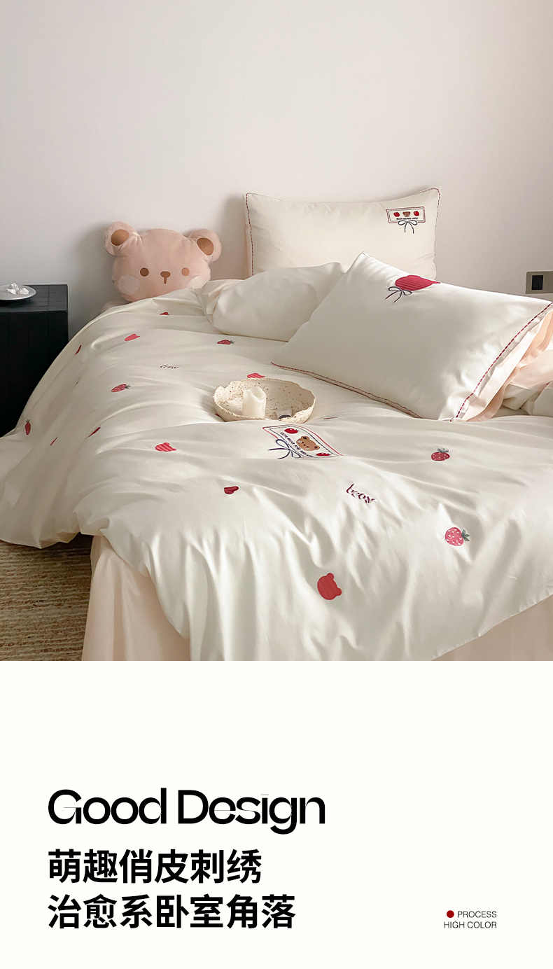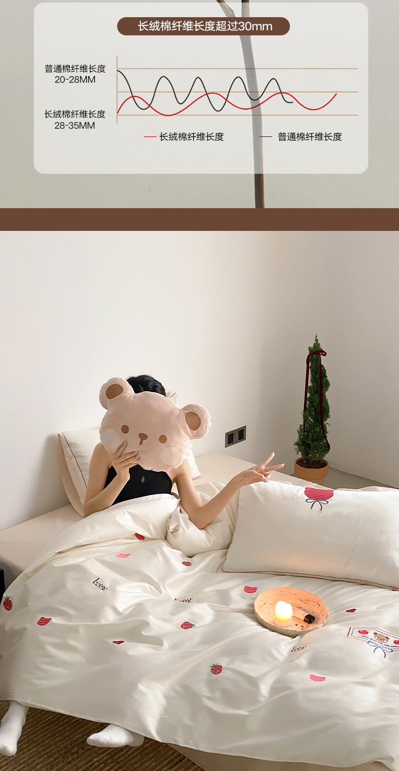 当前位置: 91家纺网 > 商品网购 > 床品套件 > 四件套 > 长绒棉四件套 > (总)极简 2026新款100s长绒棉刺绣四件套-甜莓小熊