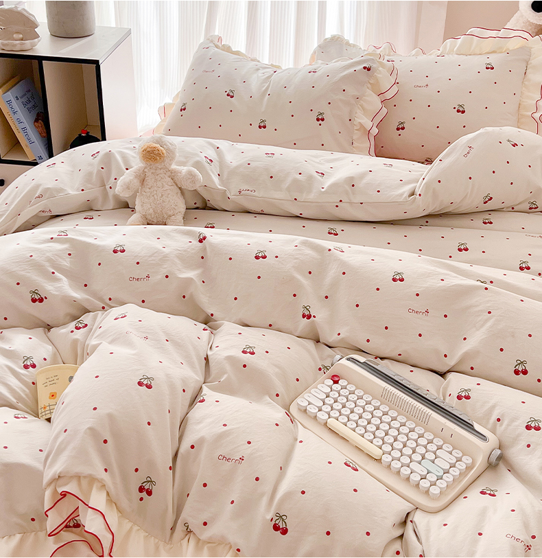 (总)吾欢心 2026春夏新款古法水洗仿棉韩版双层花边四件套