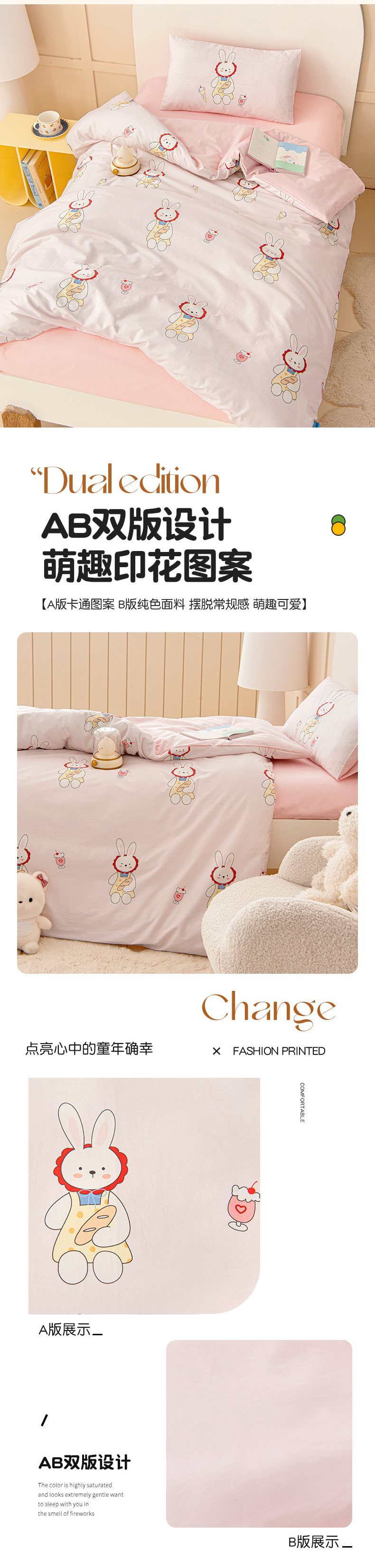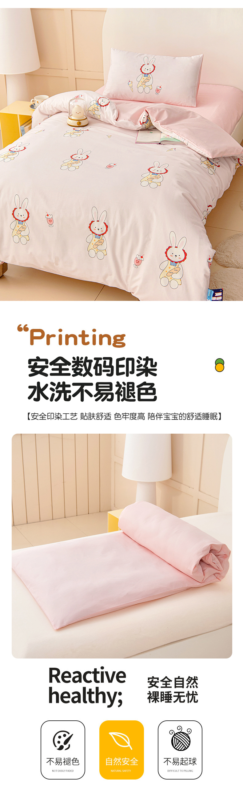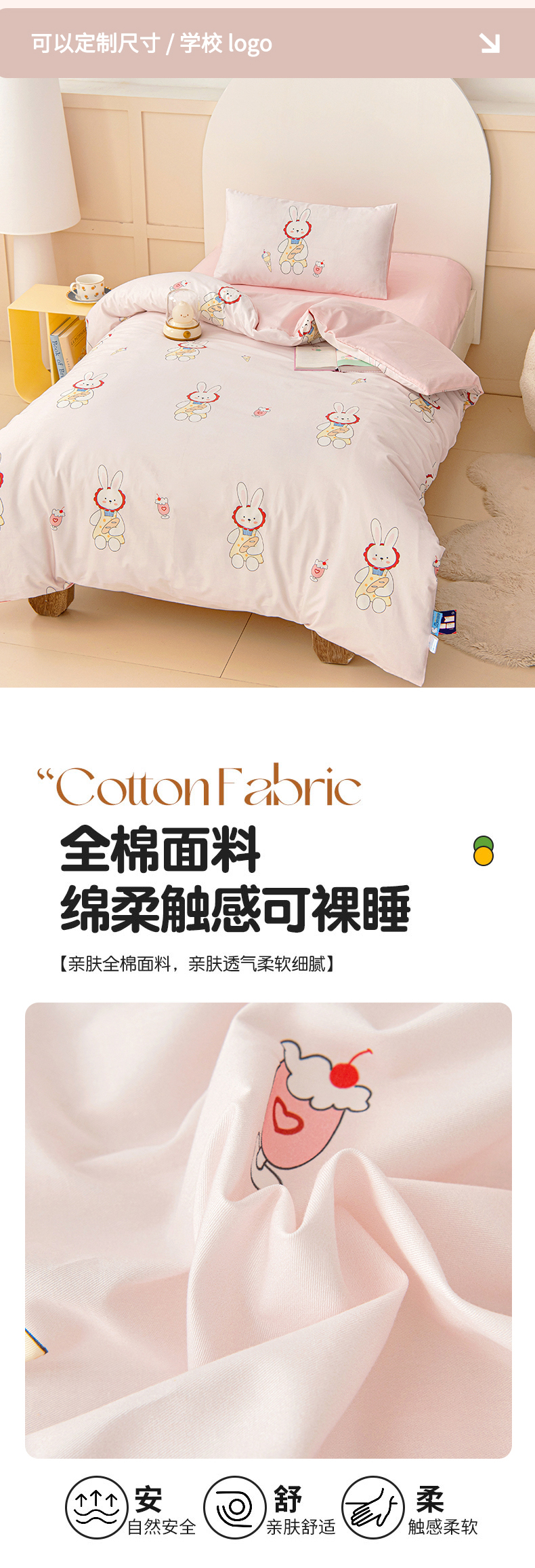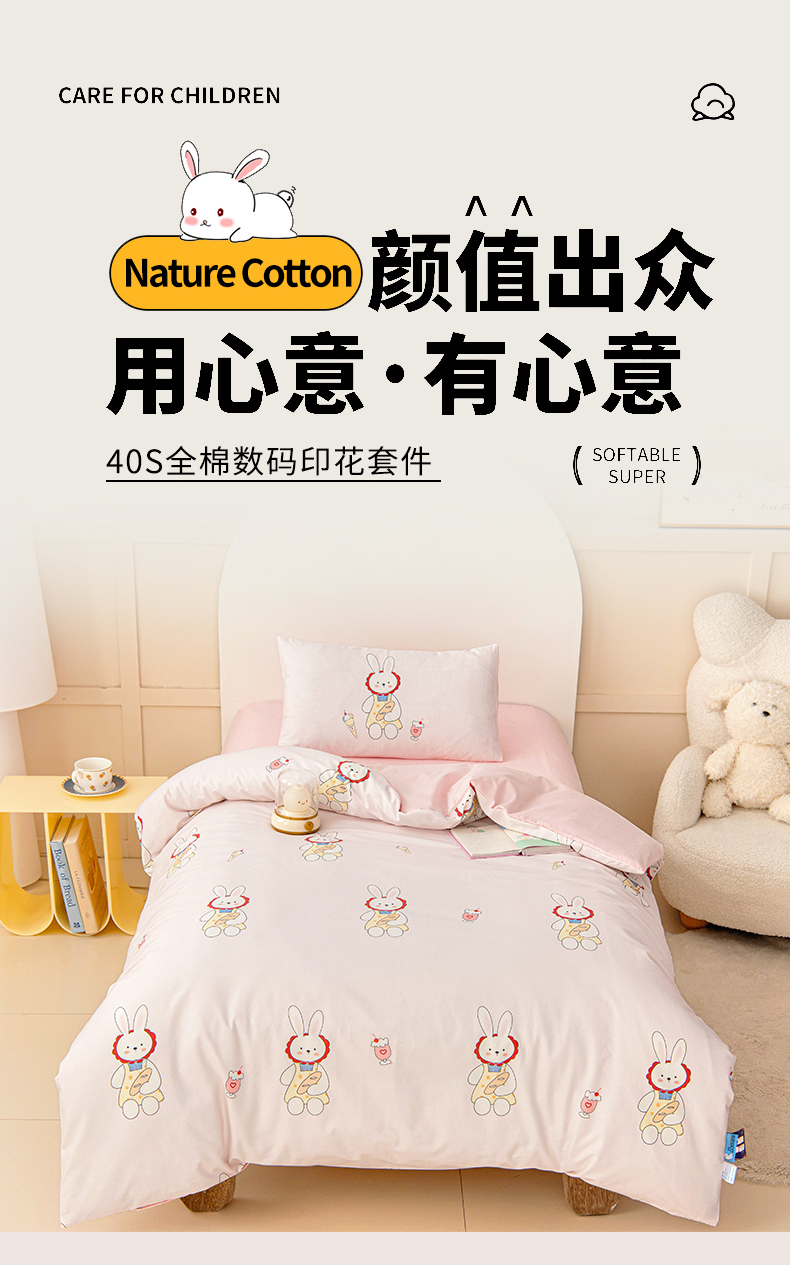 当前位置: 91家纺网 > 商品网购 > 床品套件 > 四件套 > 全棉普通四件套 > 御棉坊 2026新款A类全棉纯棉40S数码印花幼儿园入园三件套被子宝宝午睡被芯六件套 冰激凌小兔