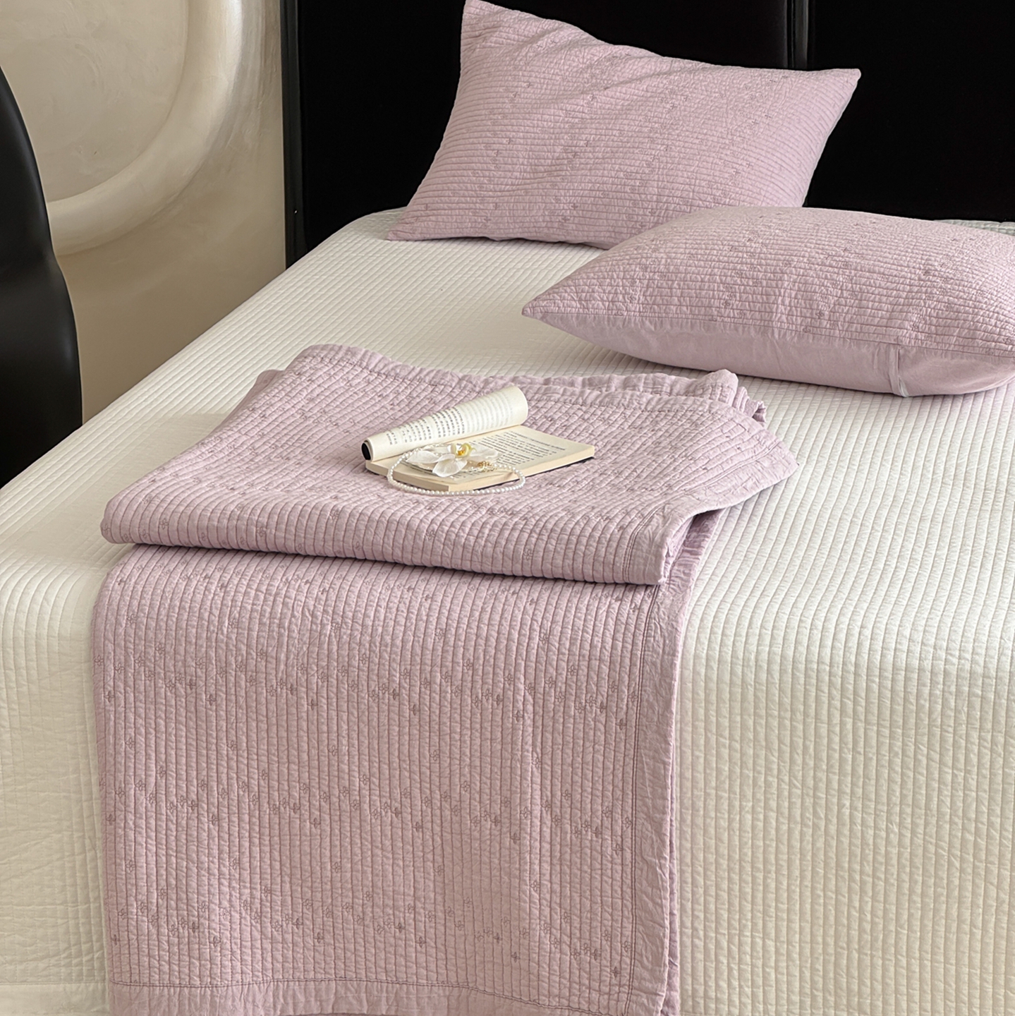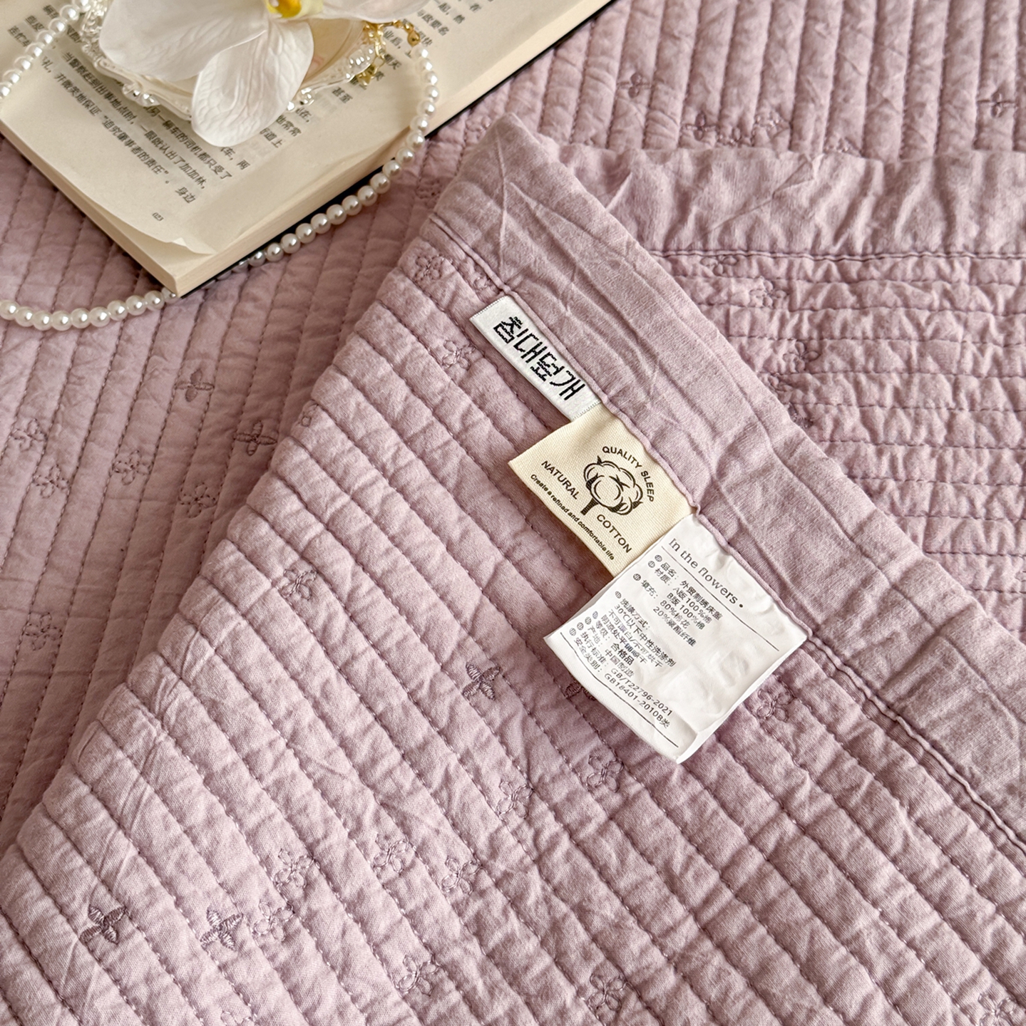 商品名称:床盖工厂店 2025新款韩式四叶草双面全棉填充棉花床盖套件 香芋紫
