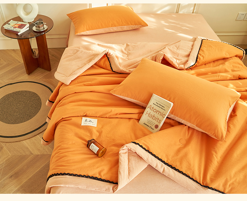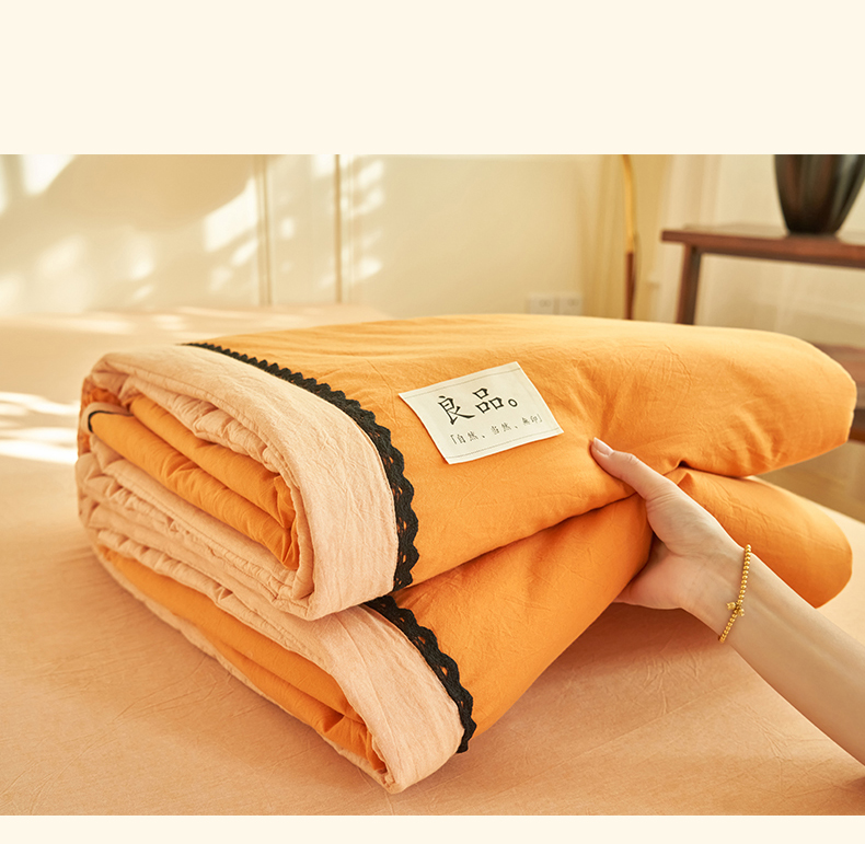 • 91家纺网 家纺一手货源 找家纺 恒爱家纺 2026新款全棉纯棉纯色双拼夏被四件套夏凉被空调被 佛手黄