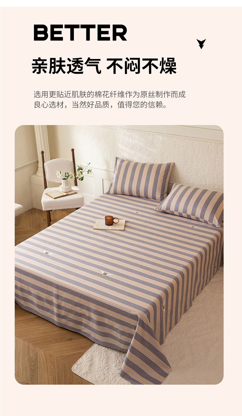 商品名称:八十八家纺 2026新款无印风全棉纯棉斜纹条格单床单床单单件单品床单 山林
