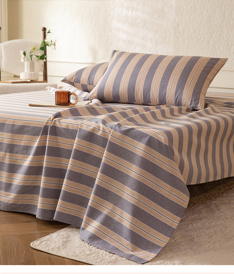八十八家纺 2026新款无印风全棉纯棉斜纹条格单床单床单单件单品床单 山林