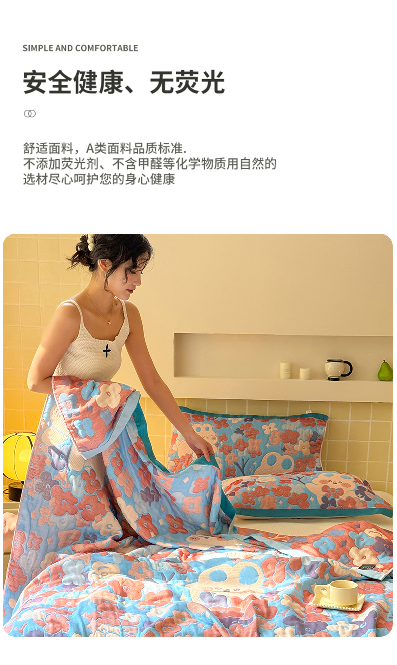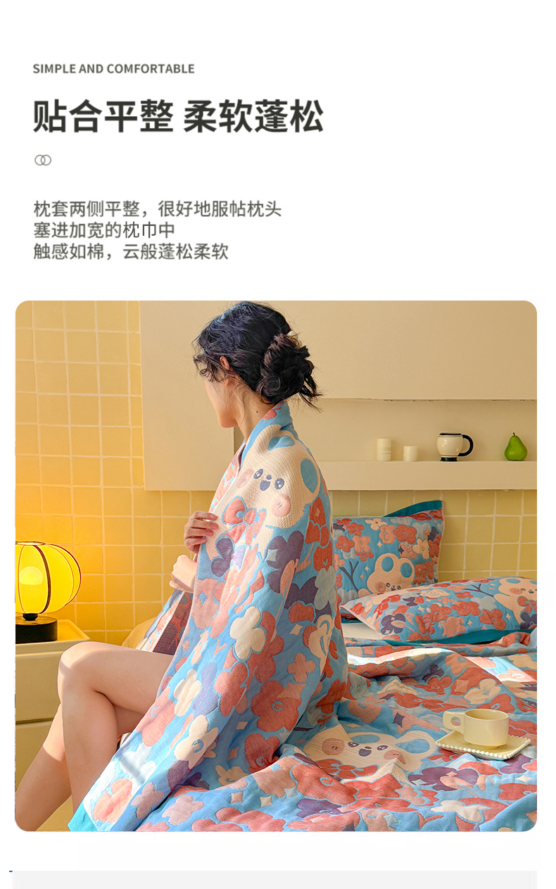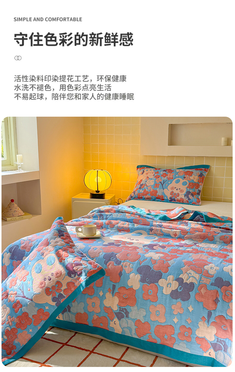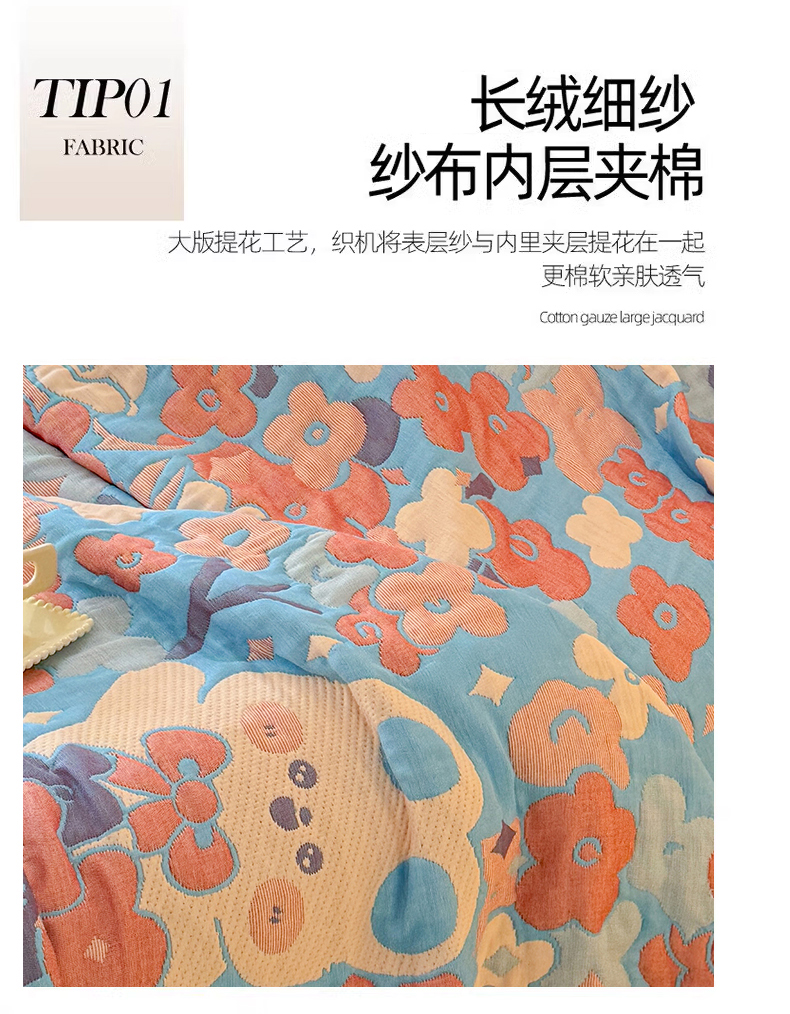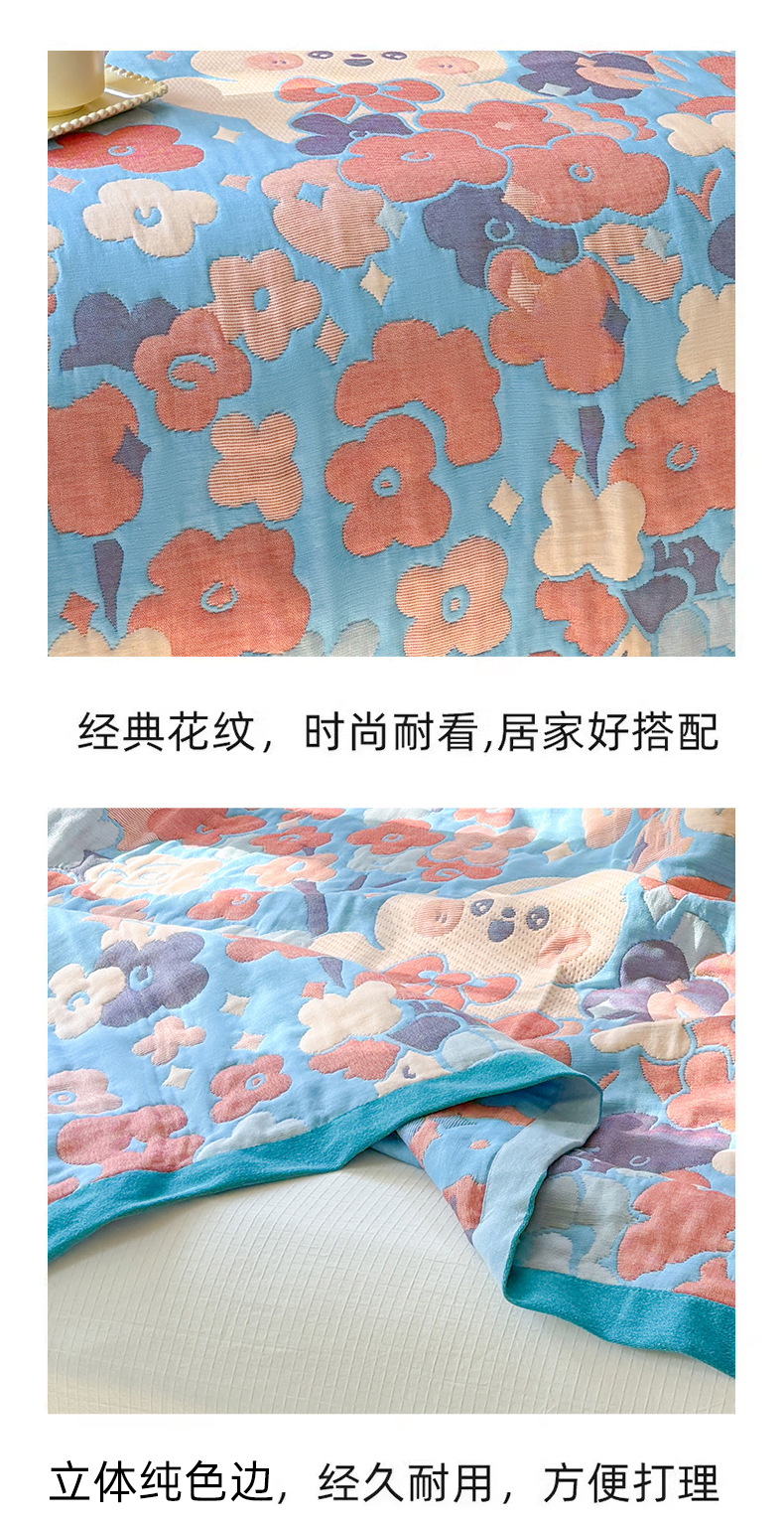 商品名称:朴尔家纺-毛巾被 2026新款彩棉云柔三层纱布毛巾被三件套盖毯 春樱