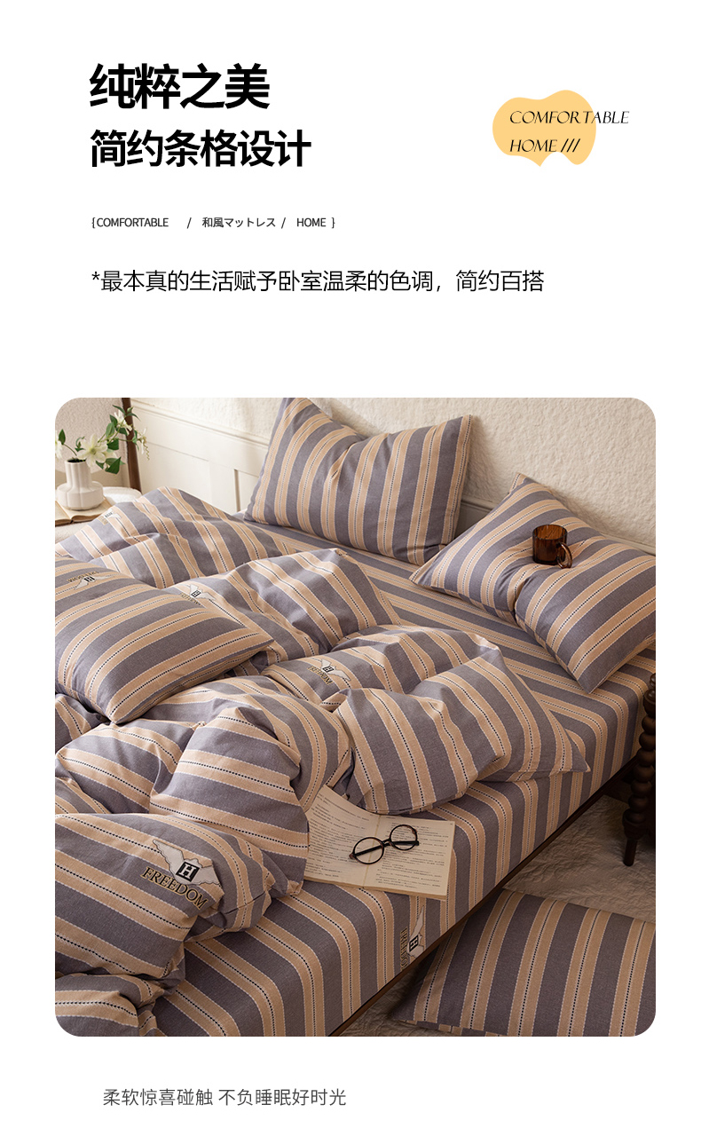 当前位置: 91家纺网 > 商品网购 > 床品套件 > 四件套 > 全棉普通四件套 > 八十八家纺 2026新款无印风全棉纯棉斜纹条格四件套 木春