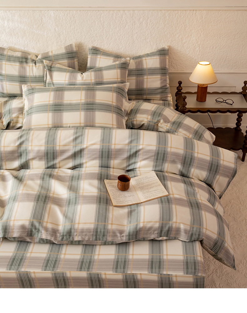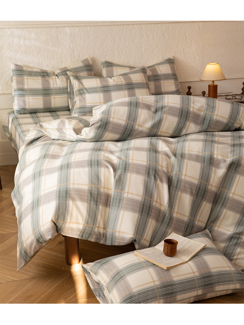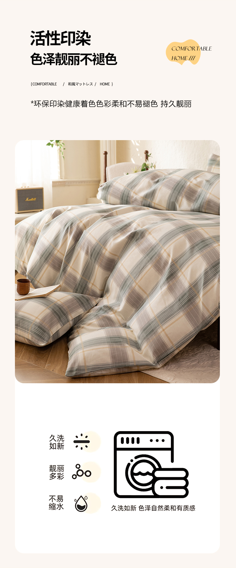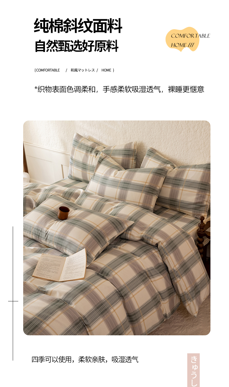 当前位置: 91家纺网 > 商品网购 > 床品套件 > 四件套 > 全棉普通四件套 > 八十八家纺 2026新款无印风全棉纯棉斜纹条格四件套 山竹