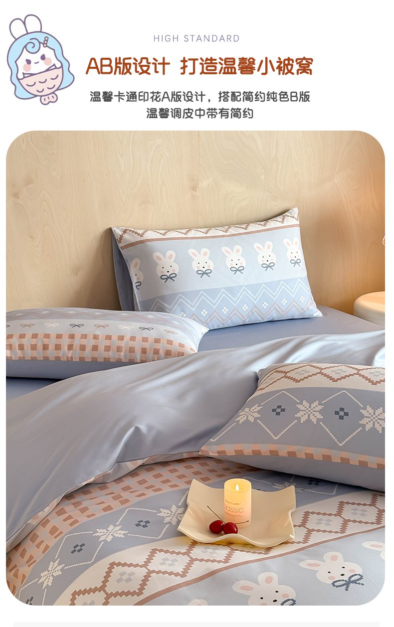 典曼家纺 2026新款纯棉四件套高级100Pro全棉贡缎卡通四件套 花仙兔