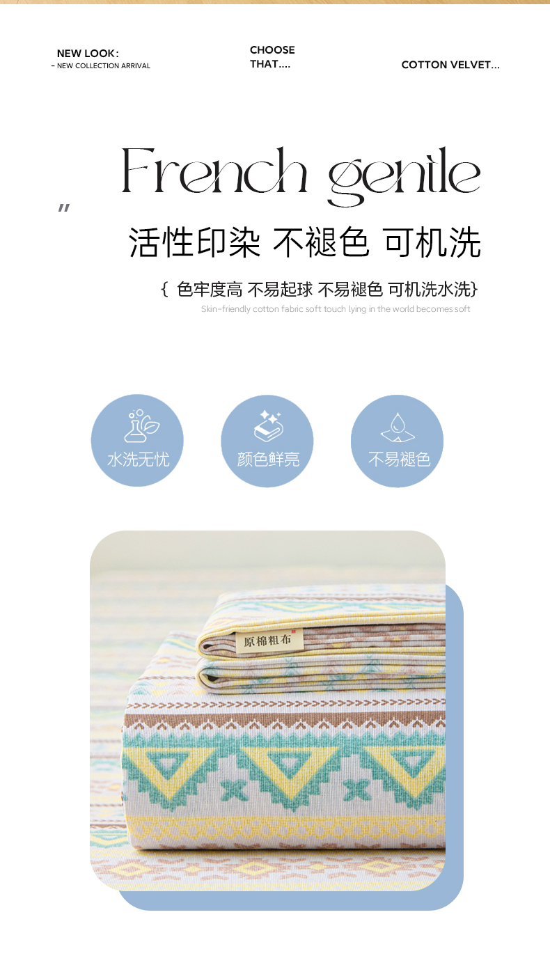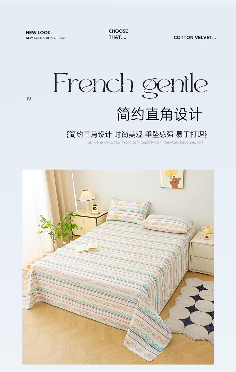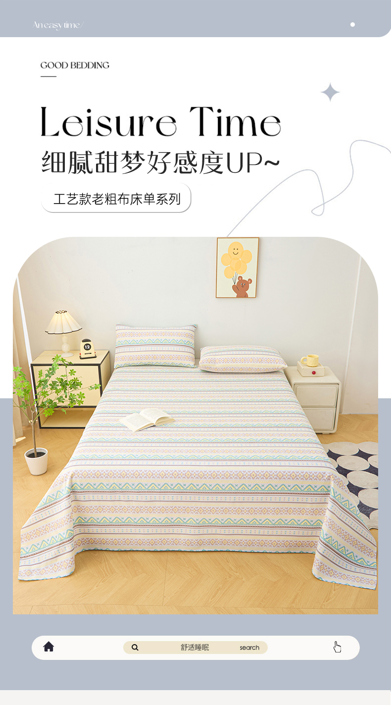 • 91家纺网 家纺一手货源 找家纺 首爱家纺 2026新款爆款印花原棉老粗布床单 条雅恋