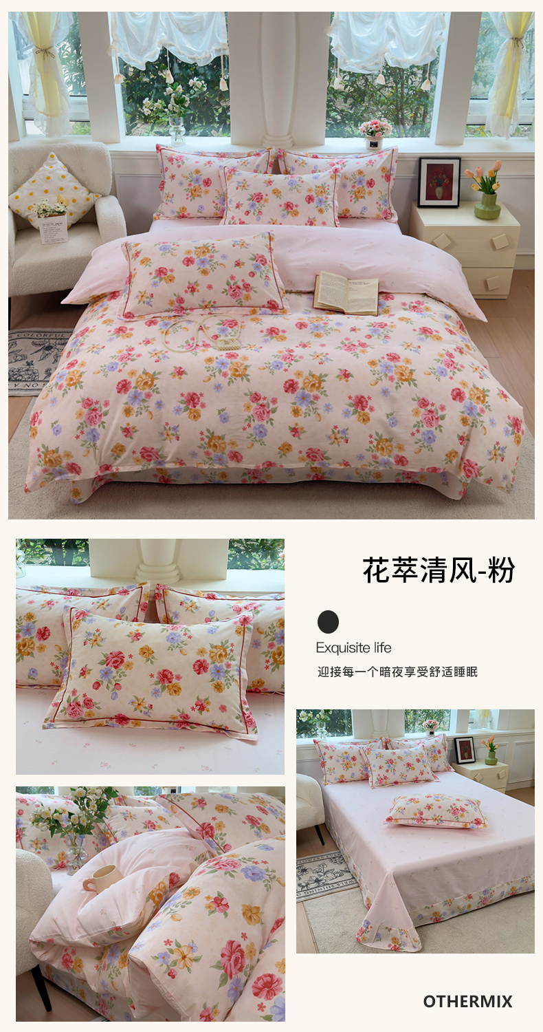 当前位置: 91家纺网 > 商品网购 > 床品套件 > 四件套 > 全棉普通四件套 > 铭博家纺 2026新款100%全棉纯棉四件套第一批 花萃清风-粉