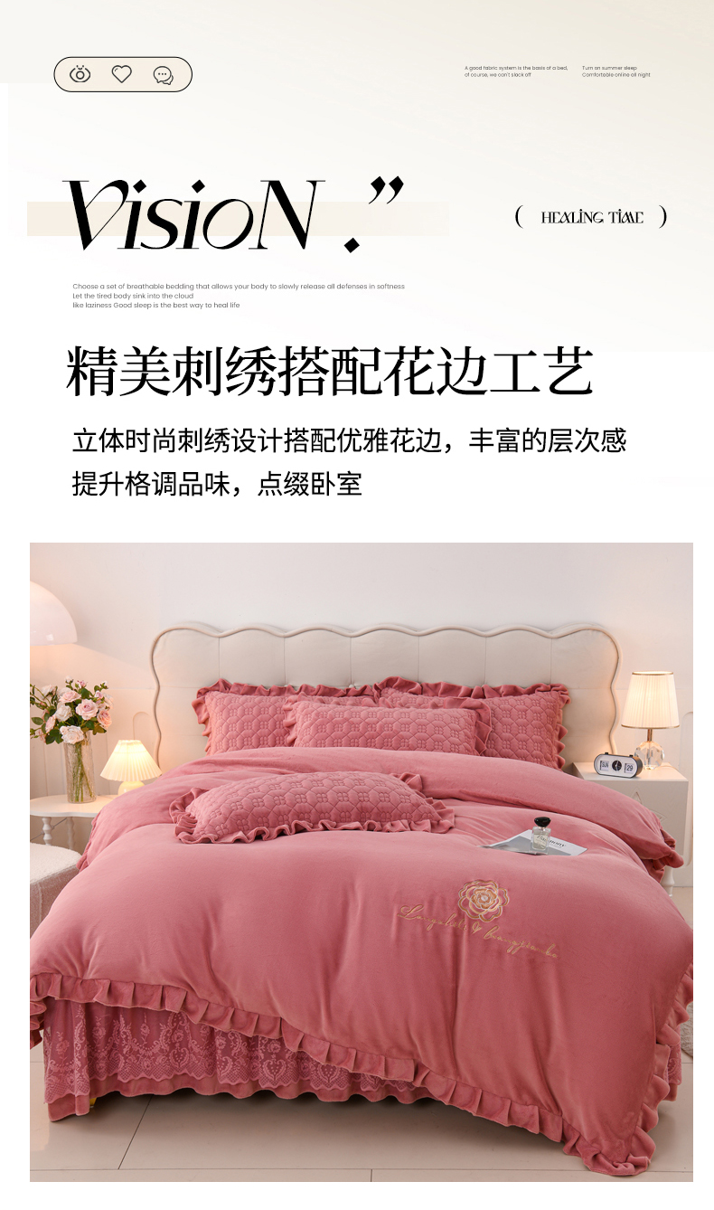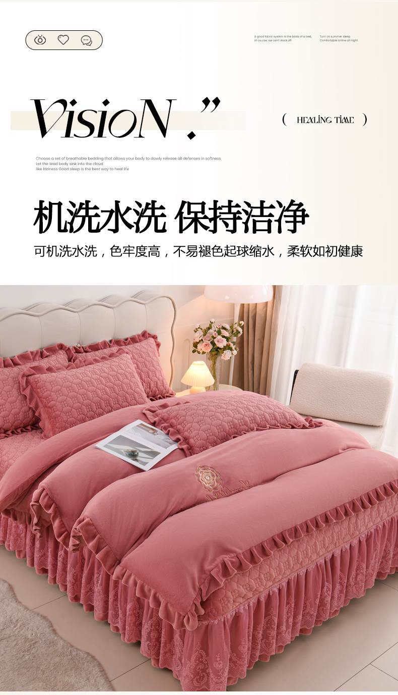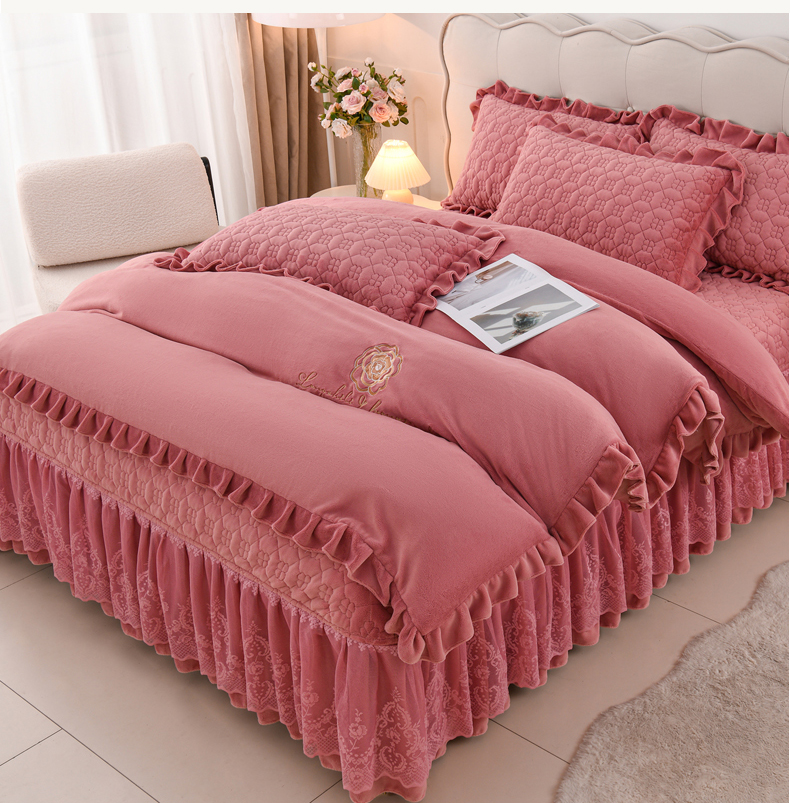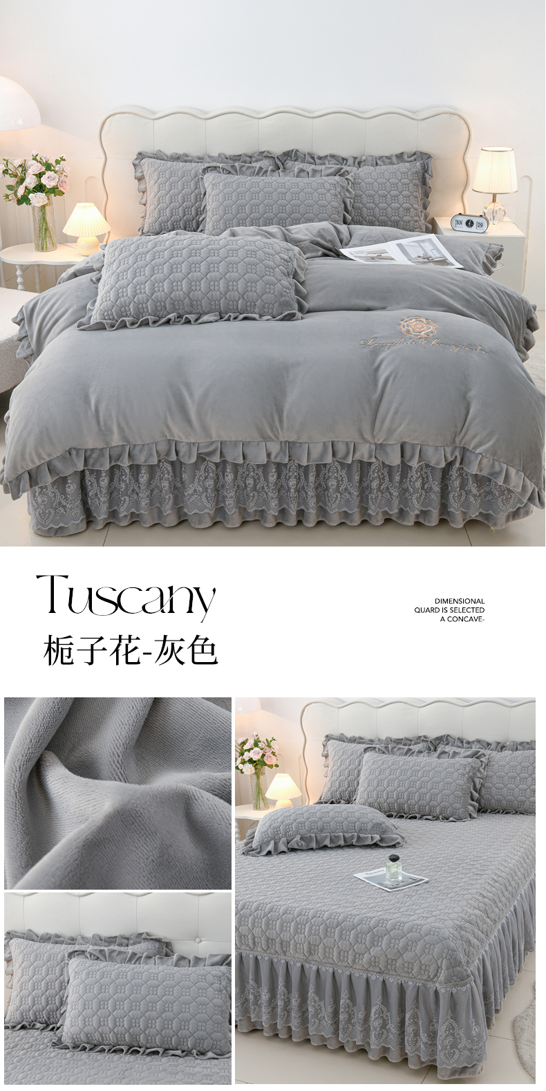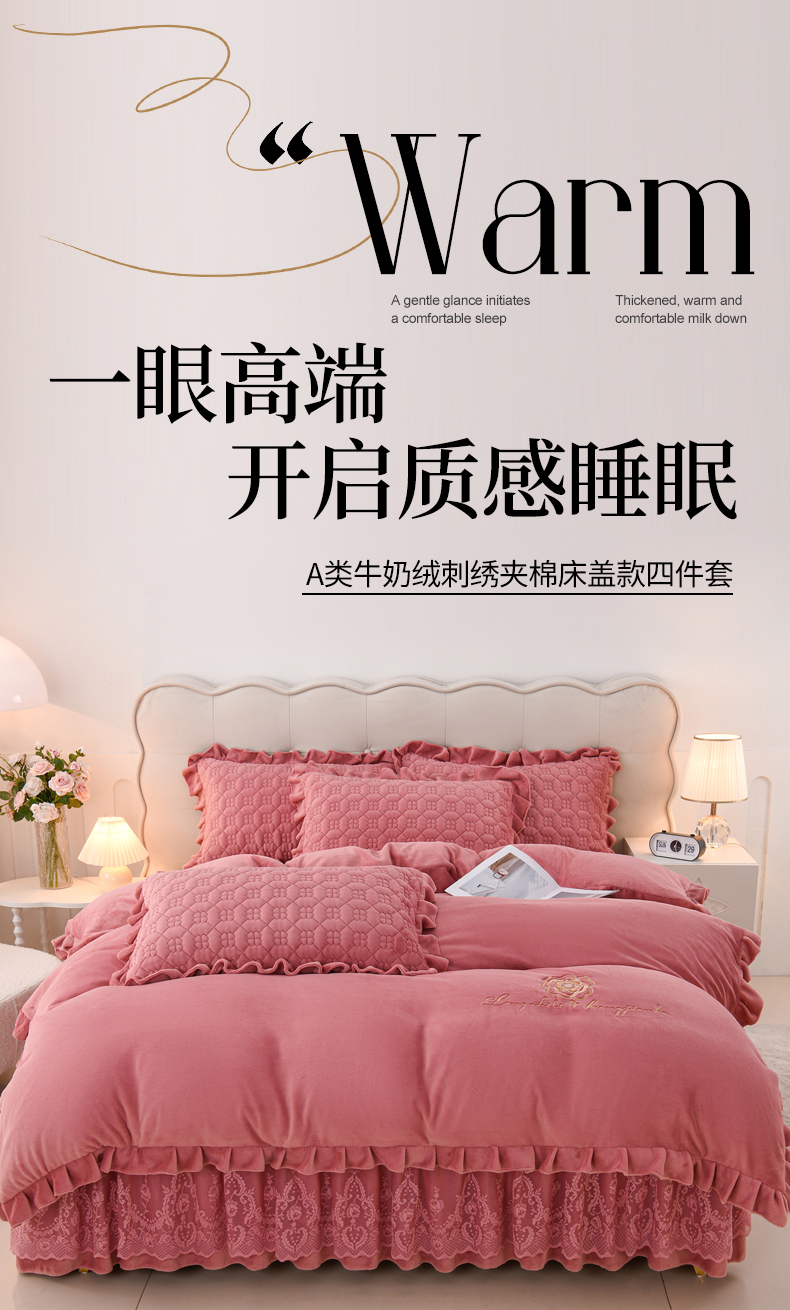 当前位置: 91家纺网 > 商品网购 > 床品套件 > 四件套 > 牛奶绒四件套 > 优家居工厂店 2026新款240克高克重牛奶绒韩版刺绣花牛奶绒夹棉床盖四件套 栀子花-豆沙