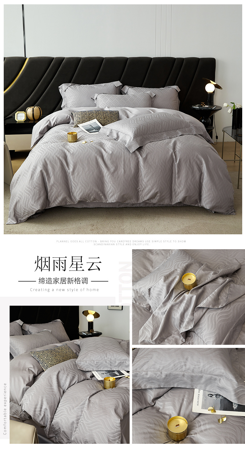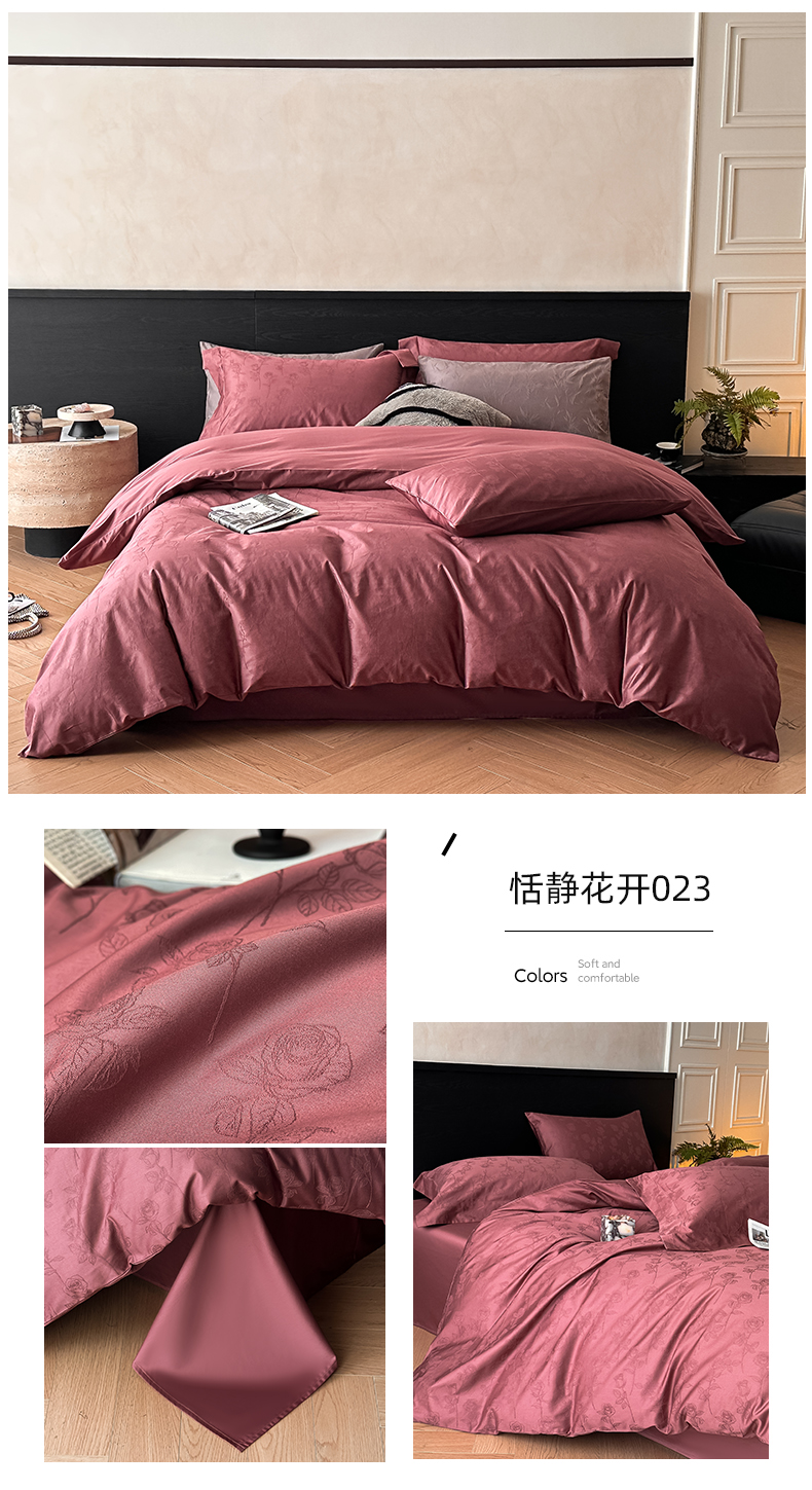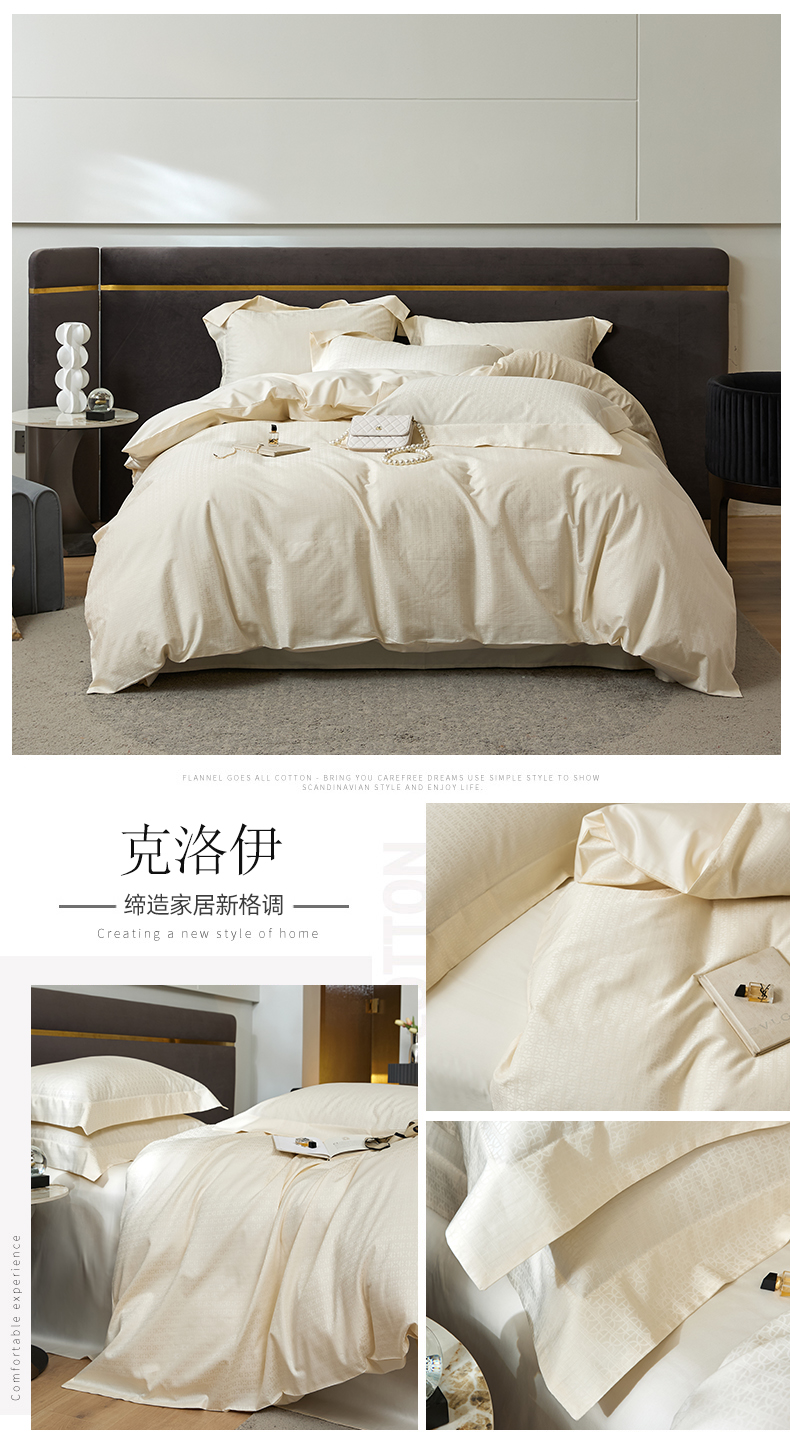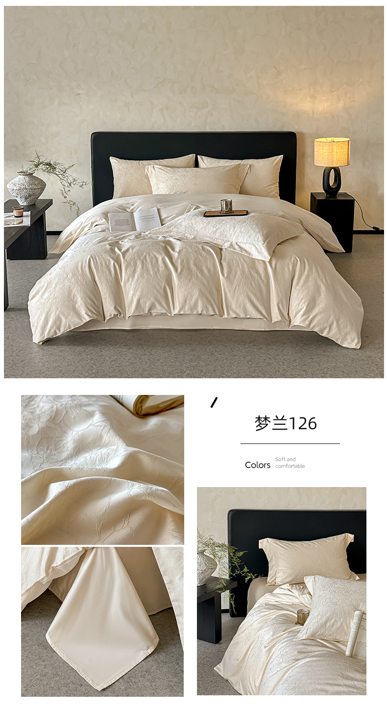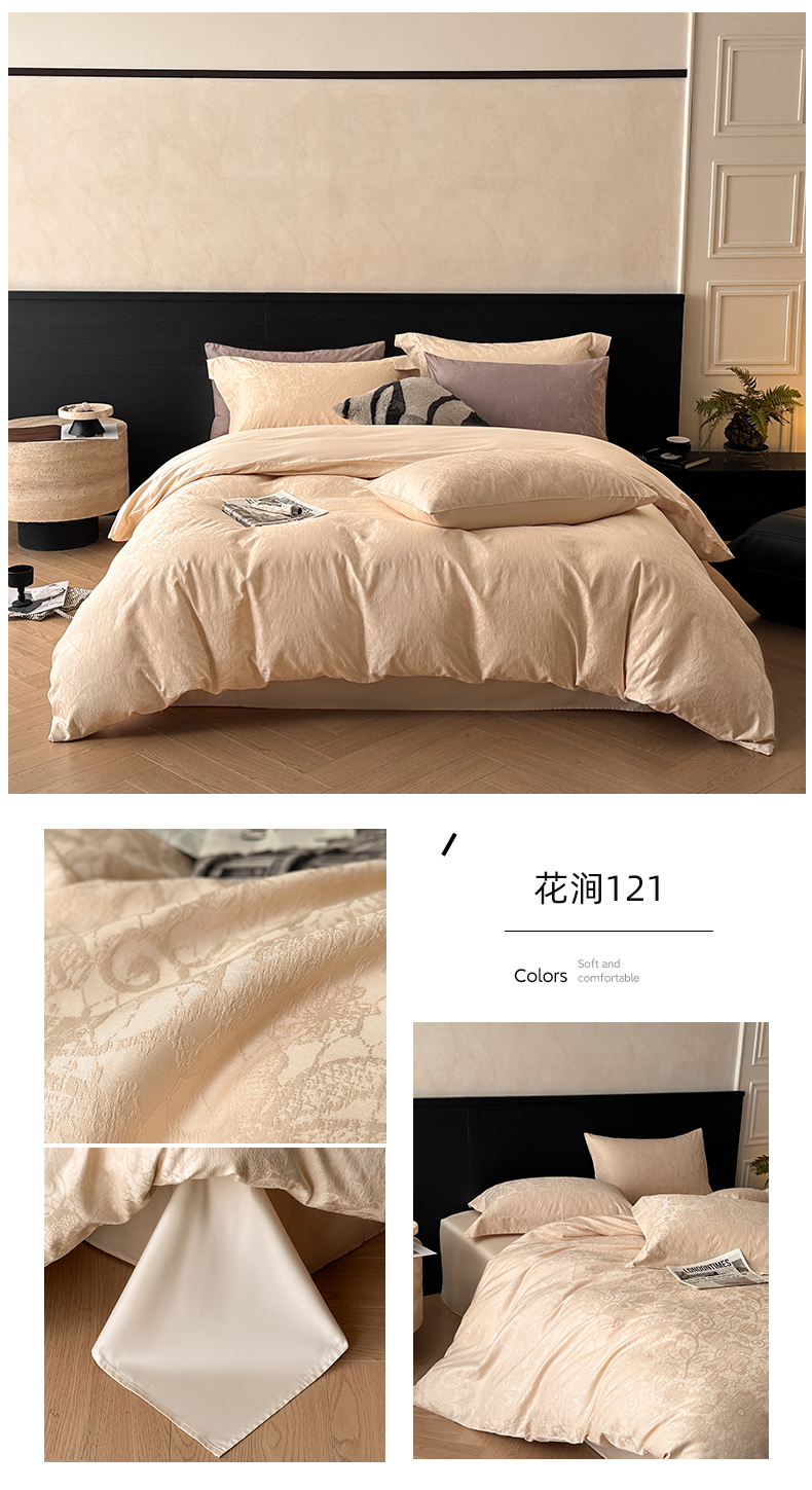 商品名称:涵美人家纺 2025新款长绒棉真50双股高支全棉提花四件套纯棉 恬静花开023