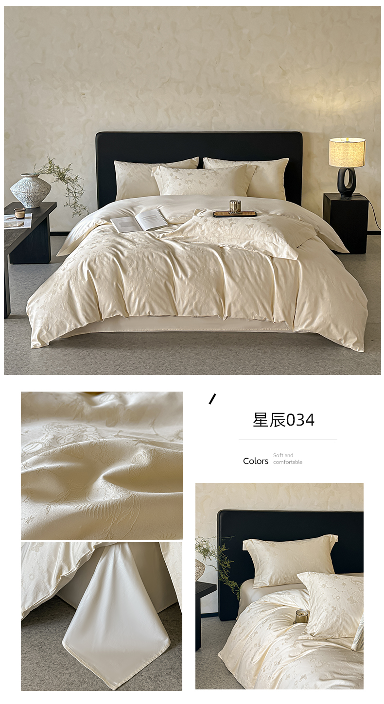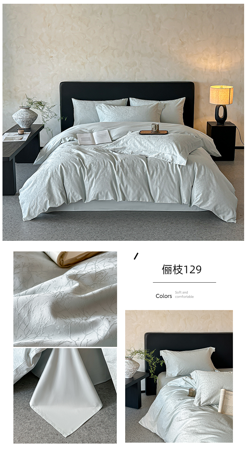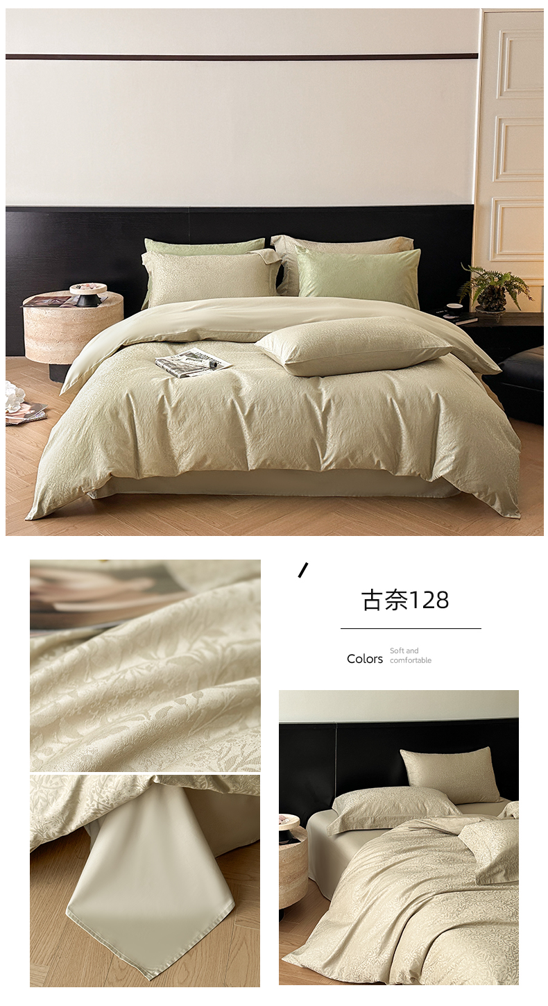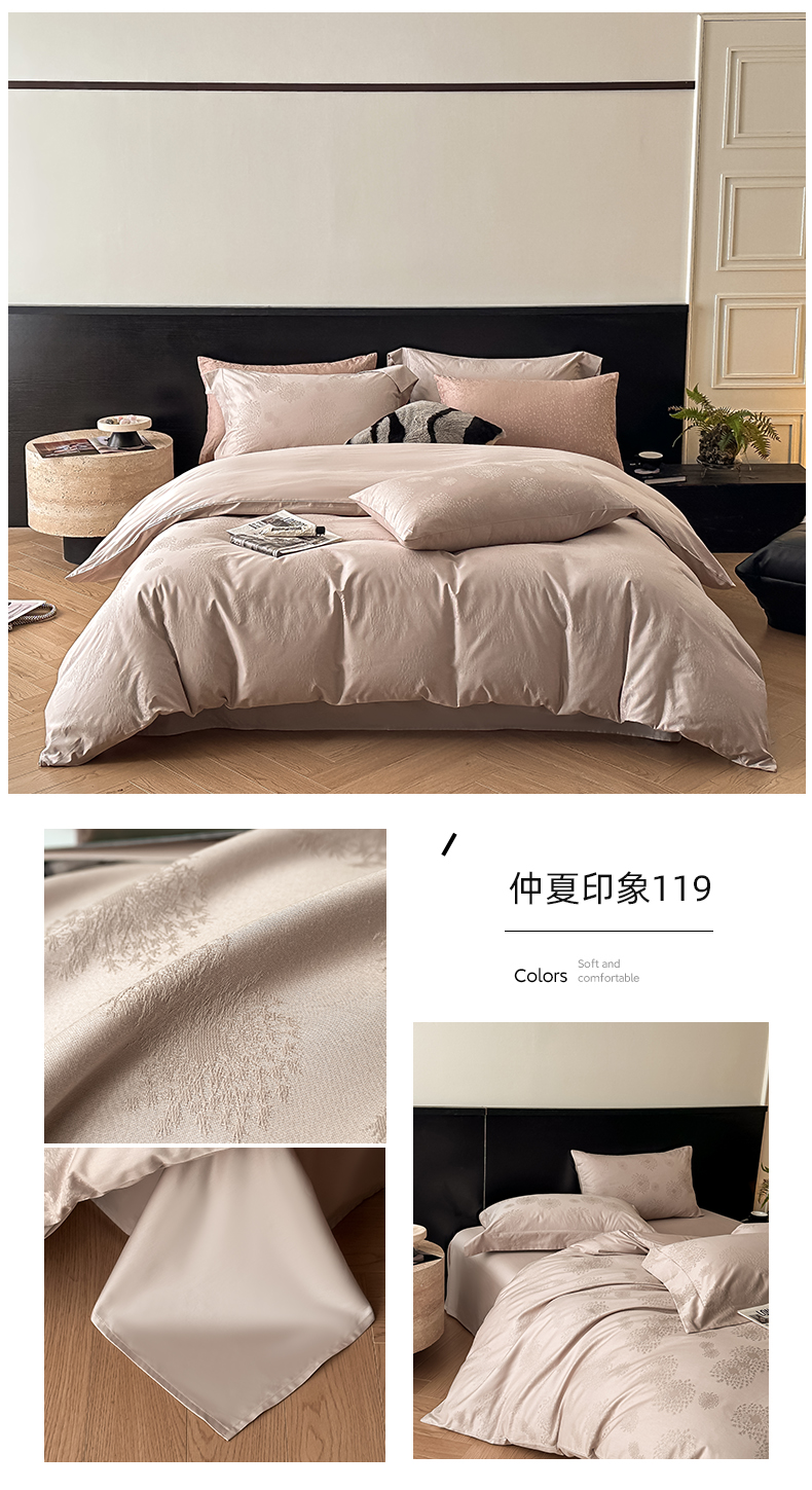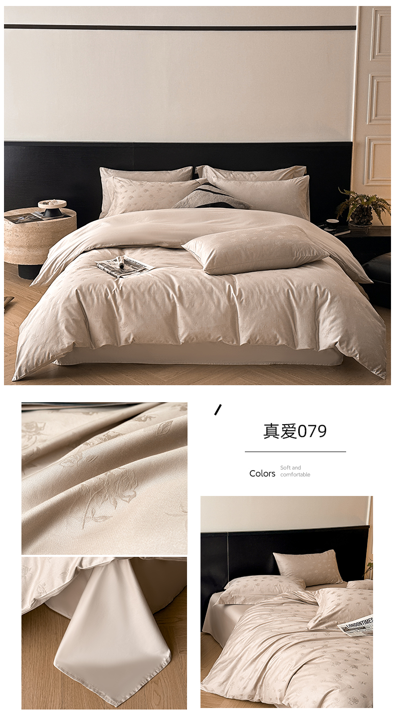 商品名称:涵美人家纺 2025新款长绒棉真50双股高支全棉提花四件套纯棉 恬静花开023