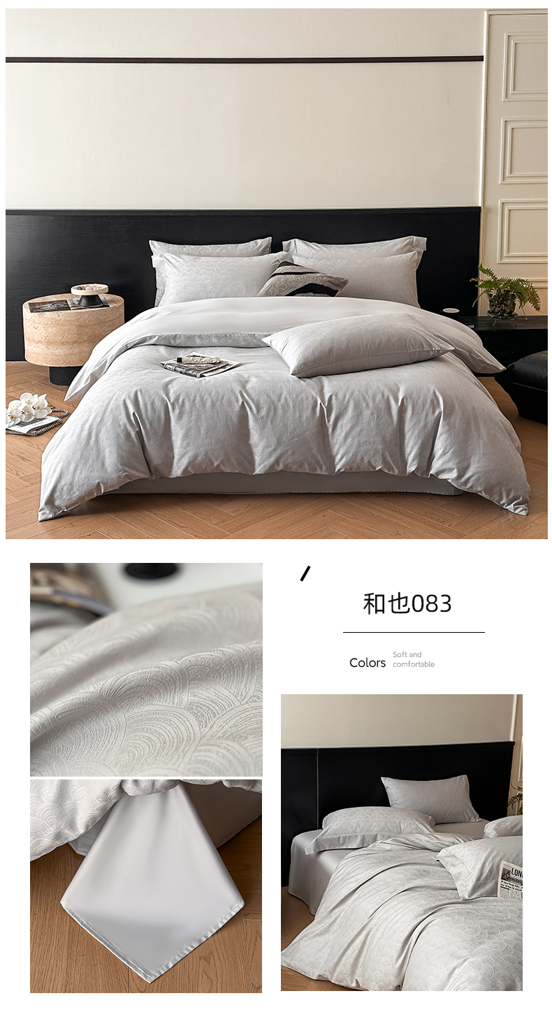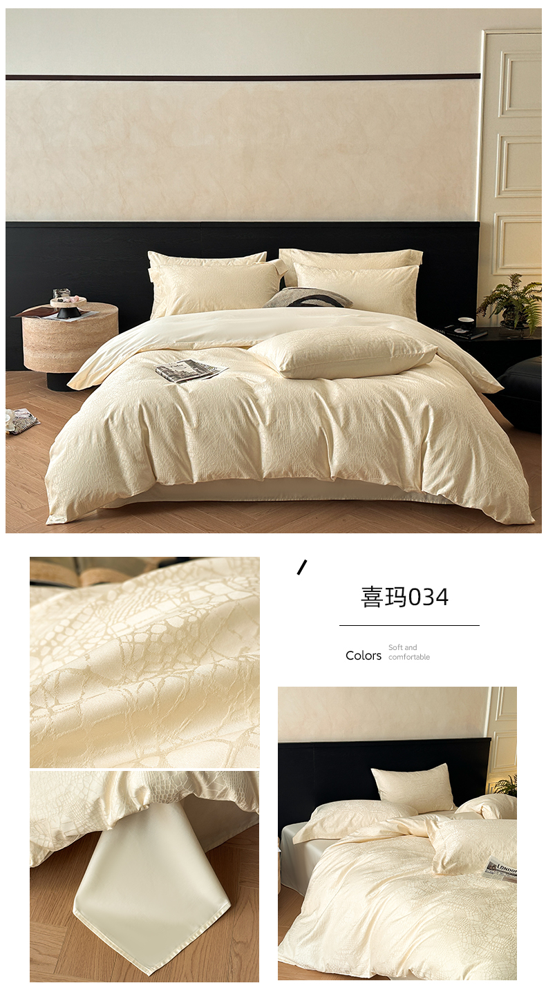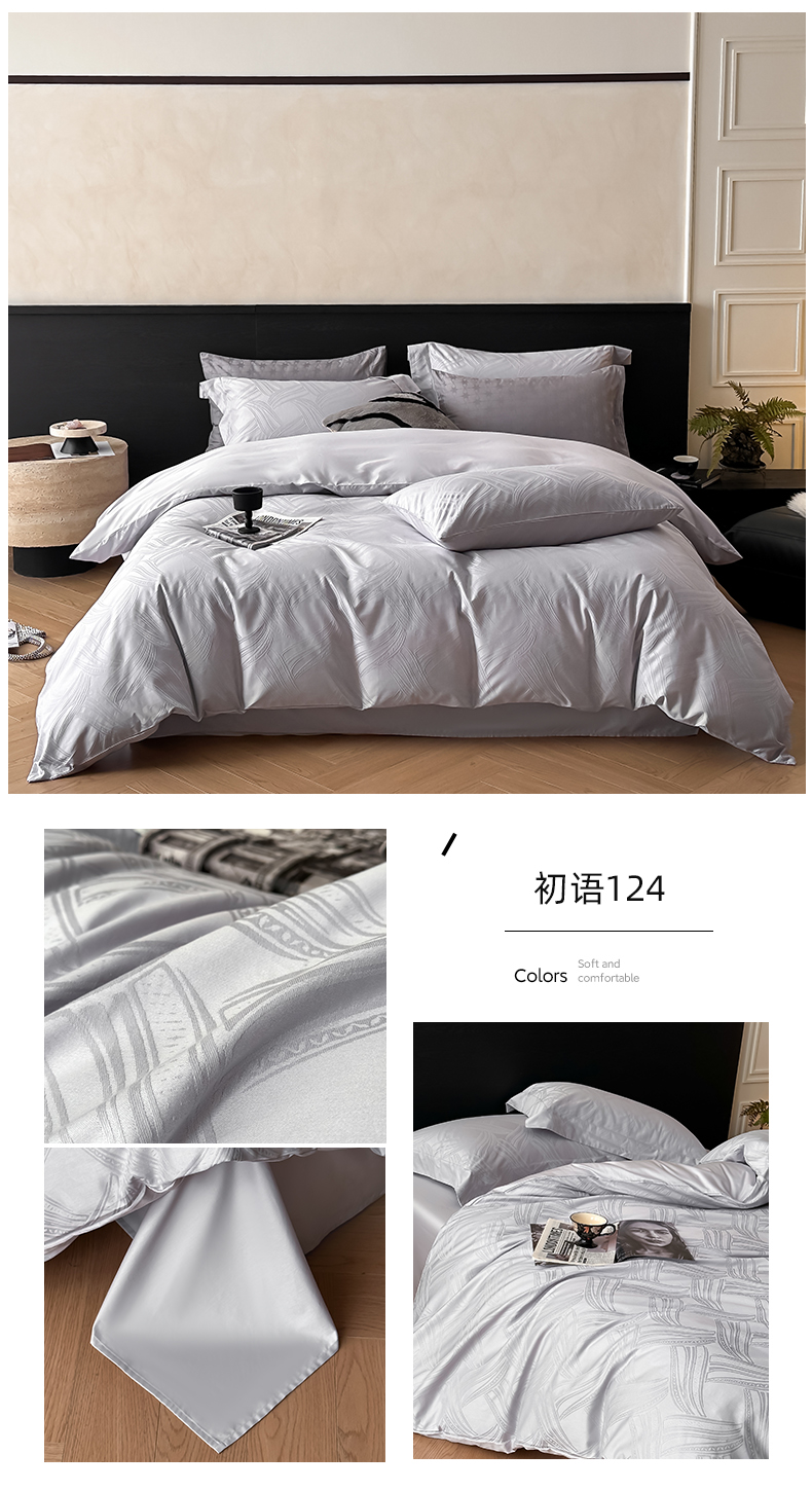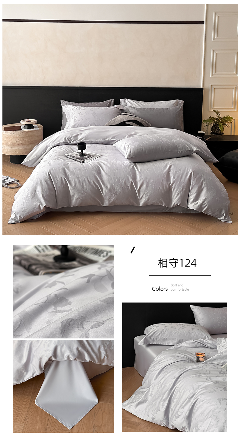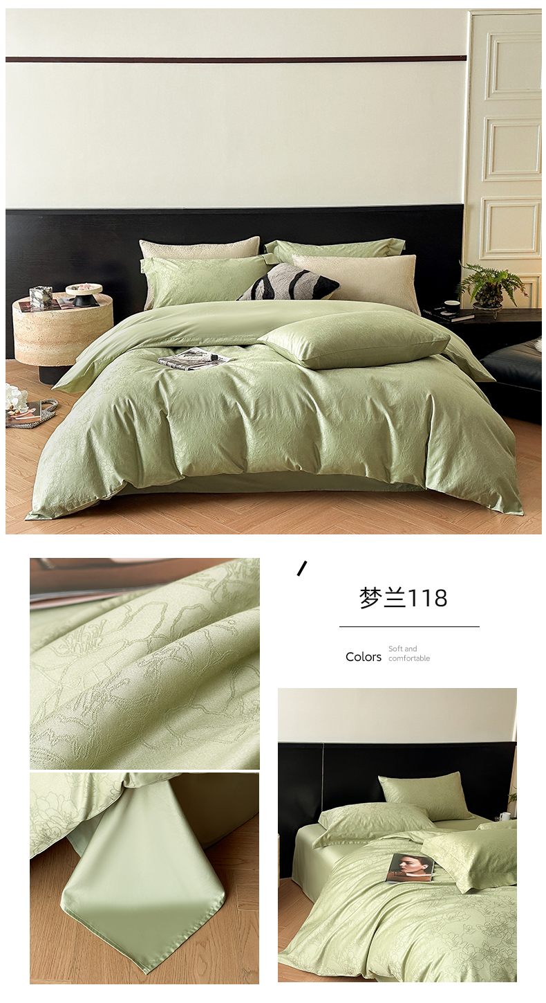 商品名称:涵美人家纺 2025新款长绒棉真50双股高支全棉提花四件套纯棉 恬静花开023
