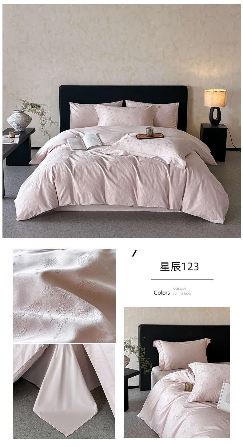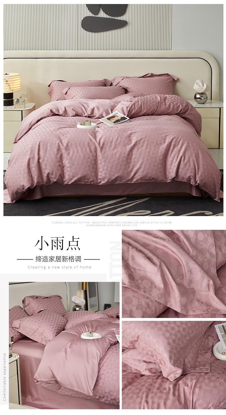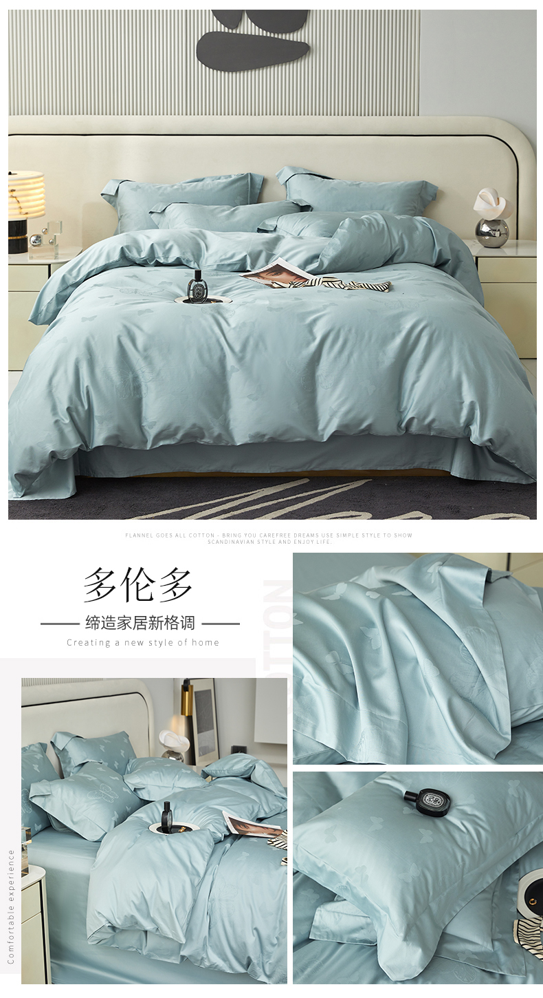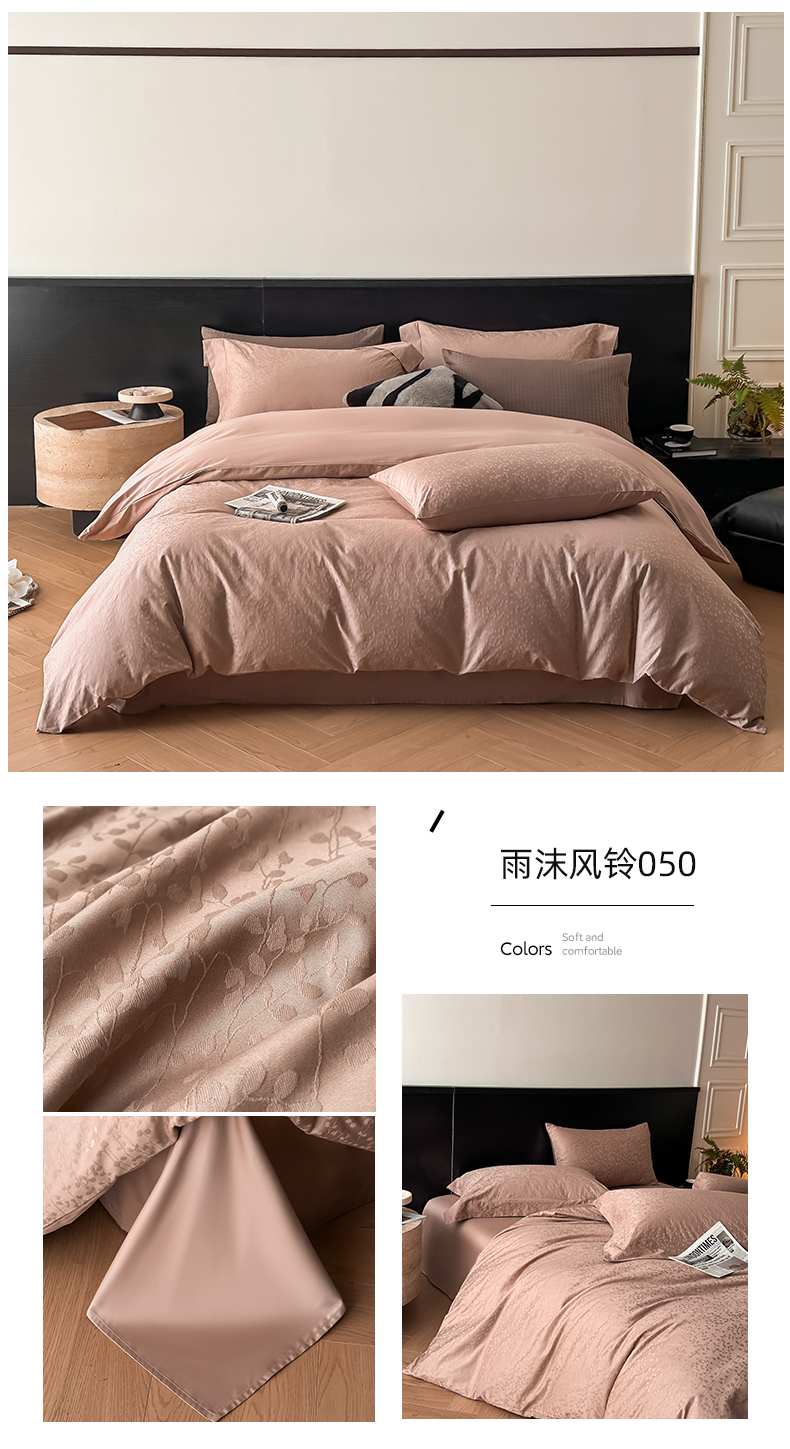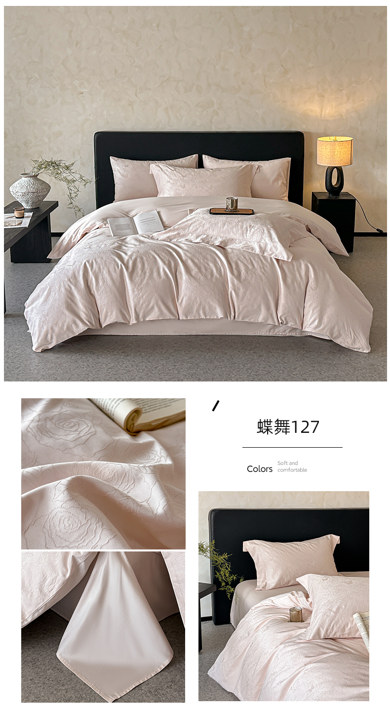 涵美人家纺 2025新款长绒棉真50双股高支全棉提花四件套纯棉 恬静花开023