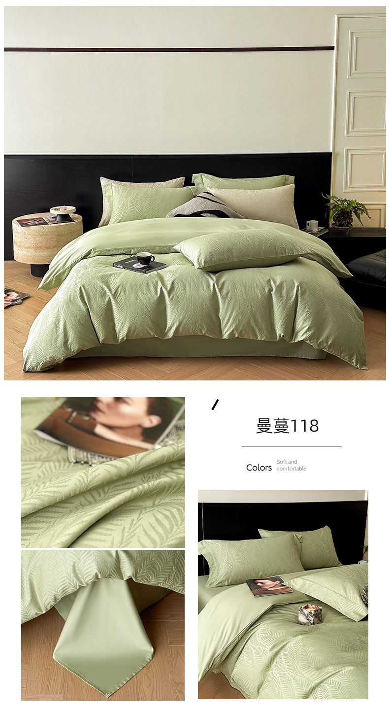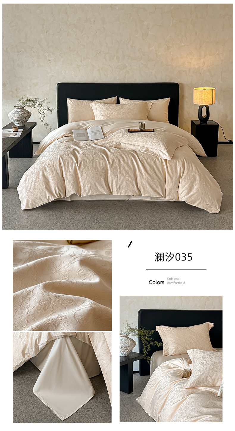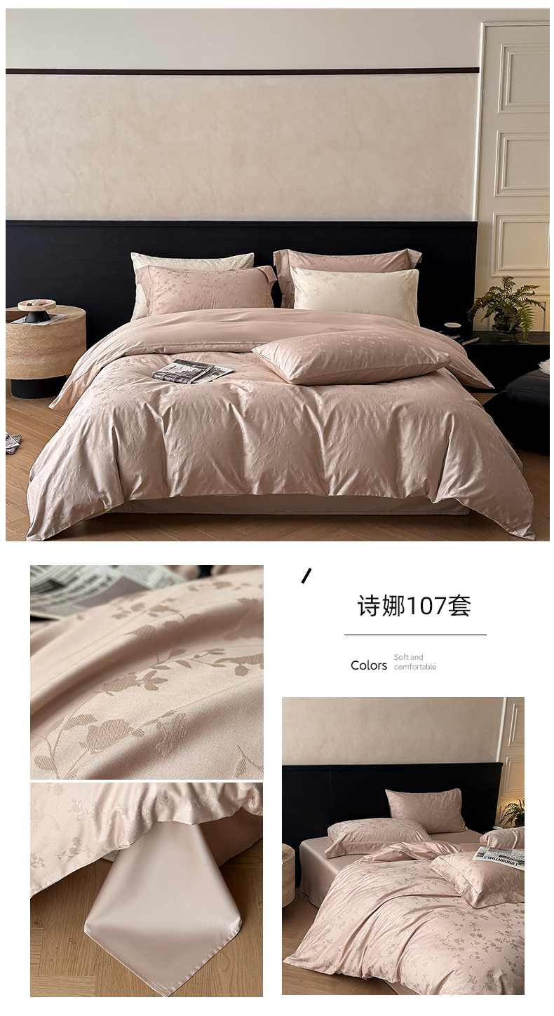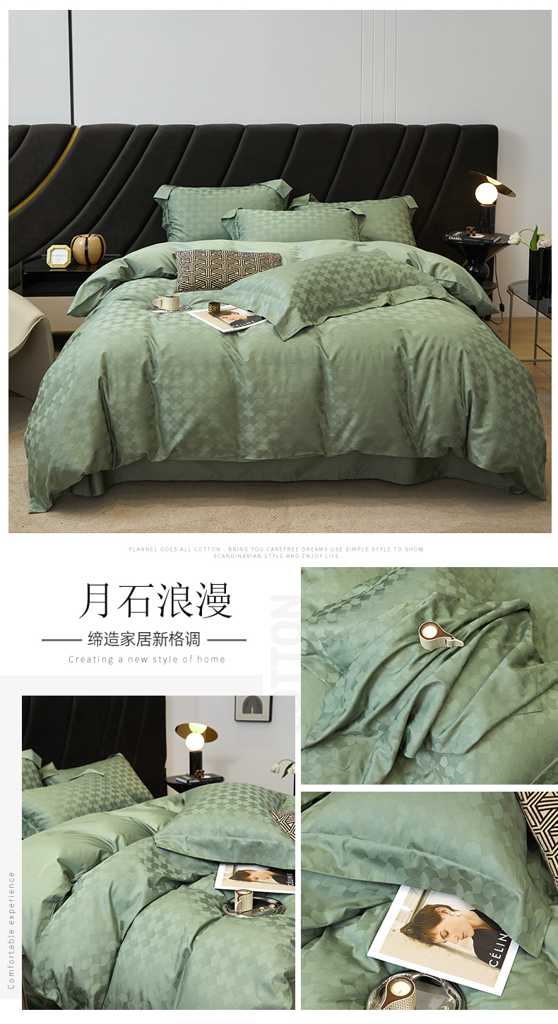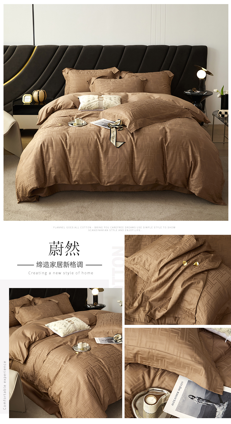 涵美人家纺 2025新款长绒棉真50双股高支全棉提花四件套纯棉 恬静花开023