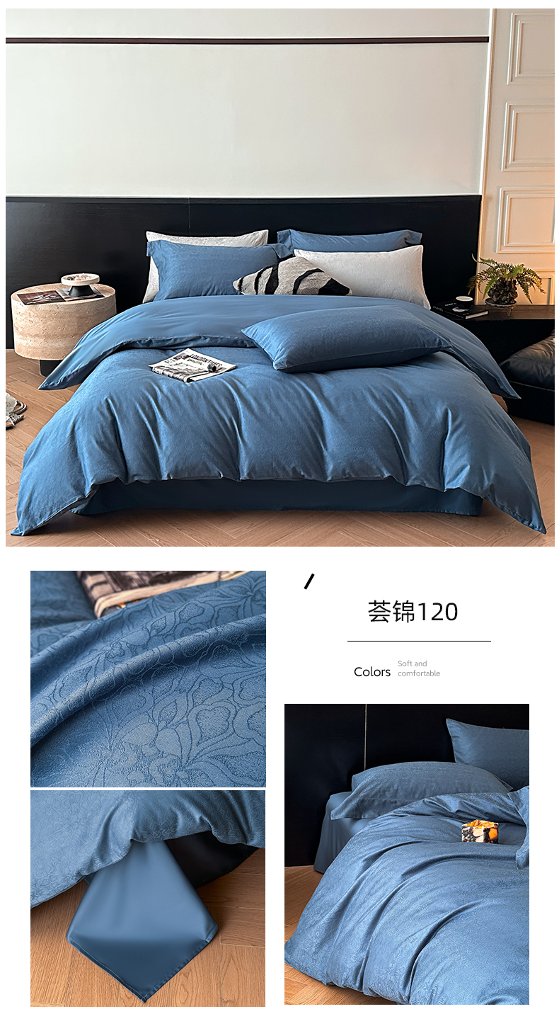 (总)涵美人家纺 2025新款纯棉全棉长绒棉刺绣绣花四件套-枫雅系列,皇家蓝,梵星蓝,梵星蓝+灰,富士白+金驼,富士白+蓝,梦幻紫