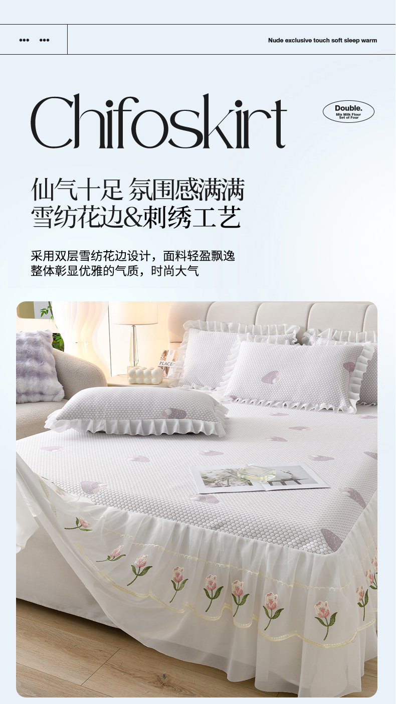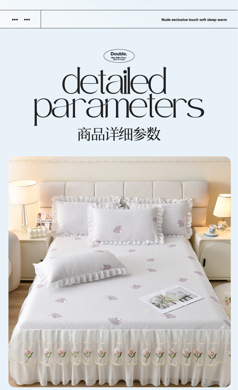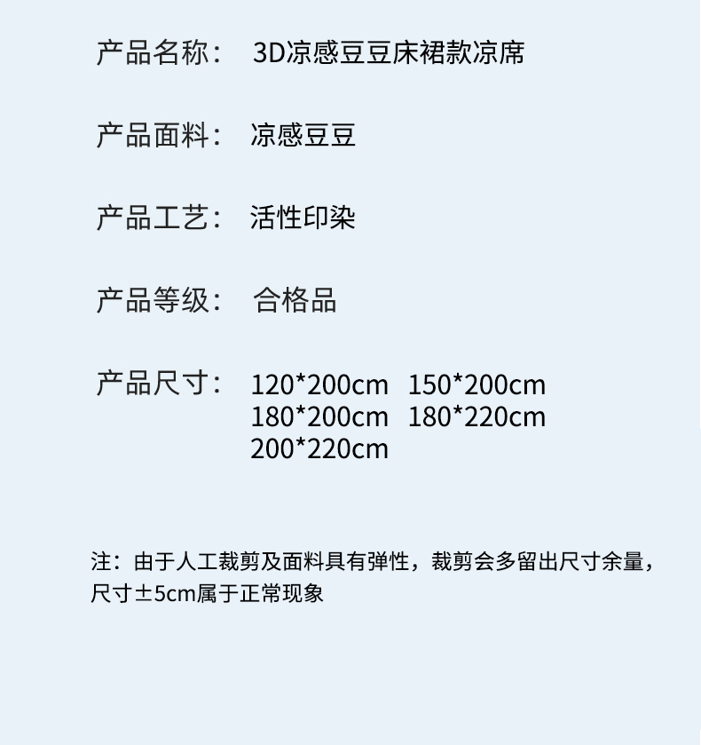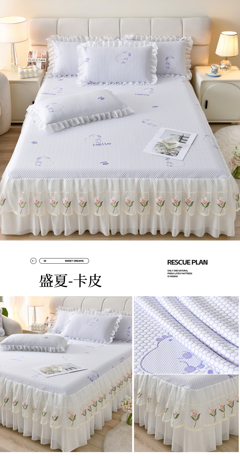 商品名称:(总)优家居工厂店 A类2026夏季冰丝席裙款豆豆凉席三件套刺绣花边蕾丝花边床裙可机洗水洗