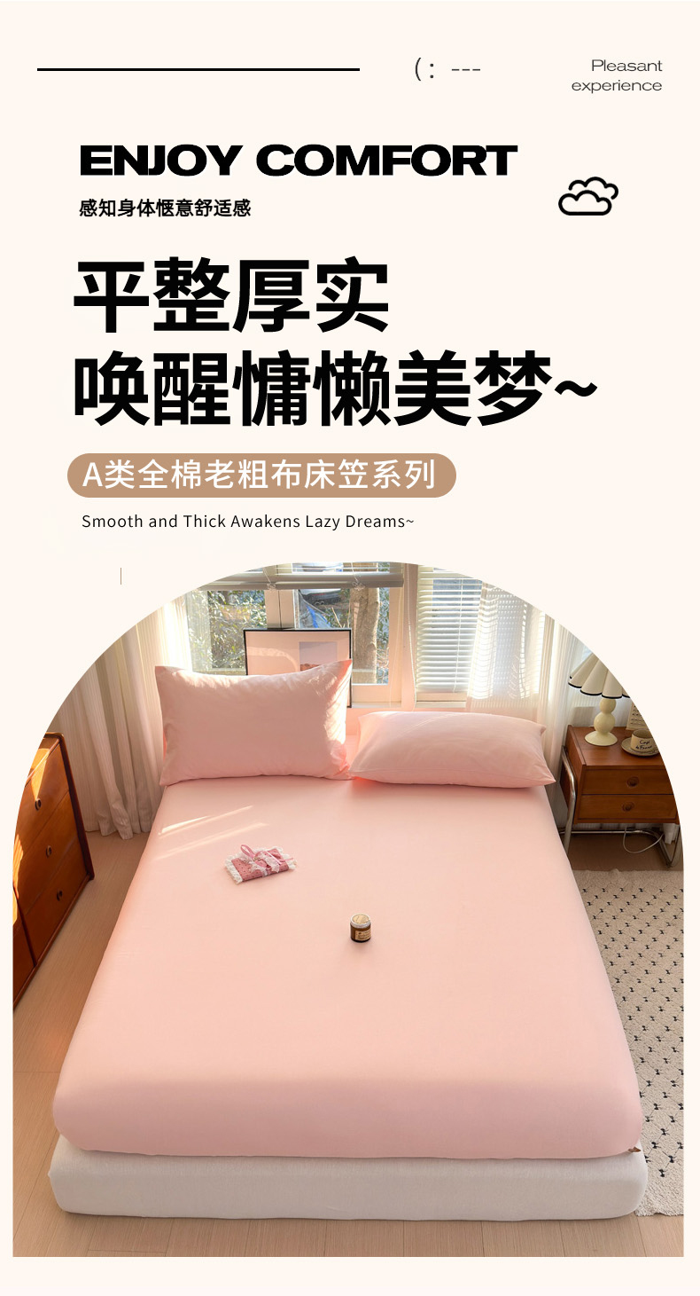 女子家纺 2026新款全棉老粗布床笠 樱桃粉