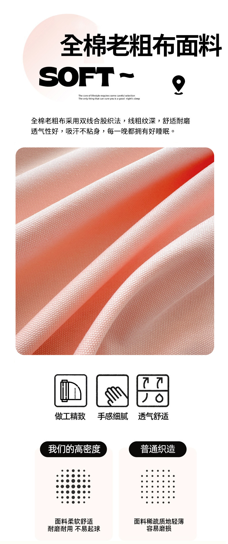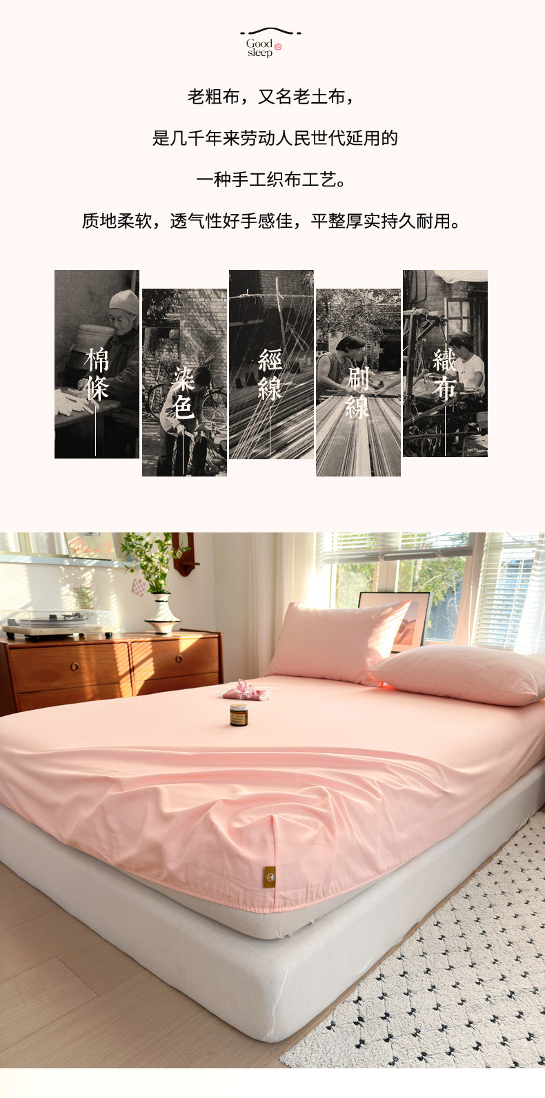 商品名称:女子家纺 2026新款全棉老粗布床笠 樱桃粉