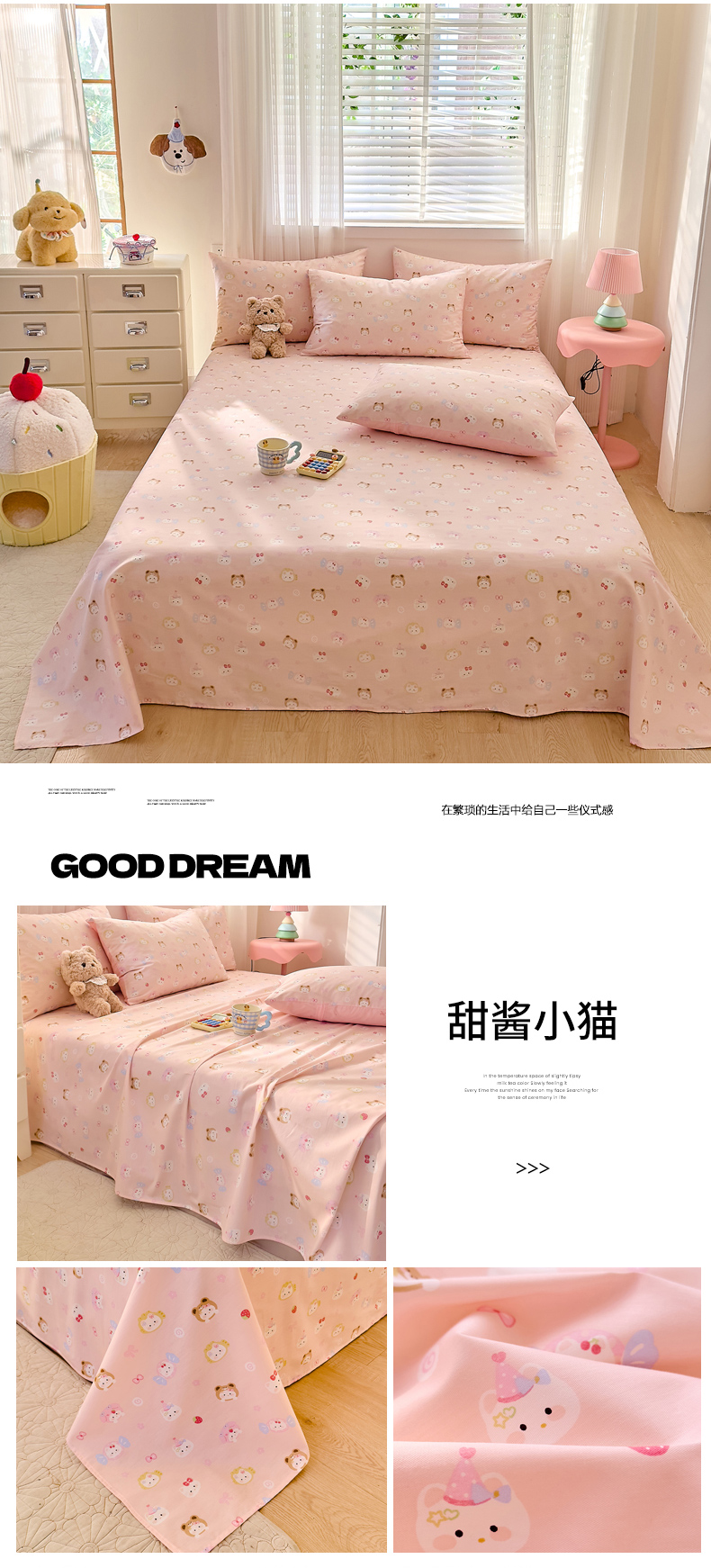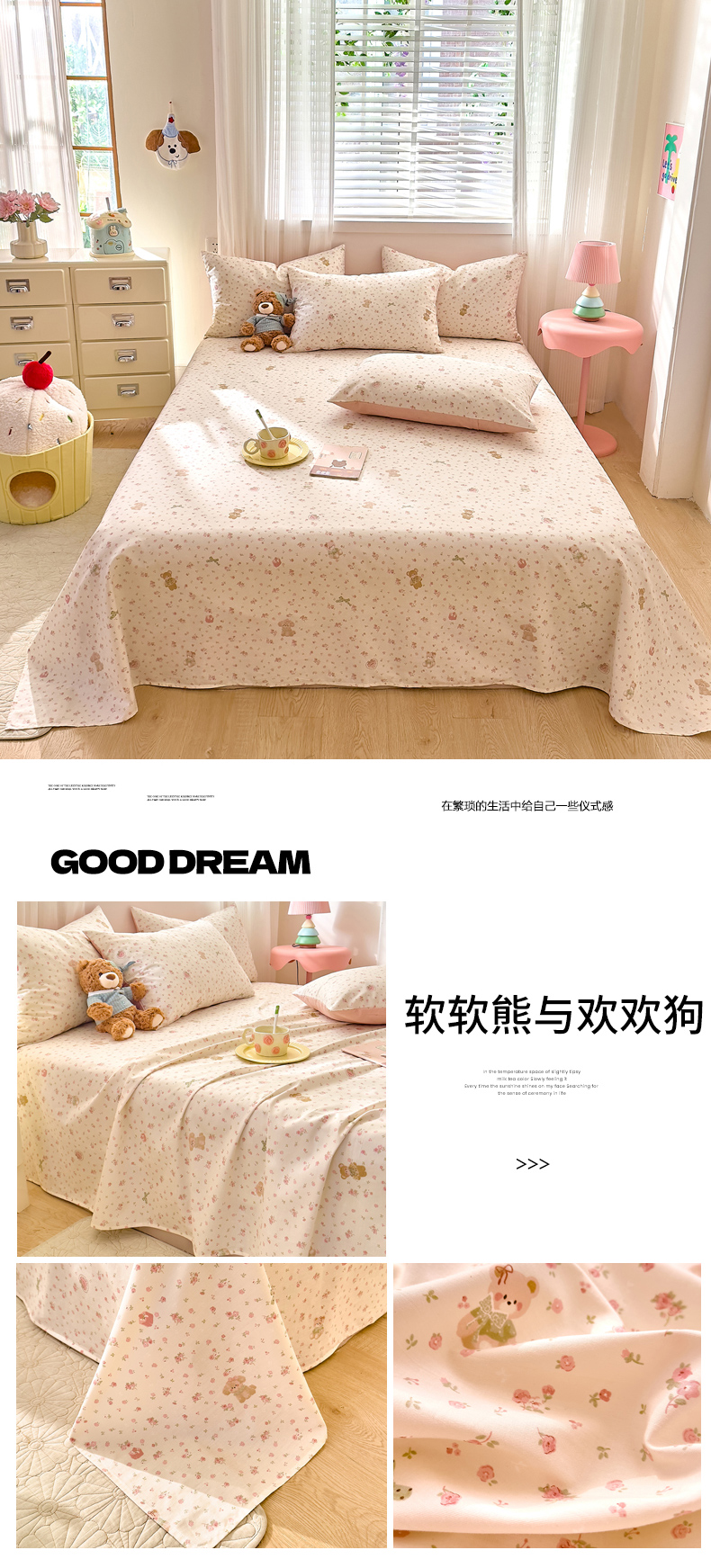• 91家纺网 家纺一手货源 找家纺 DoDo 兜兜 2026年全棉纯棉可爱卡通单床单 床单单件 圆滚滚的梦