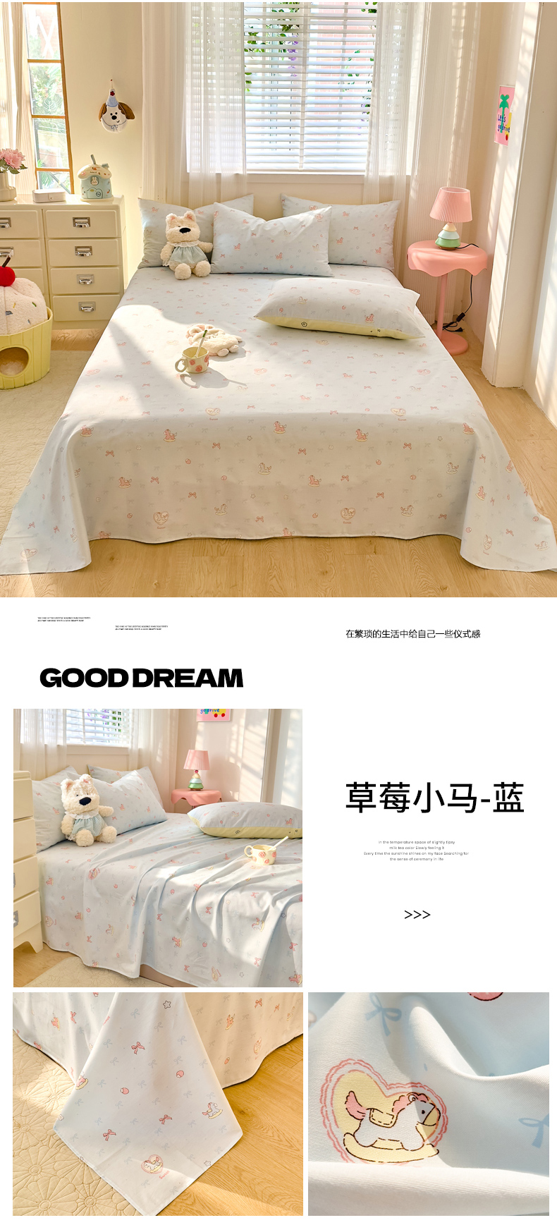 (总)DoDo 兜兜 2026年全棉纯棉可爱卡通单床单 床单单件,可爱星人-白,可爱星人-黄,棒棒糖女孩,薄荷小兔,彩虹小马驹,草莓小马-粉,草莓小马-蓝,点点小狗,动物方舟,费尔岛小熊,机灵猫,蓝色小象,麦克狮,棉花糖兔兔,软软熊与欢欢狗,森林熊崽崽,甜酱小猫,跳跳象,小福瓜,小马哒哒,星星兔的梦境,熊抱阳光,熊猫卡皮,旋转木马之恋,圆滚滚的梦,云朵小飞马,早安跳跳兔